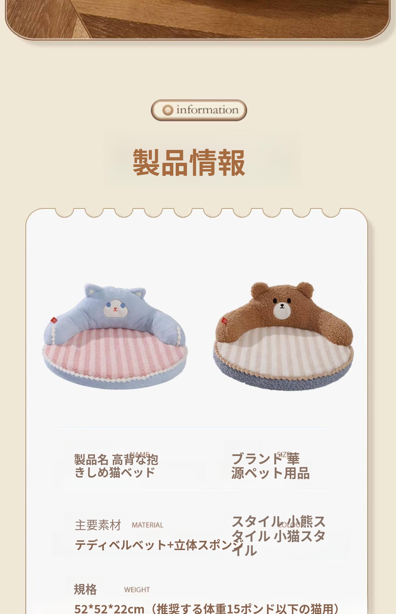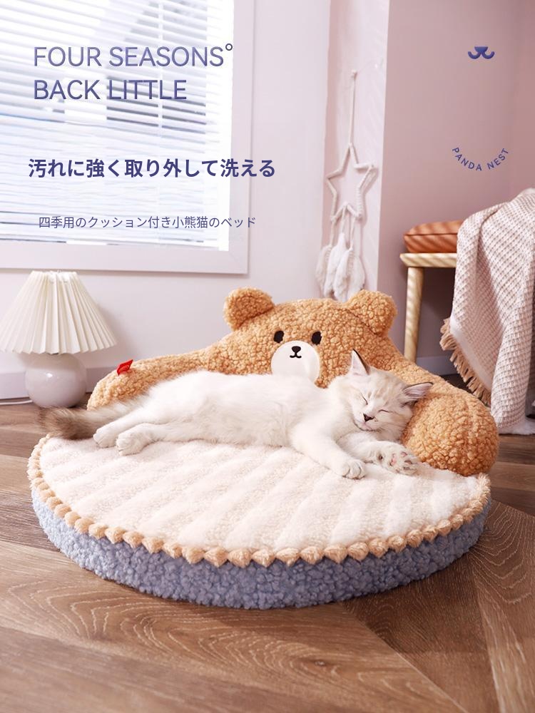 四季対応の猫用ベッド!洗えるペットソファ、快適な寝床で愛猫も大満足!小型犬にも最適なデザイン。おしゃれで便利な猫マット、あなたのペットに最高の癒しを提供します!