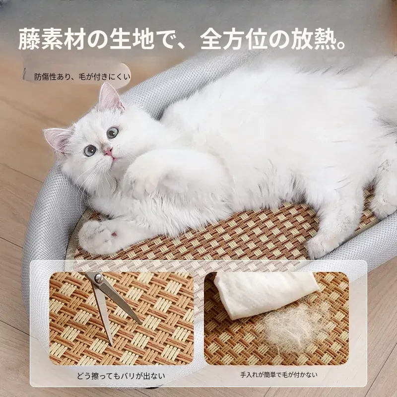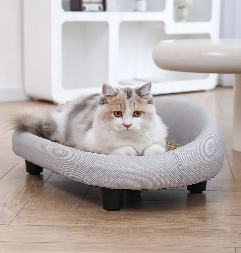 夏用猫ベッド|四季使える!子猫も快適に過ごせるクールソファ型ハンモック|涼感マットで暑い夏も快適!愛猫のための最高のペットベッド!