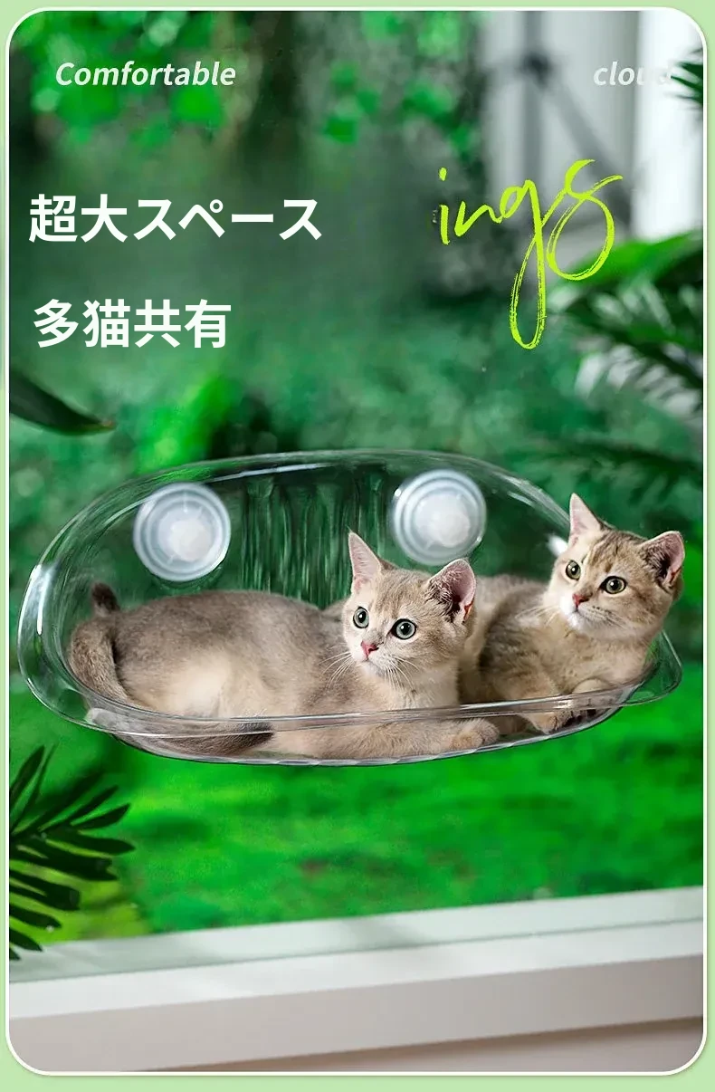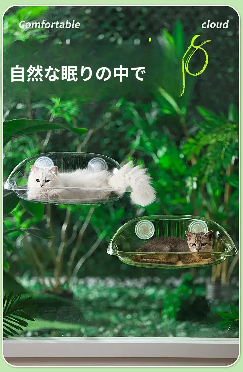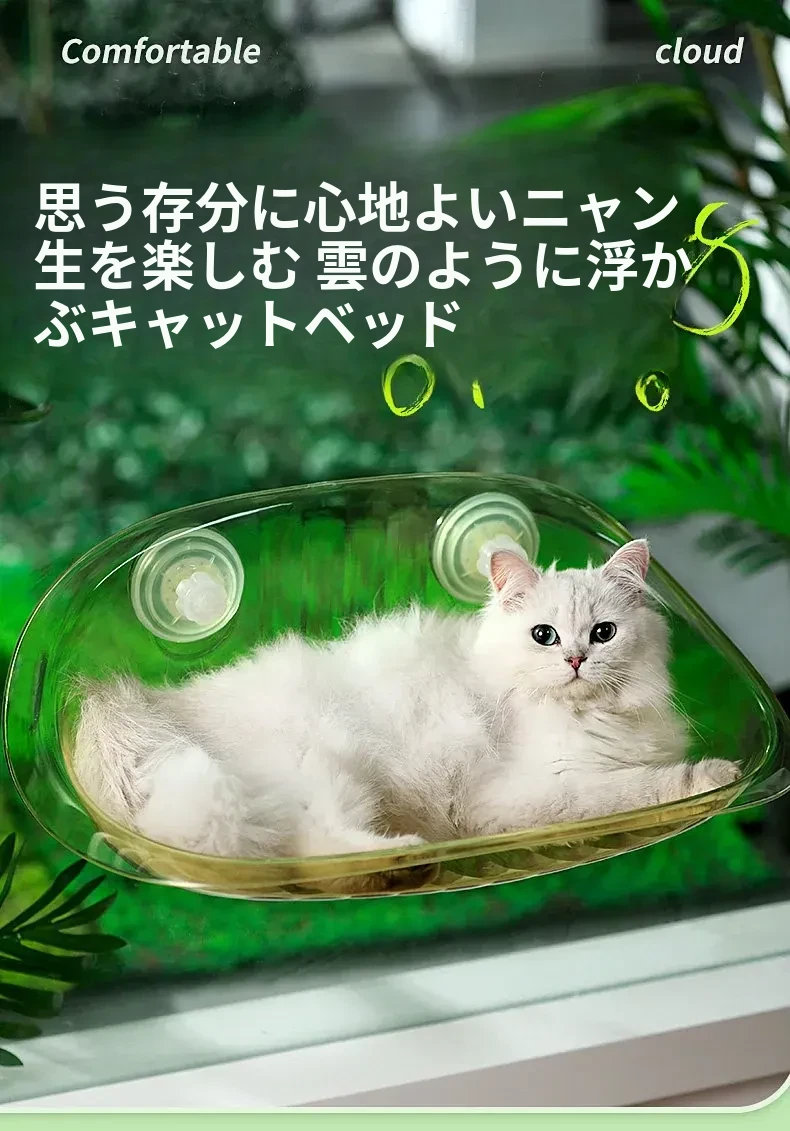 四季使える猫ハンモック - 窓辺にぴったりの吊り下げ式ペットベッド!吸盤付きで安定感抜群、愛猫のお昼寝に最適な快適空間を提供します。おしゃれなデザインでお部屋のインテリアにも◎
