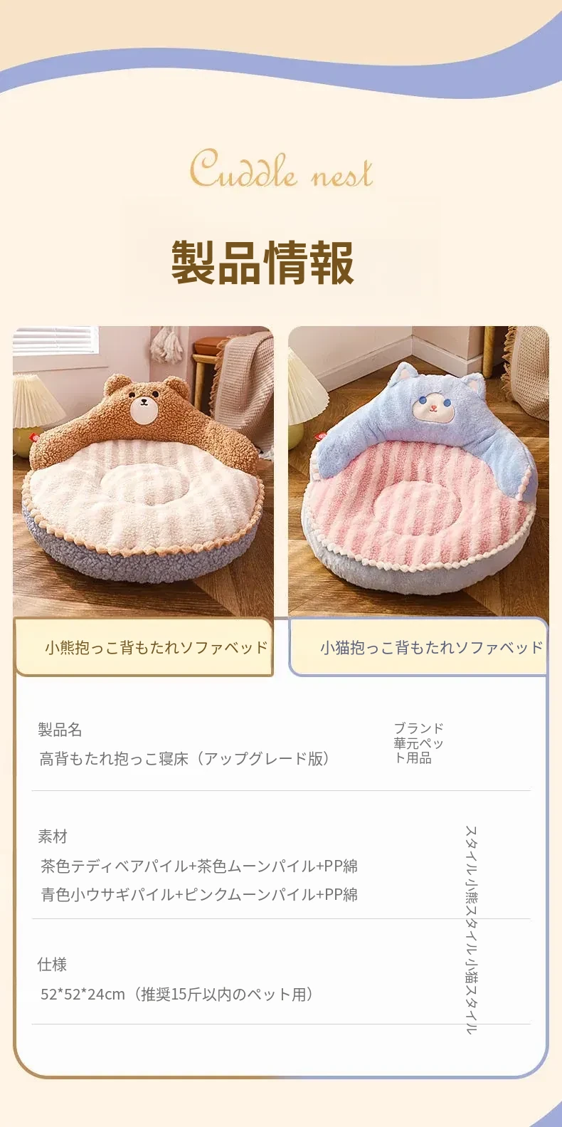 四季対応!小型犬・猫用の温かいペットベッド!ふかふかソファマットで快適さ抜群!冬の寒さから守る、愛するペットのための理想的な寝床!