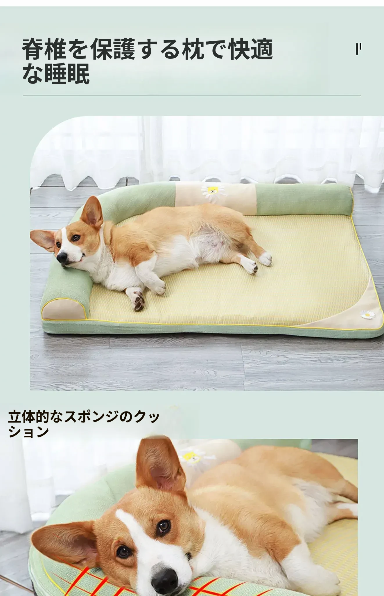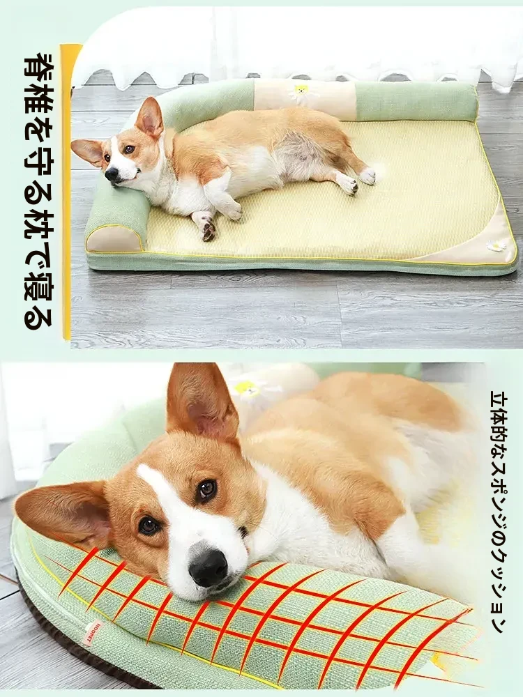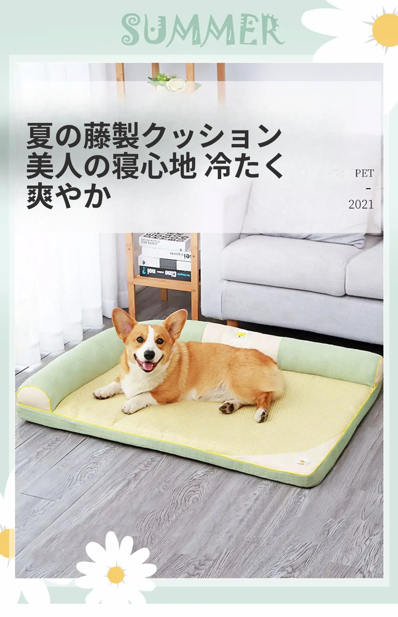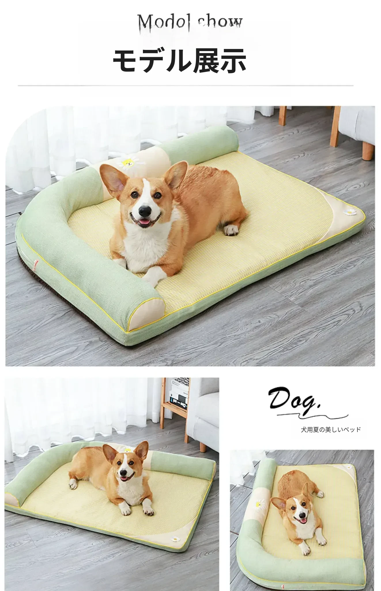 四季使える犬用クッション!夏にぴったりの涼しいマット、コーギーや猫にも最適。洗えるデザインで清潔を保ち、快適な睡眠をサポートするペット用ベッドです。