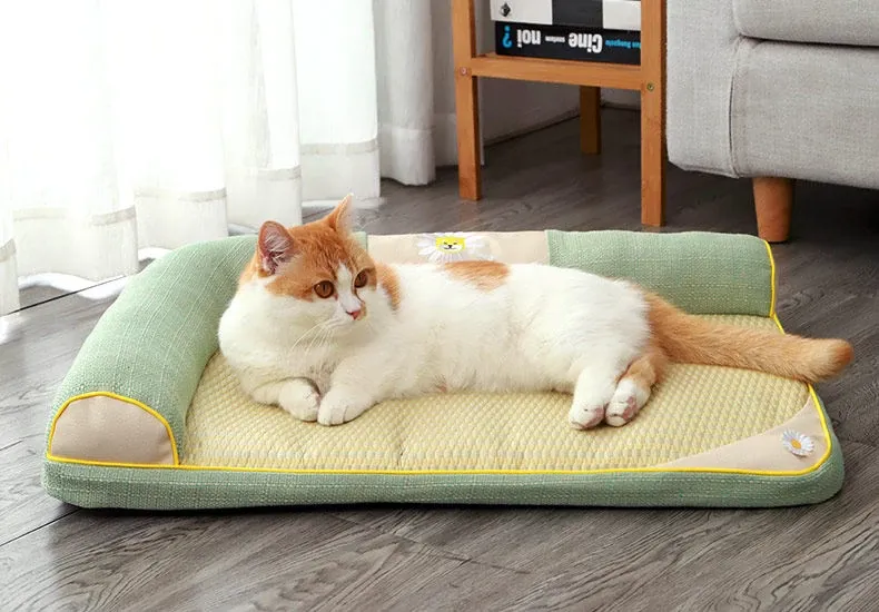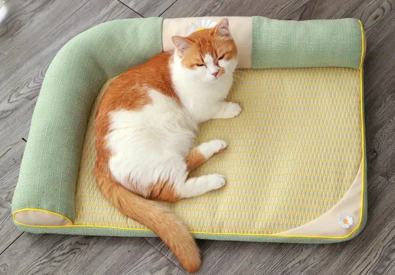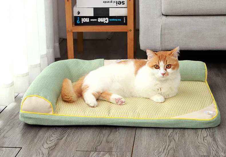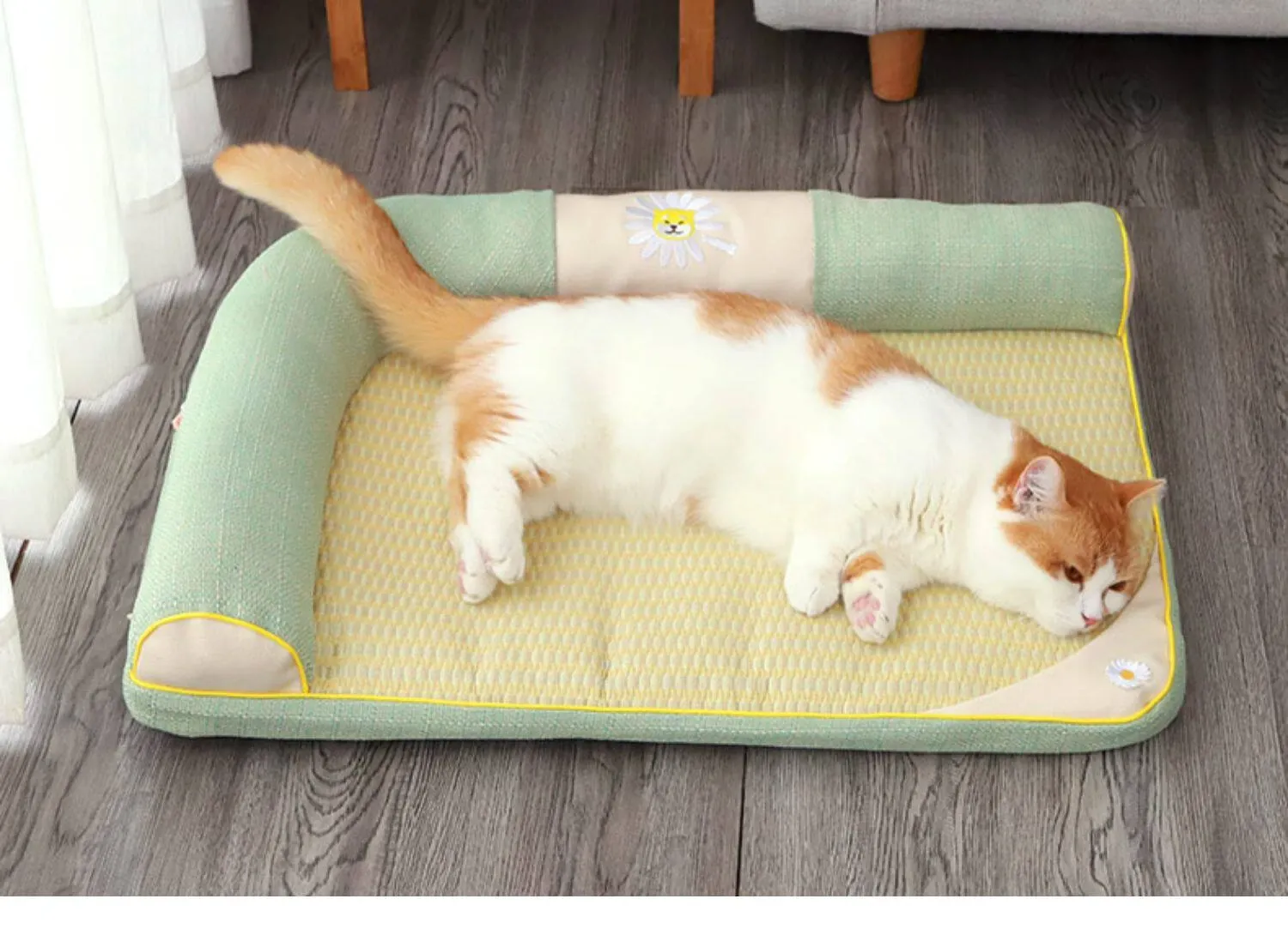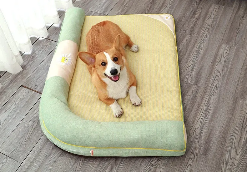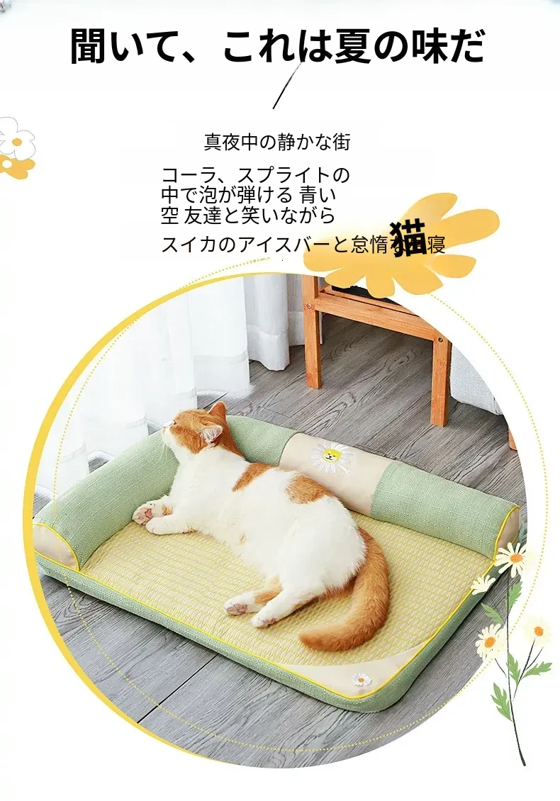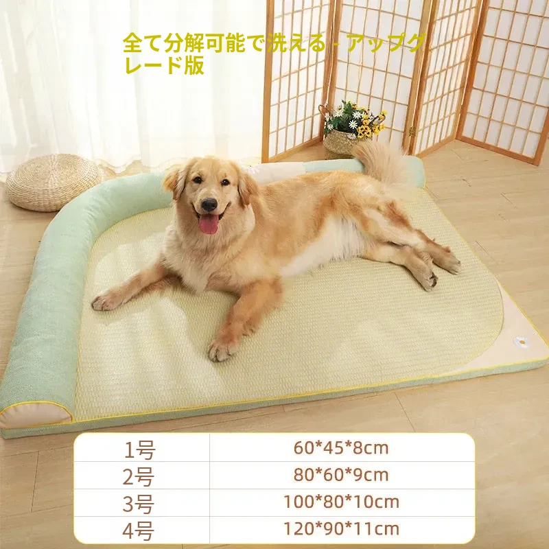 四季使える犬用クッション!夏にぴったりの涼しいマット、コーギーや猫にも最適。洗えるデザインで清潔を保ち、快適な睡眠をサポートするペット用ベッドです。