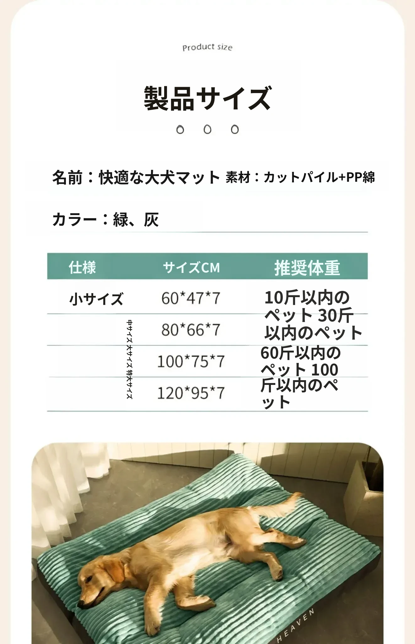 大型犬用の四季対応ペットマット - 洗濯可能で新型、冬季でも暖かい寝床!愛犬の快適な睡眠をサポートします。