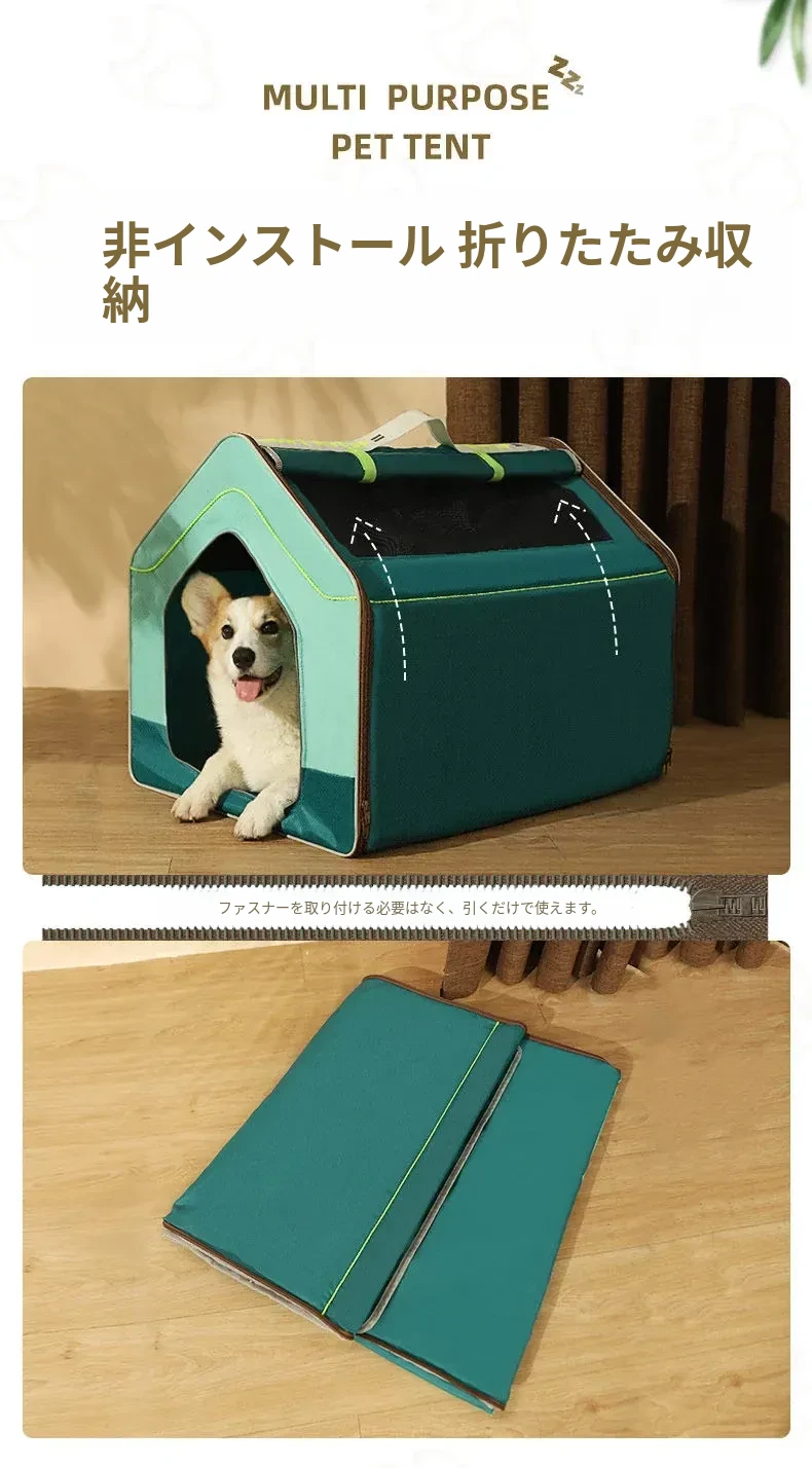 四季対応!車載用折りたたみ犬舎 - 小型犬に最適なペット用品。愛犬の快適な住まい、室内テントとしても活躍!旅行やお出かけに便利な犬小屋。