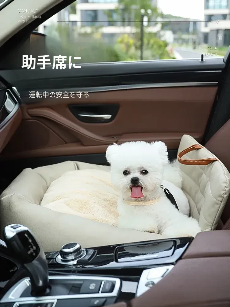 車載用小型犬用ペットベッド - 前席で愛犬と一緒に快適ドライブ!猫ちゃんにも使えるアウトドアマット!愛するペットとのお出かけをもっと楽しく!