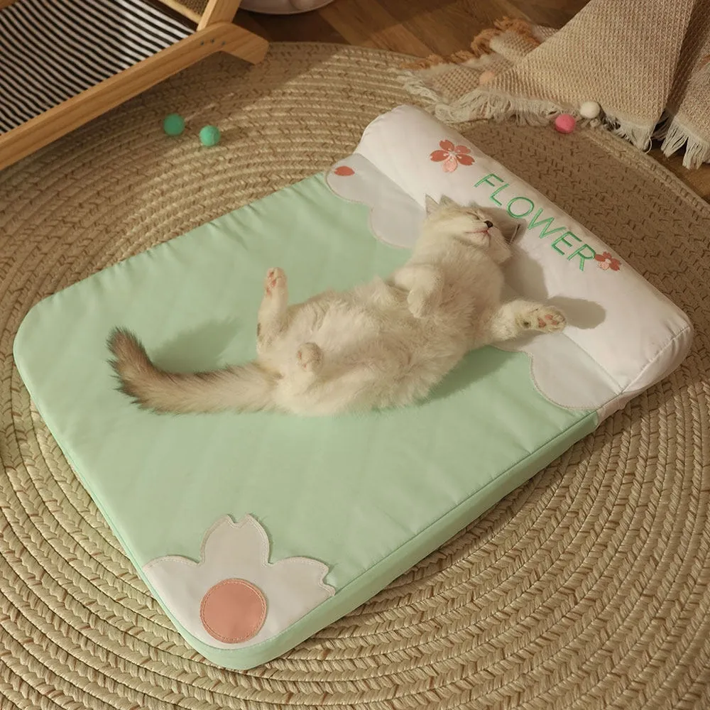 【全て洗える】四季刺繍キャットマット-爽やかなグリーン マットの厚さ4cm 全て洗える