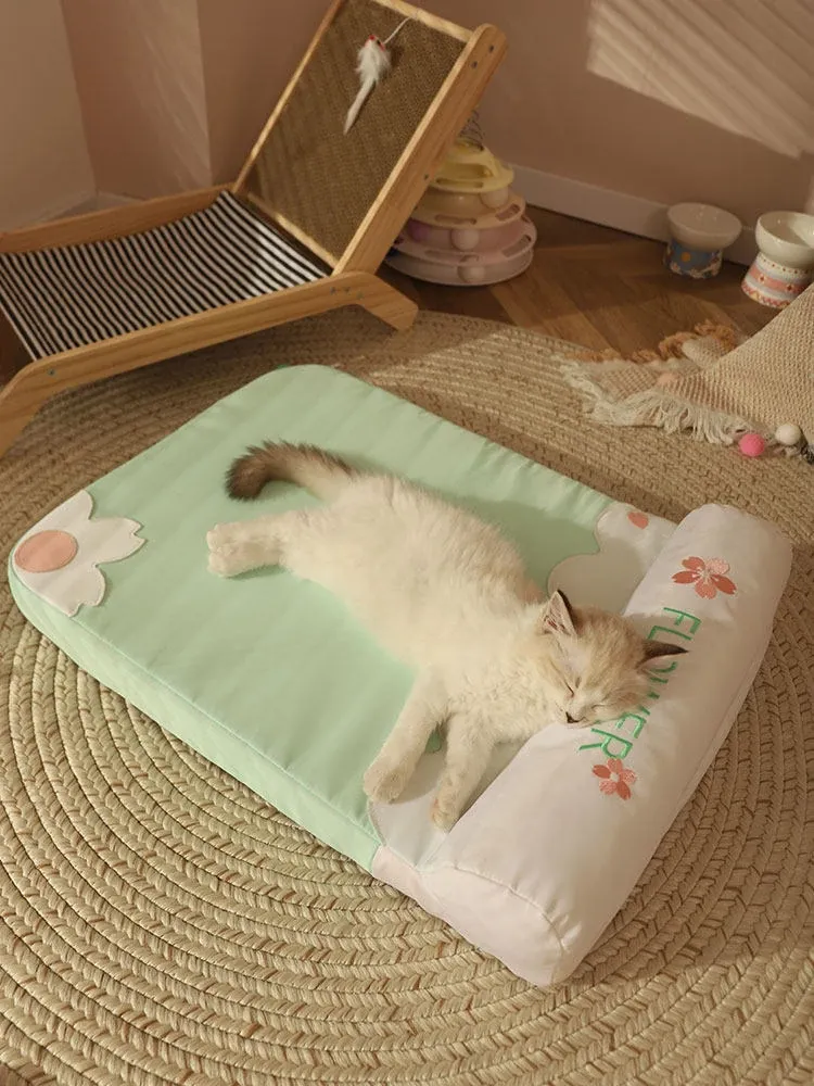 猫のための快適な寝床!毛が付きにくいペット用クールマット、四季折々に使える猫マット&枕。愛猫にぴったりの涼しさを提供します!