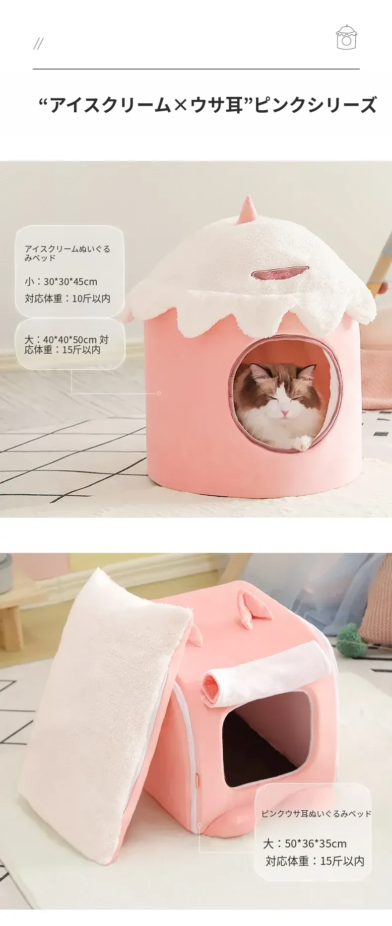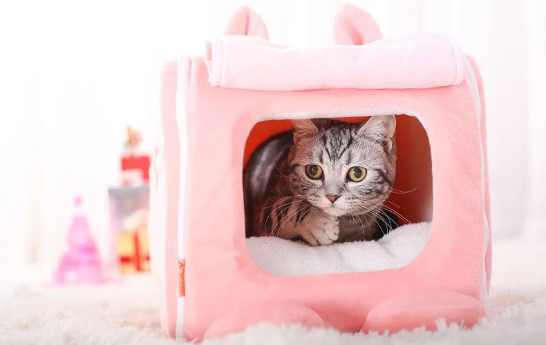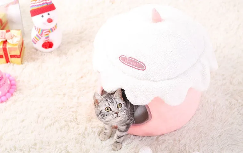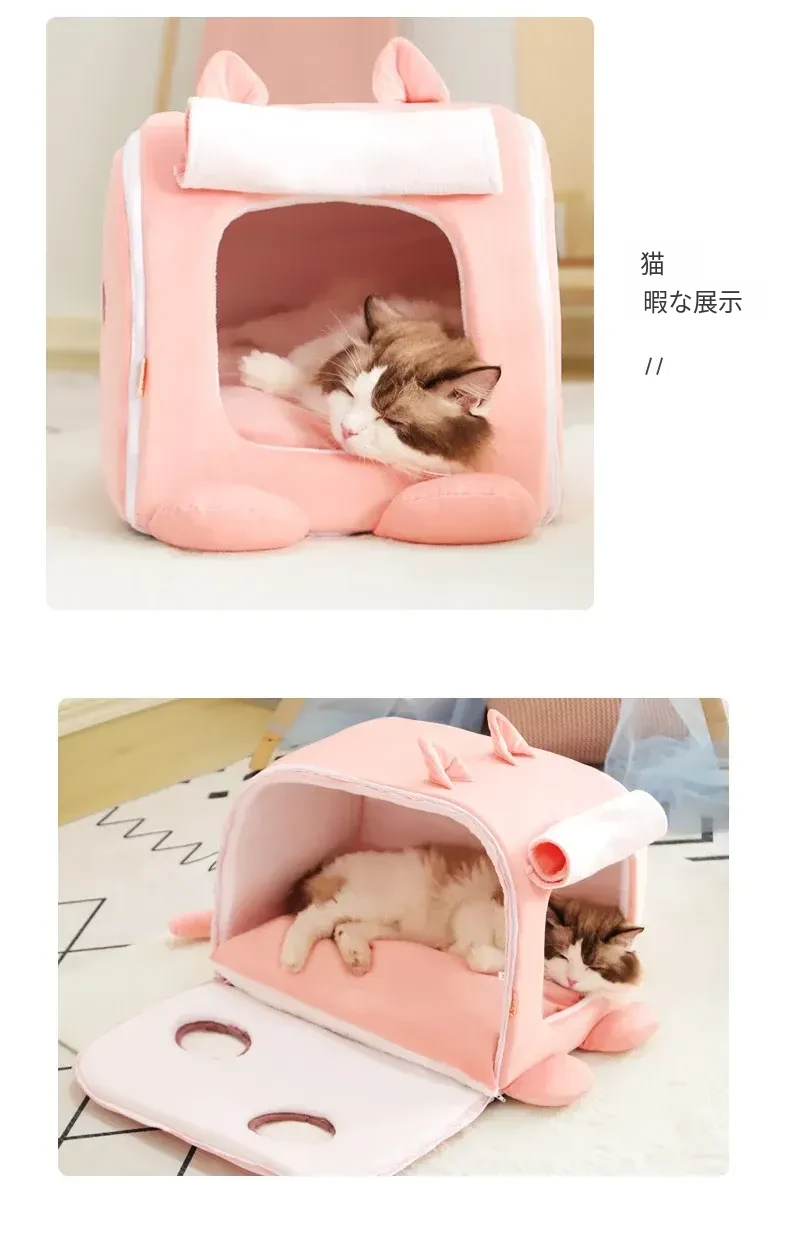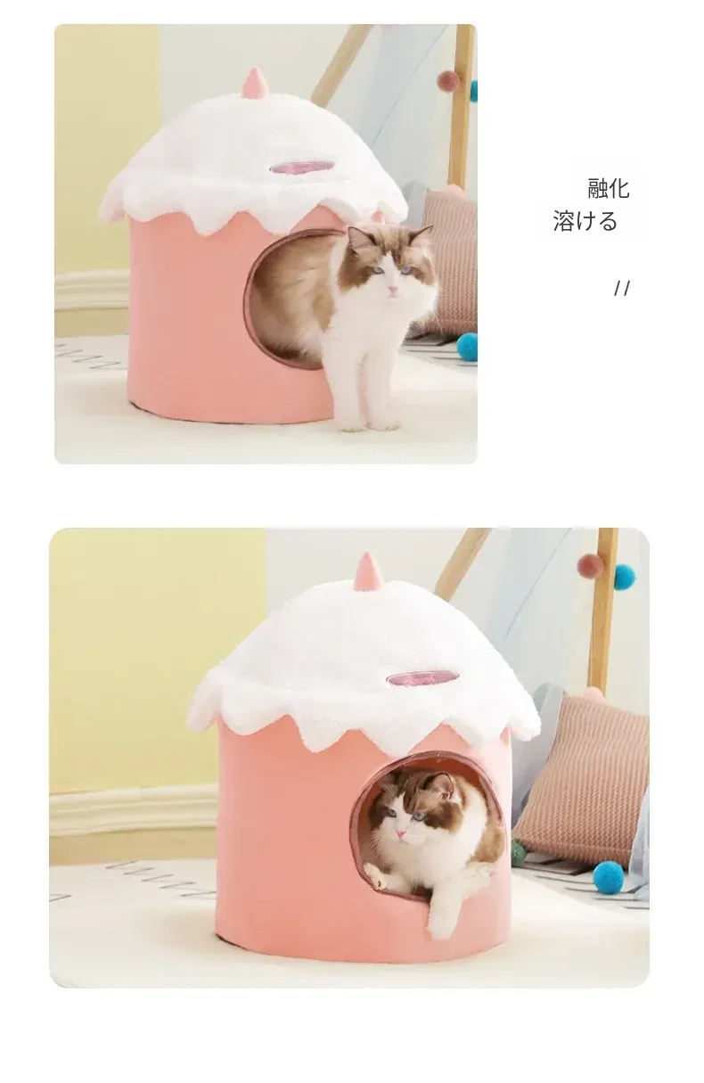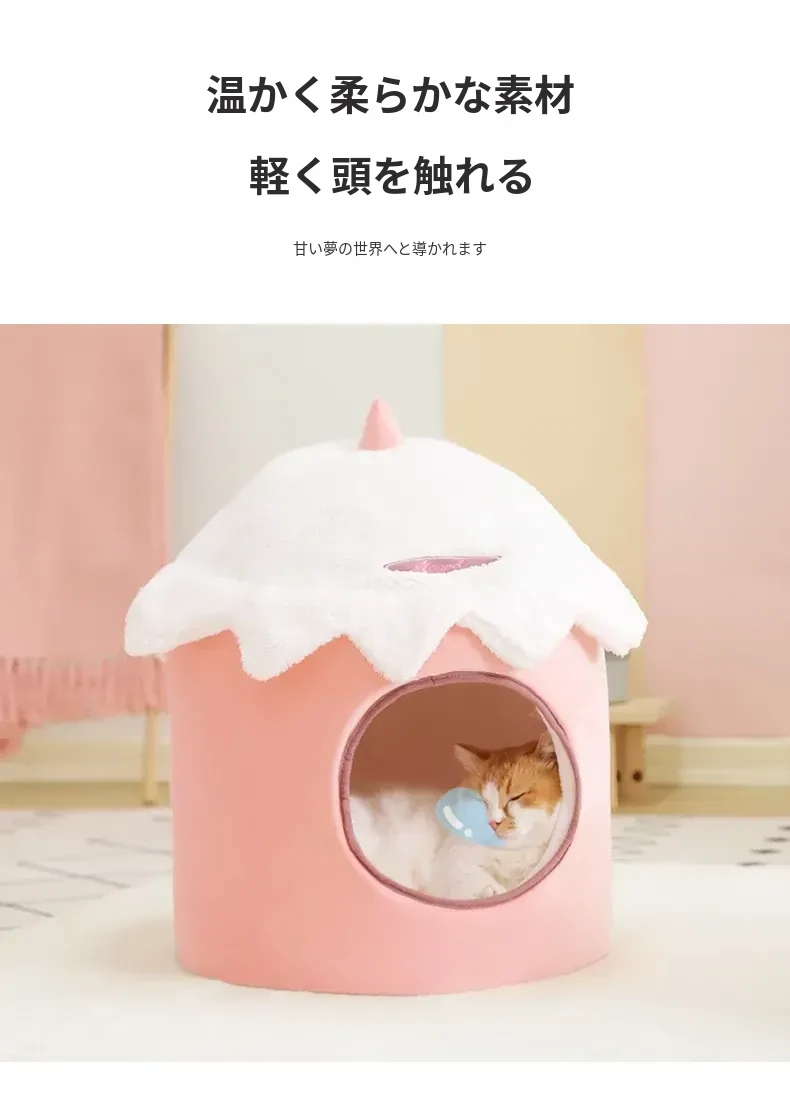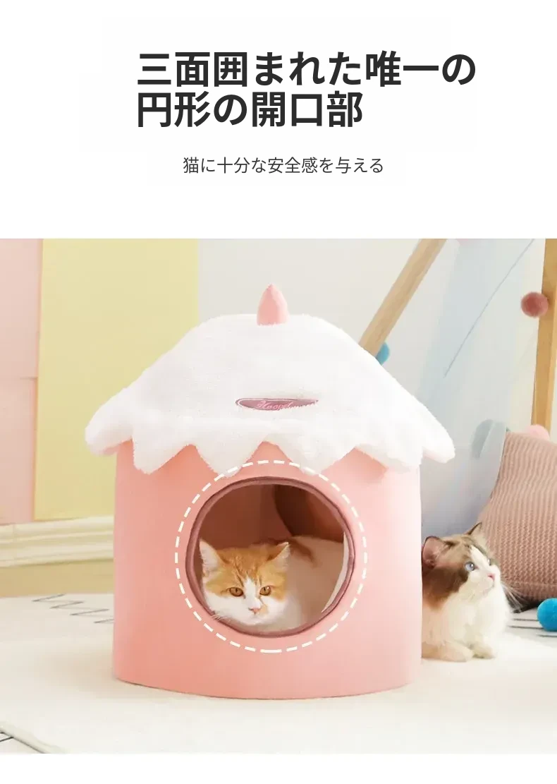 四季使える猫ハウス!秋冬にぴったりの可愛い半封閉式デザイン。愛猫が快適に過ごせる暖かい空間を提供するペット用ソファ&ベッド。あなたの猫ちゃんに最適な居場所を見つけましょう!