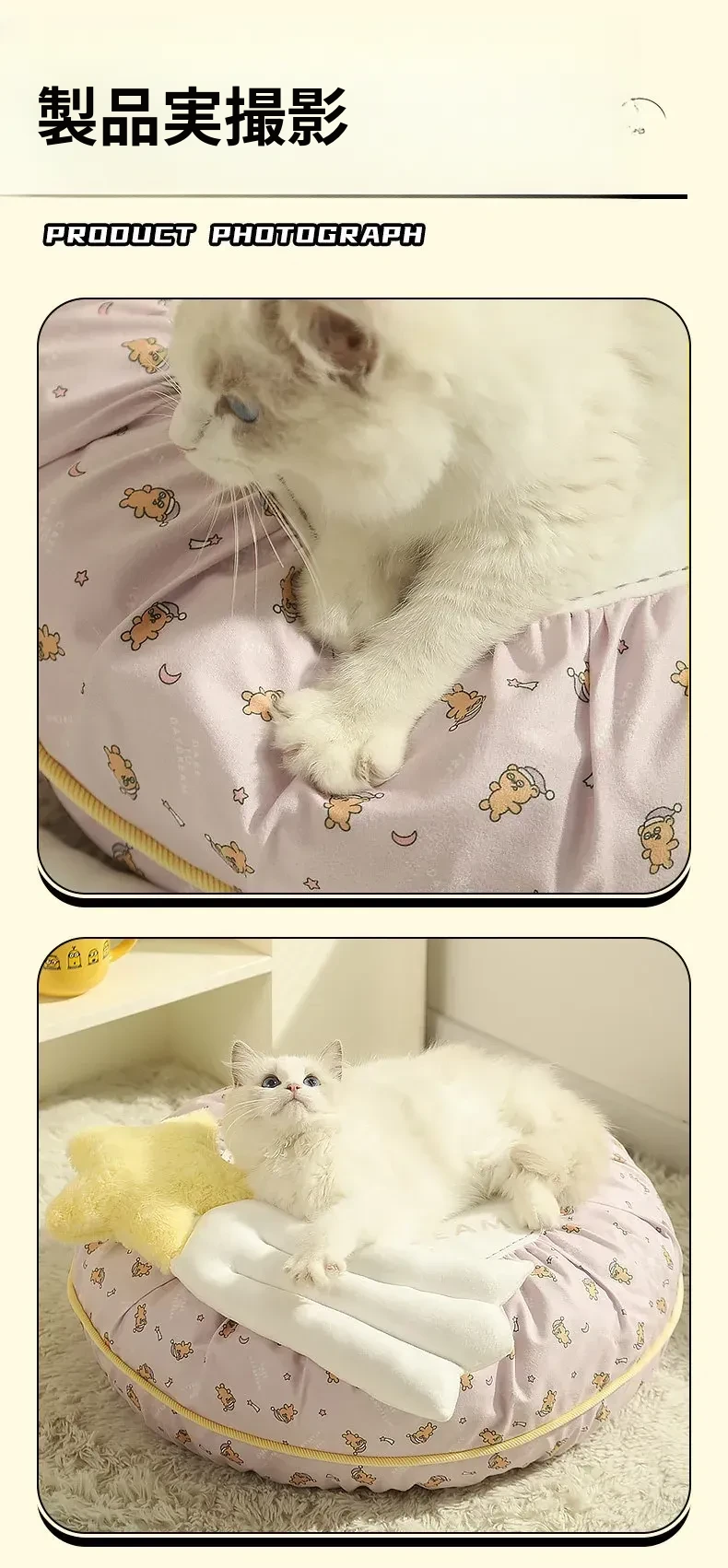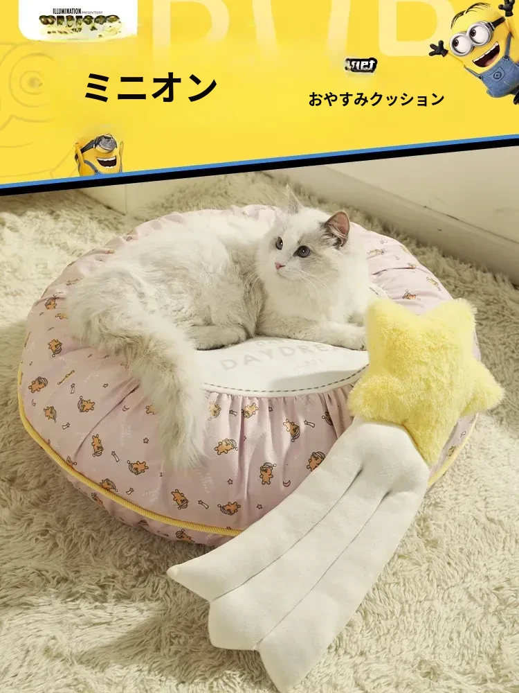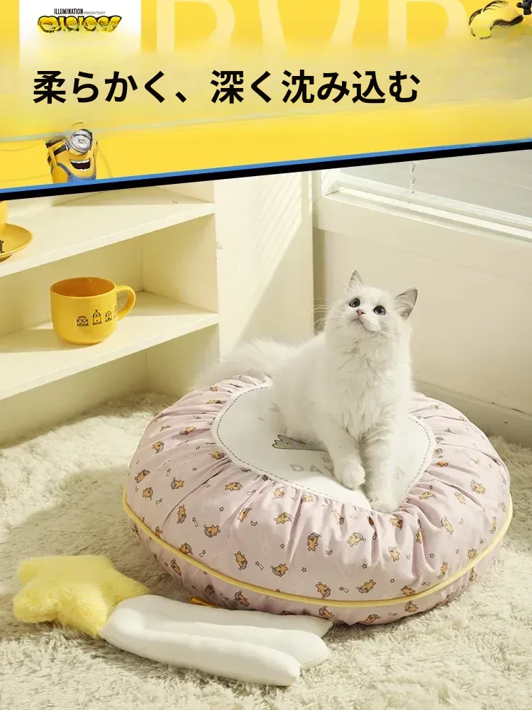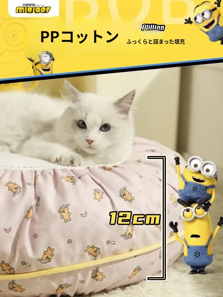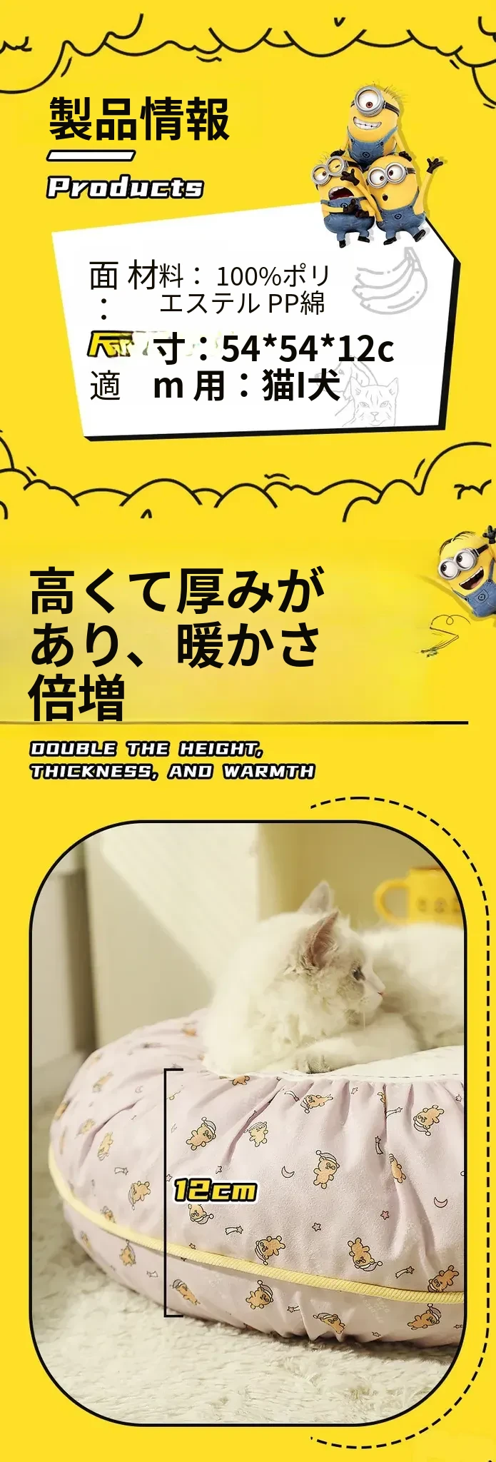 かわいい猫用ミニイエローミニオンの夜用クッションマット!ペットが快適に過ごせる滑り止め付き、秋冬にぴったりの暖かいベッド用品。折れ耳の英国短毛猫にも最適!