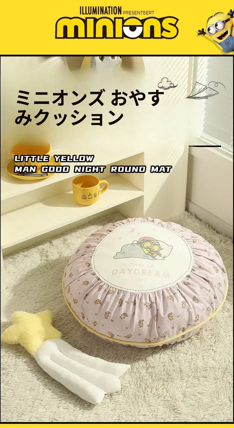 ミニオン浅紫色「おやすみ」ラウンドクッション