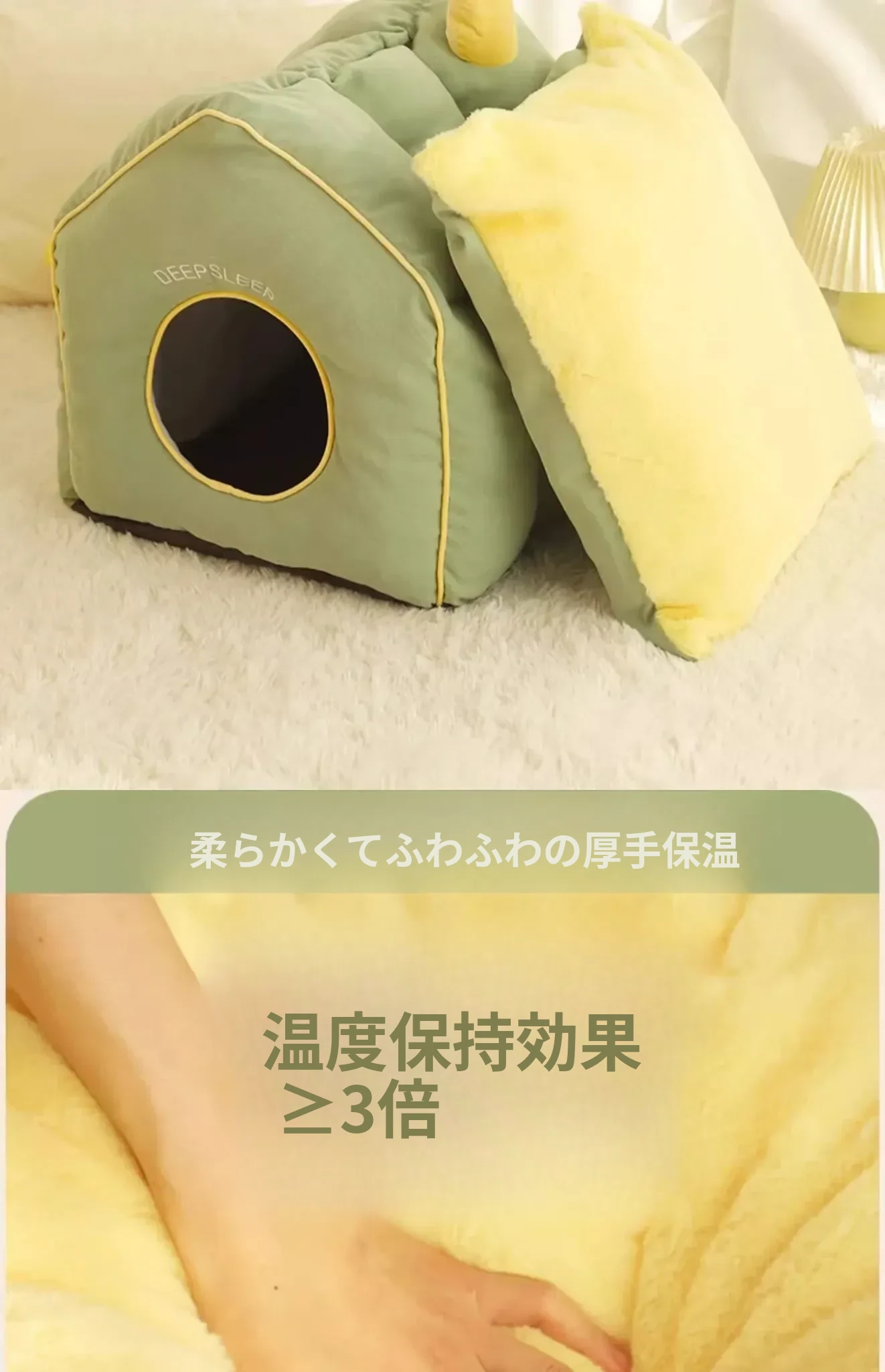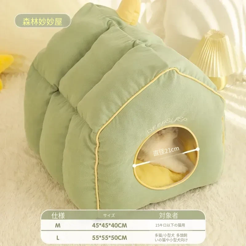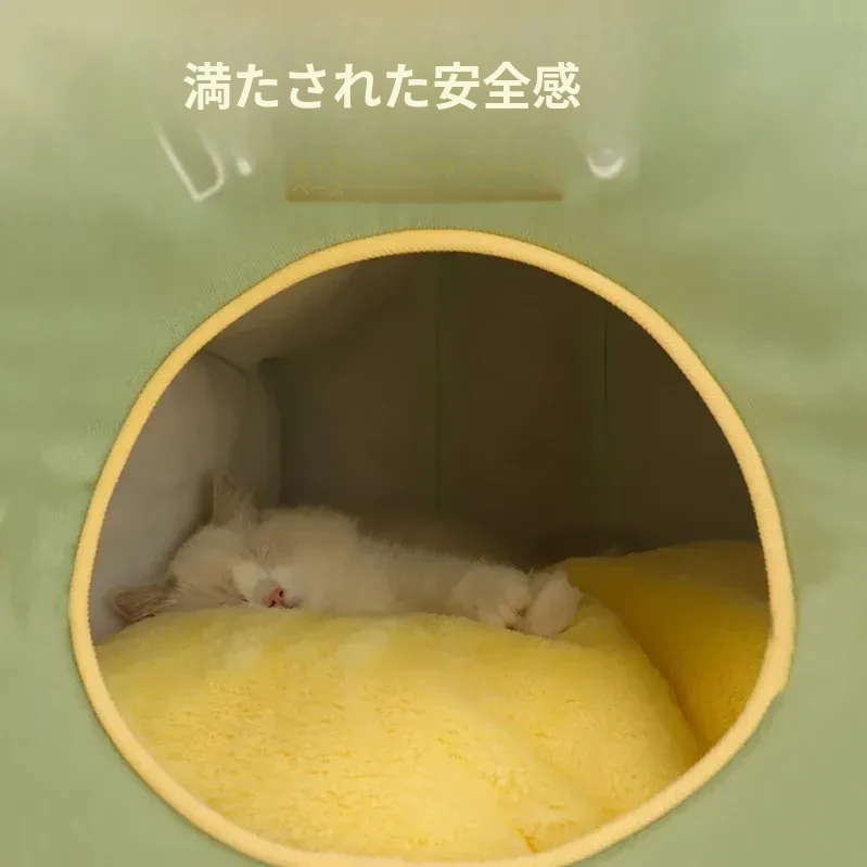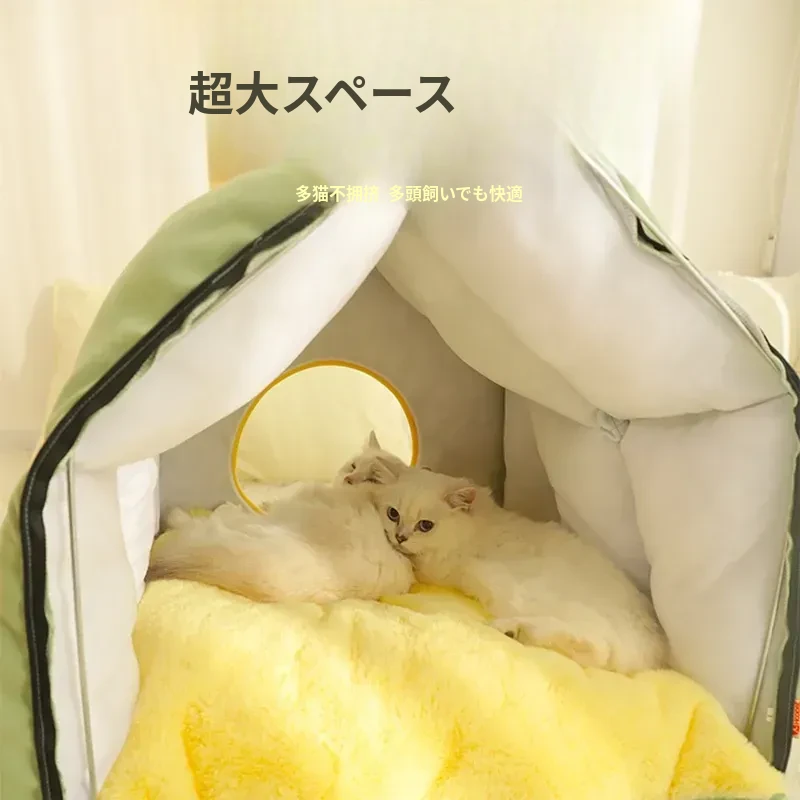 冬でも暖かい!安全感あふれる封閉式ネコベッド - 四季通用の猫マットで、寒い冬にぴったりのネコ隠れ家。あなたの猫ちゃんを心地よく守ります!