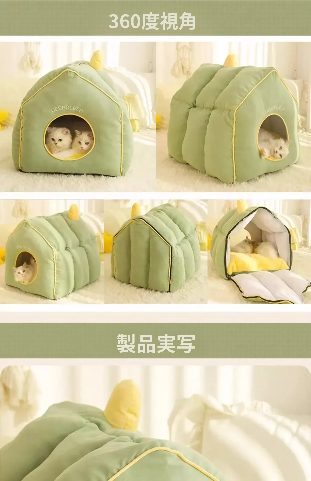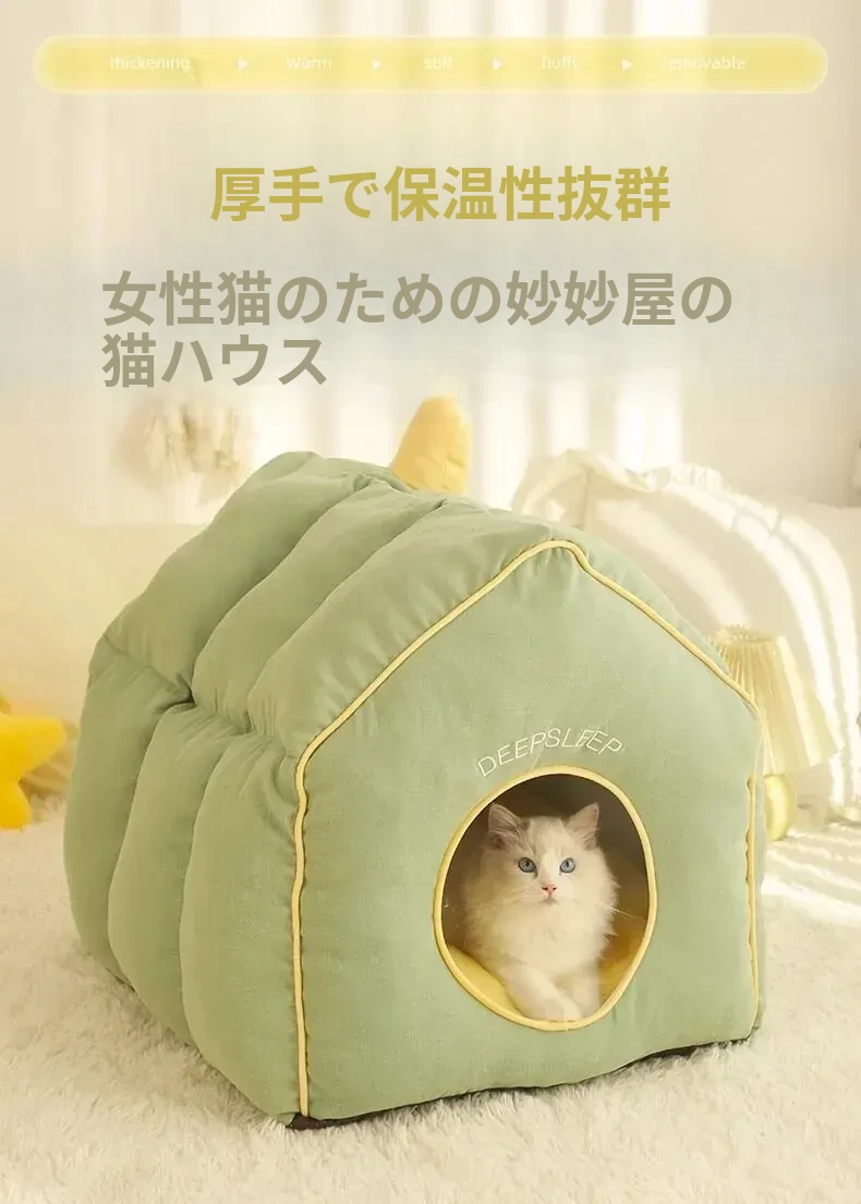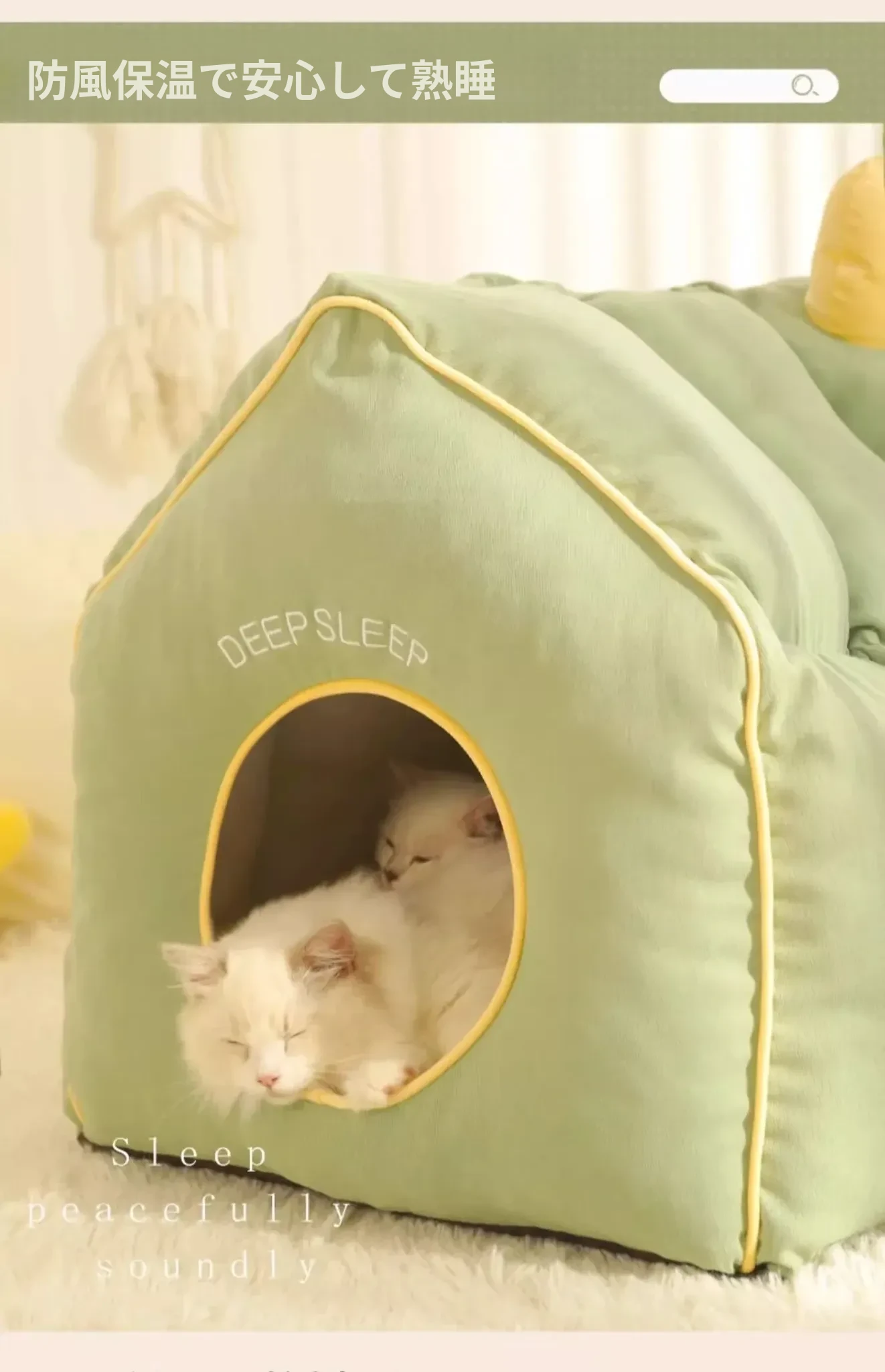 冬でも暖かい!安全感あふれる封閉式ネコベッド - 四季通用の猫マットで、寒い冬にぴったりのネコ隠れ家。あなたの猫ちゃんを心地よく守ります!