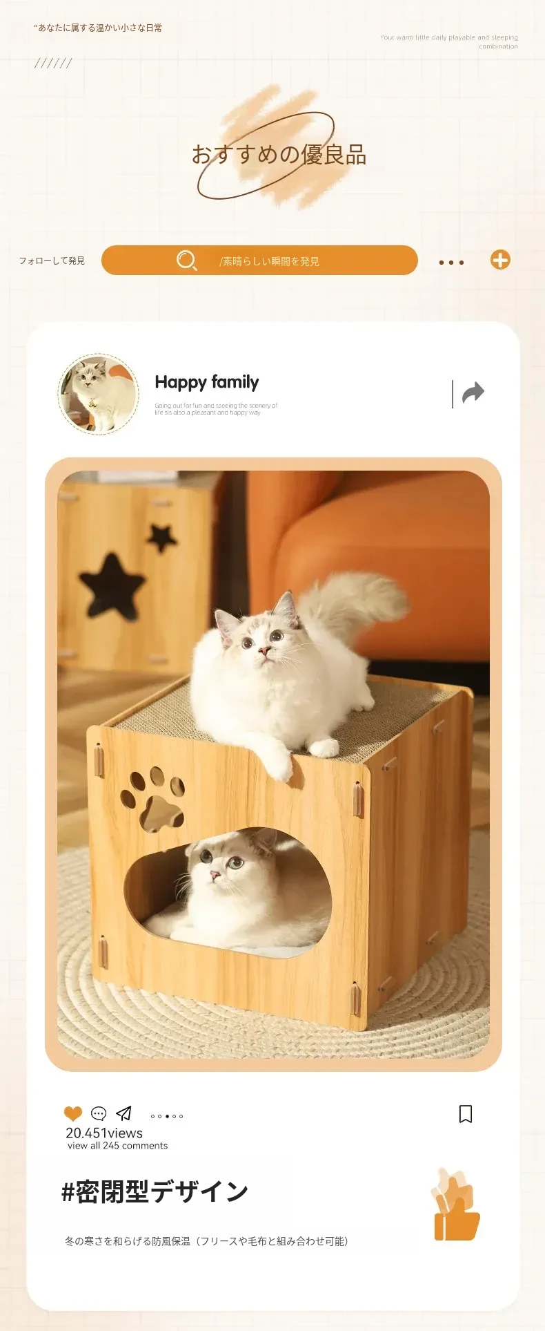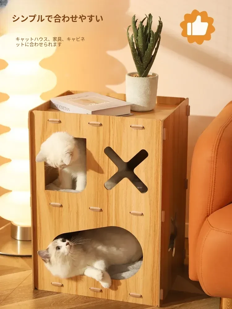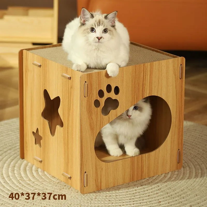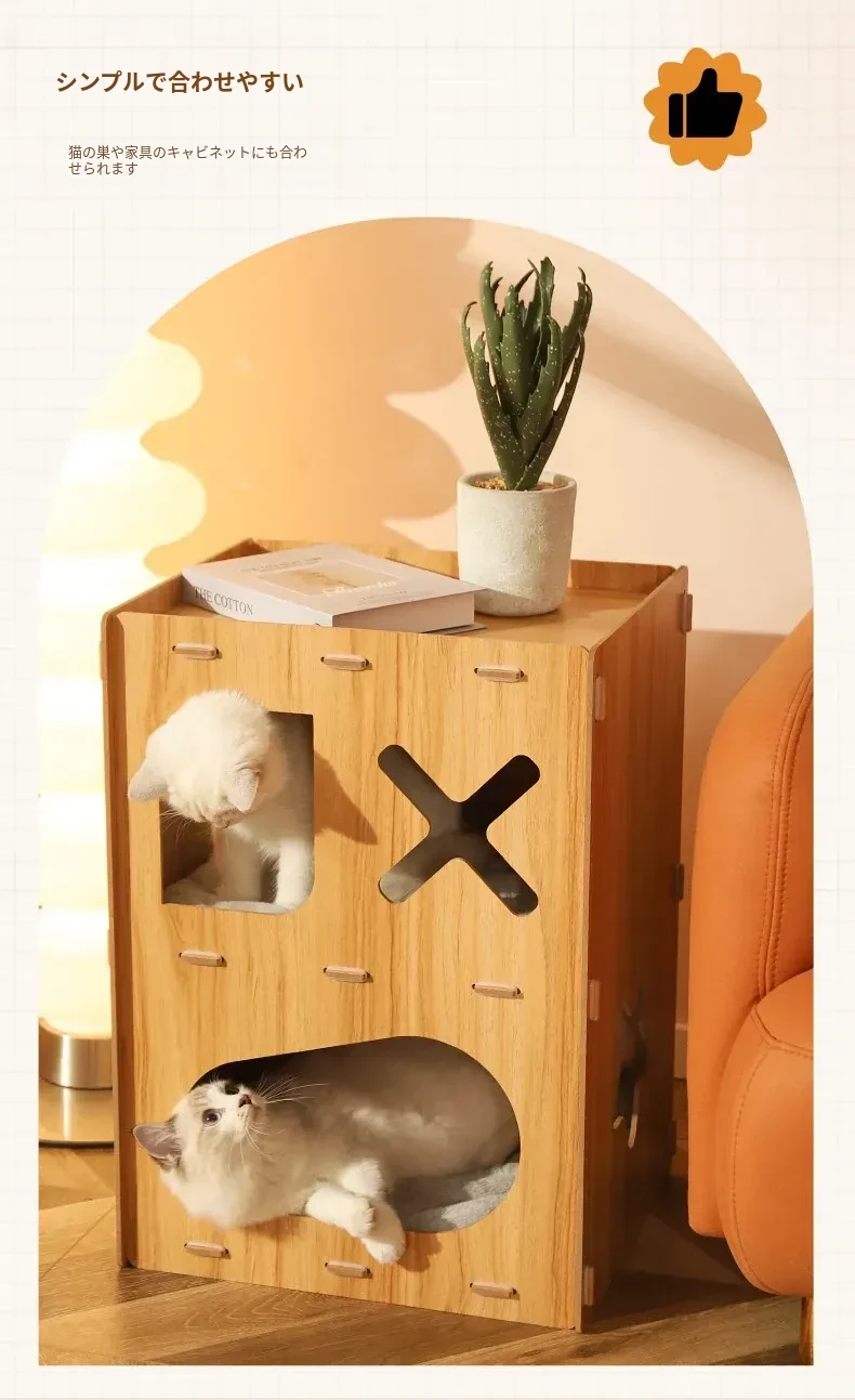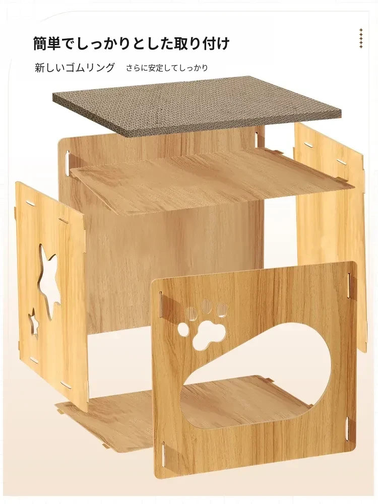 可愛らしいペット用マルチファンクションキューブ!四季にぴったりな子猫用ヴィラ型キャットハウス。爪とぎ、遊び、休息が一体化した理想的なアイテムで、愛猫も大満足!
