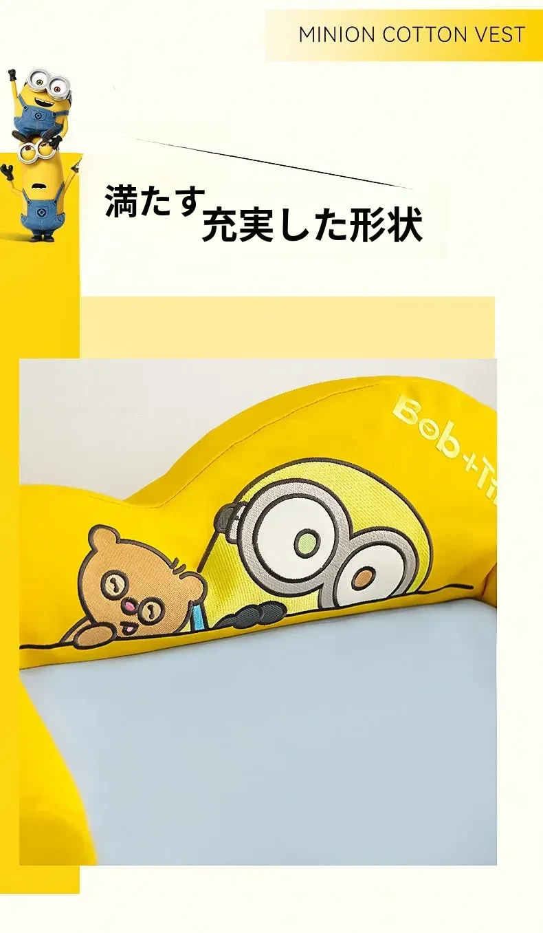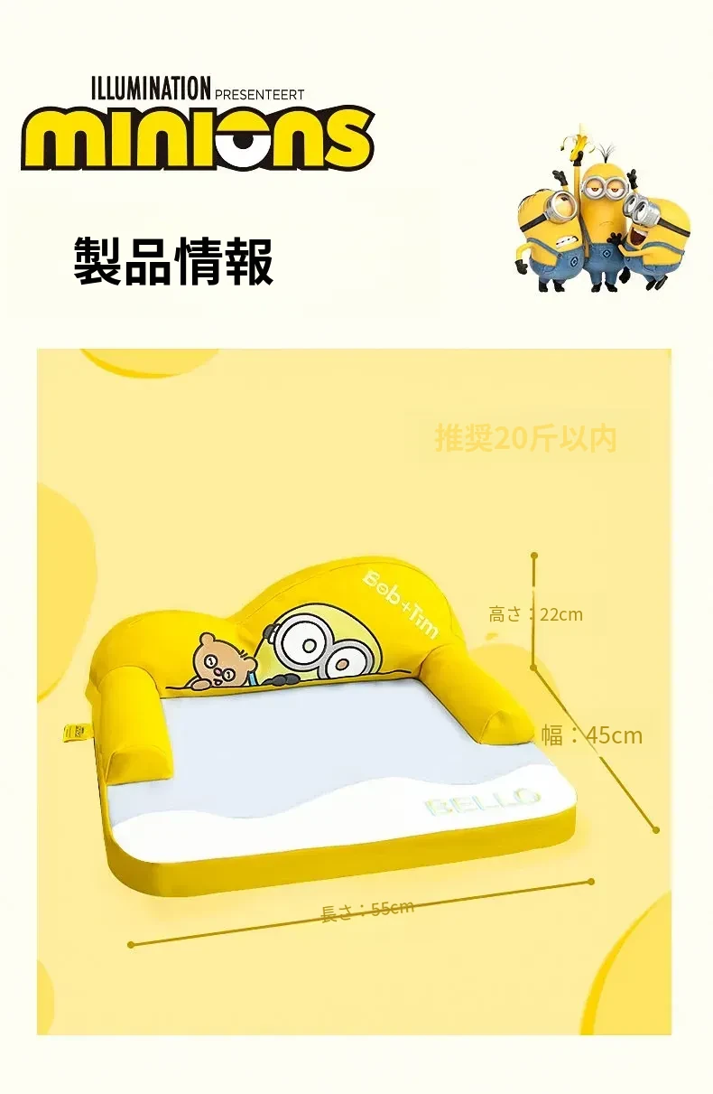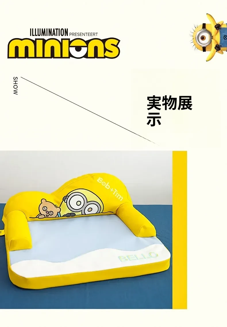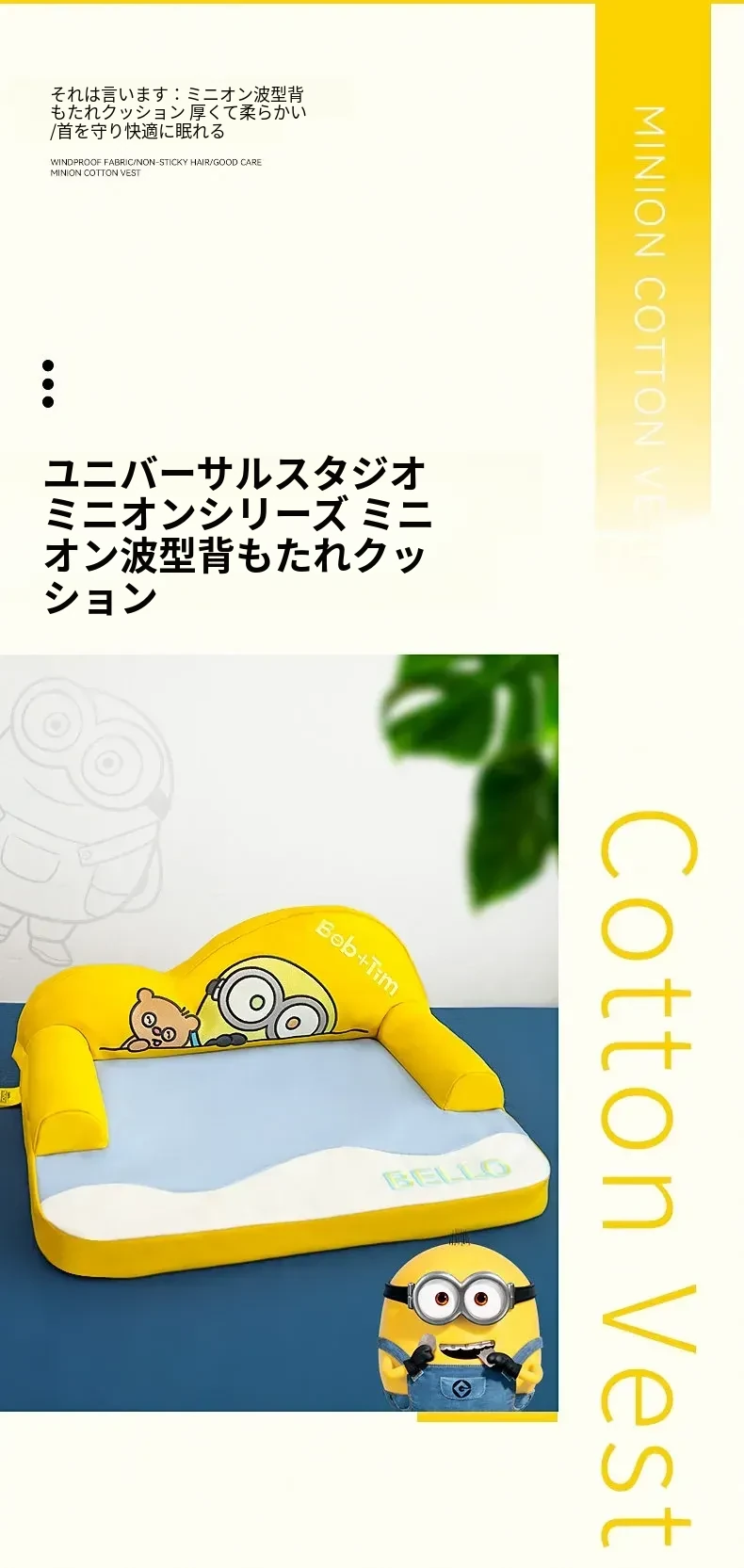 ペット用ミニオンズ波浪型背もたれベッド - 布団付きで快適なラグドール猫や小型犬に最適!洗えるデザインで清潔さをキープ。四季を通じて使える首サポートクッション付きで愛するペットにぴったり!