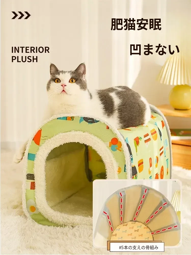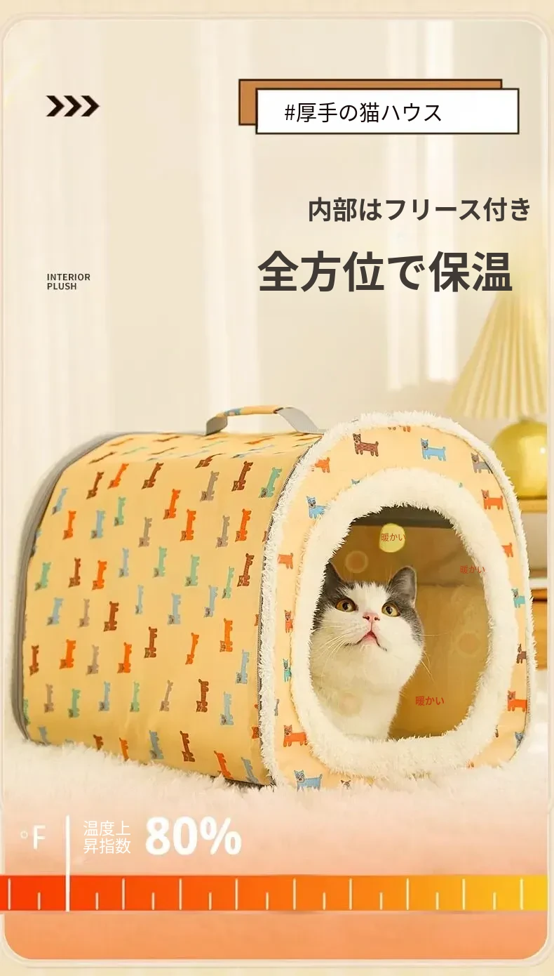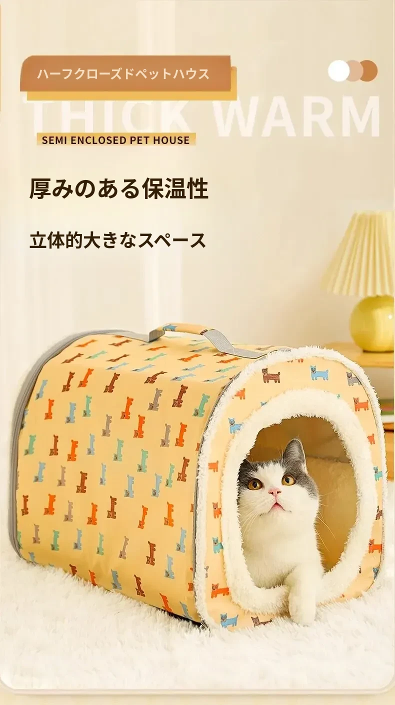 四季対応!半封閉式子猫用隠れ家 - 安全感たっぷりの猫ベッド、冬も暖かい猫ハウス。あなたの愛猫にぴったりの快適空間を提供します!