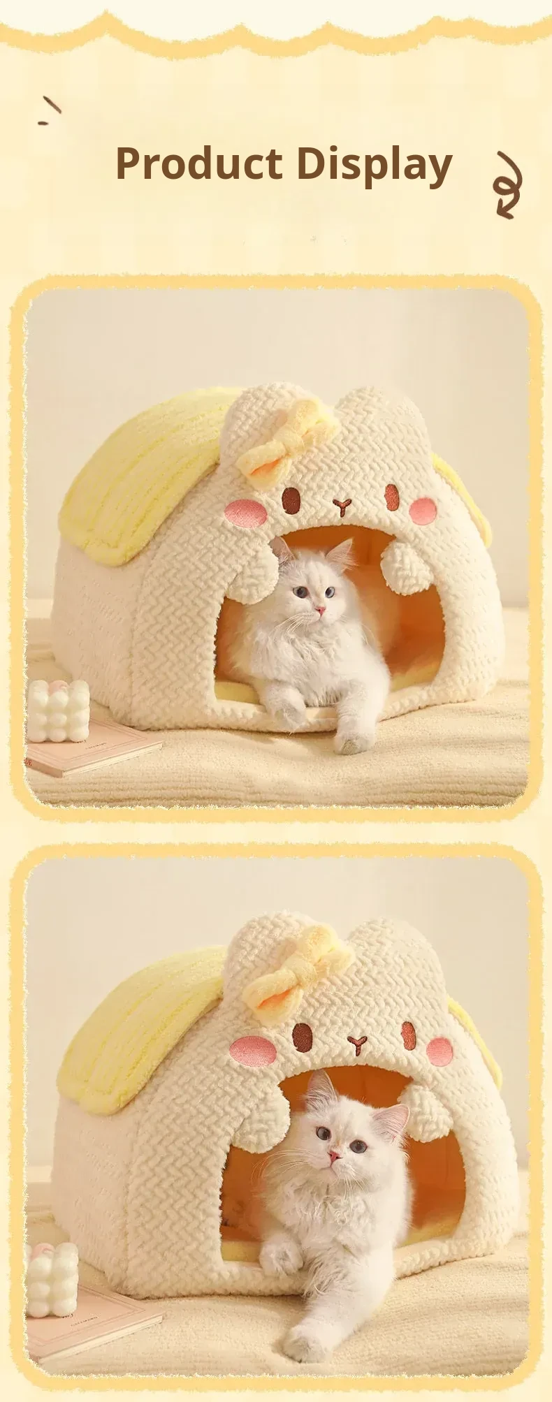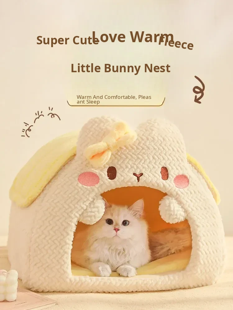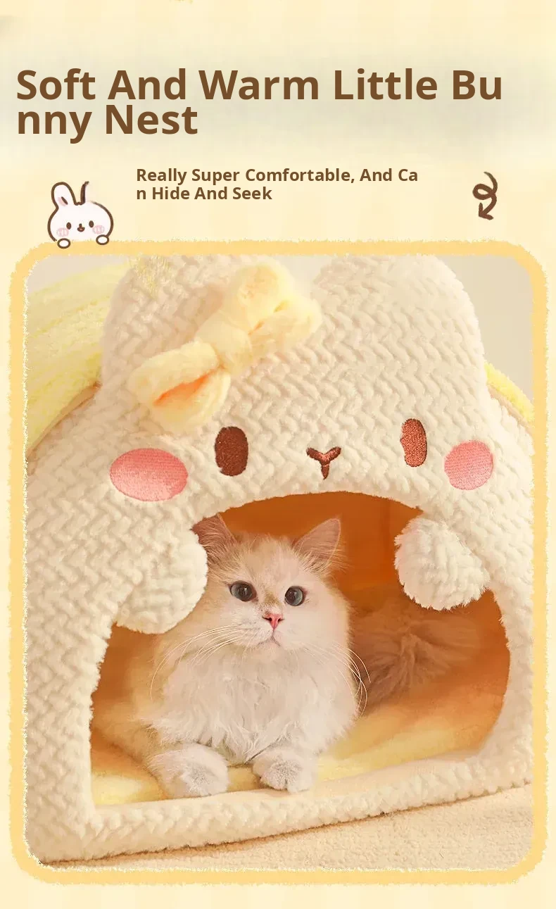 Closed Cat Nest - Small Rabbit Nest + Comfortable Cotton Blanket*1