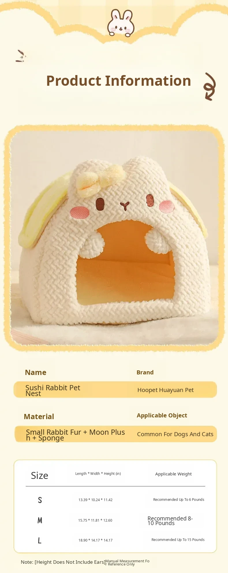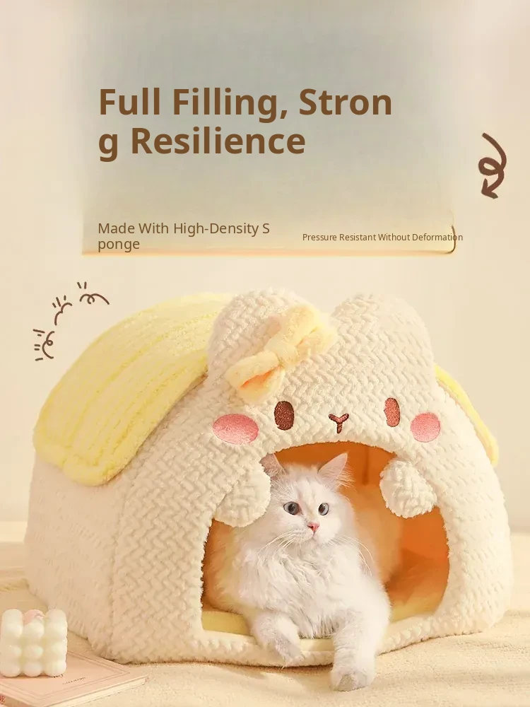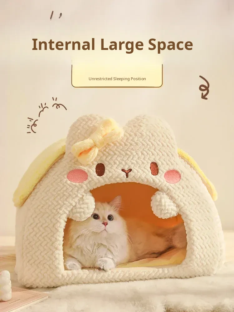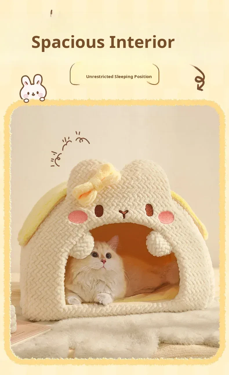 Closed Cat Nest - Small Rabbit Nest + Comfortable Cotton Blanket*1