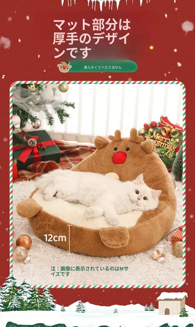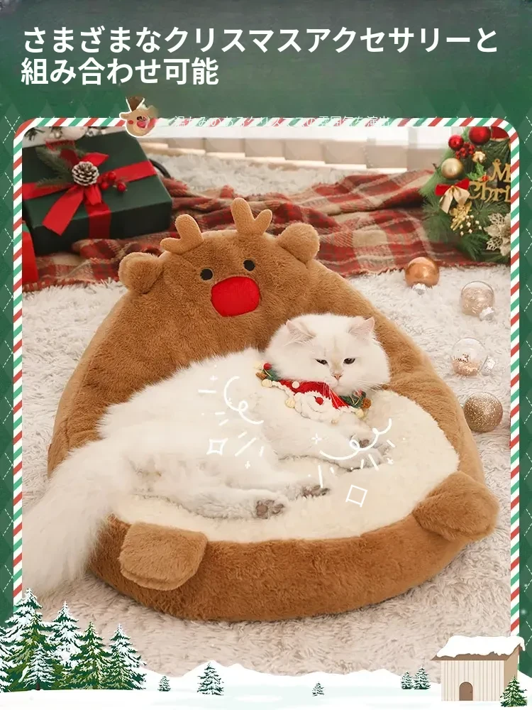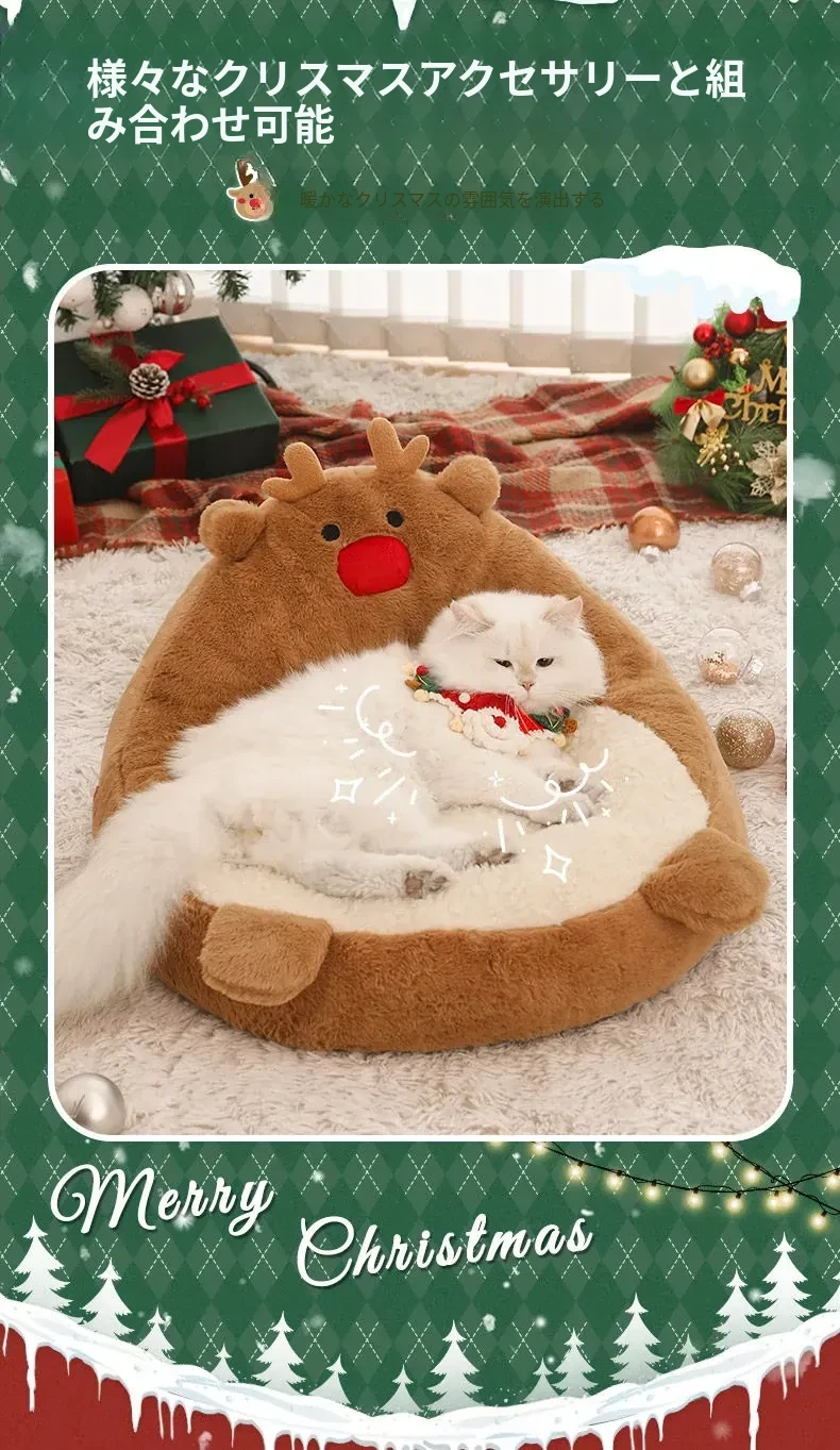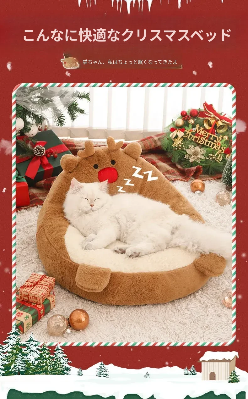 クリスマス猫ハウス - 冬の暖かさを提供する猫用ベッド!愛らしいデザインで、あなたの小さな友達を快適に守ります。寒い季節にぴったりのペット用ソファ、犬も使える冬用ベッド。