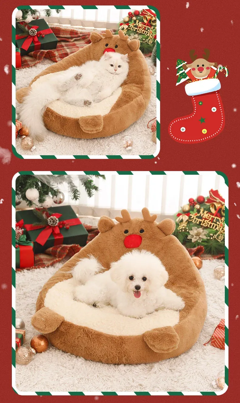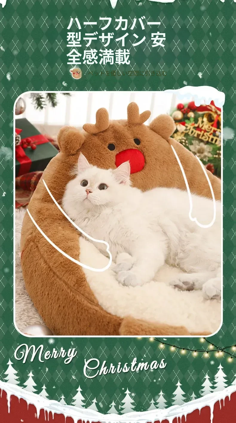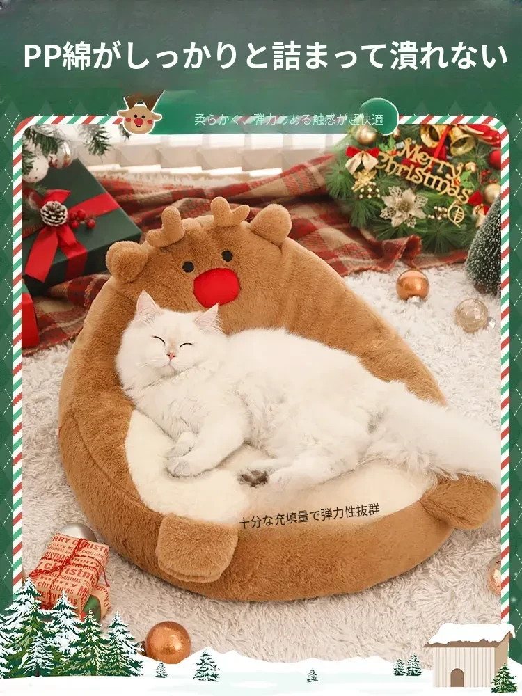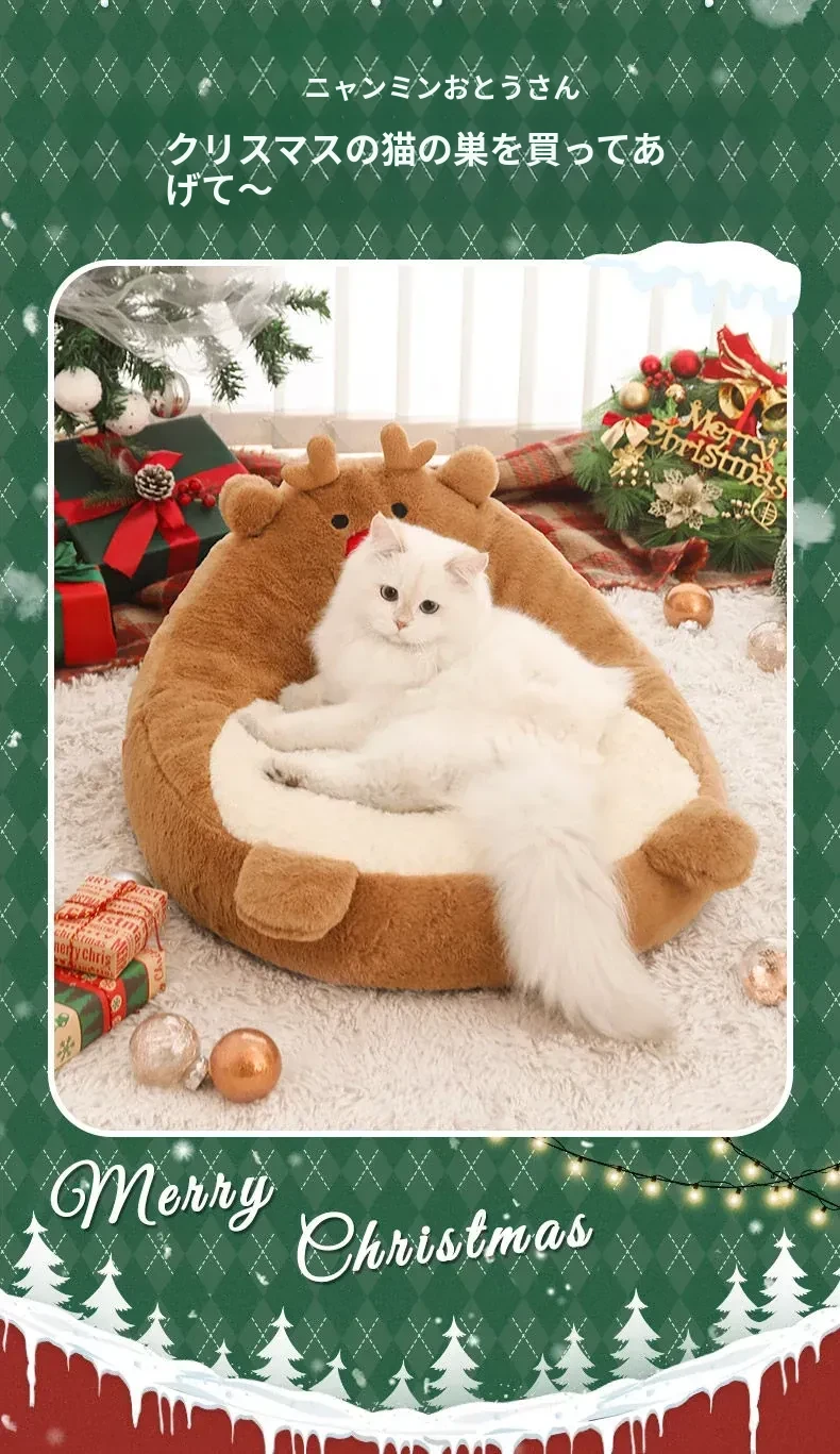 クリスマス猫ハウス - 冬の暖かさを提供する猫用ベッド!愛らしいデザインで、あなたの小さな友達を快適に守ります。寒い季節にぴったりのペット用ソファ、犬も使える冬用ベッド。