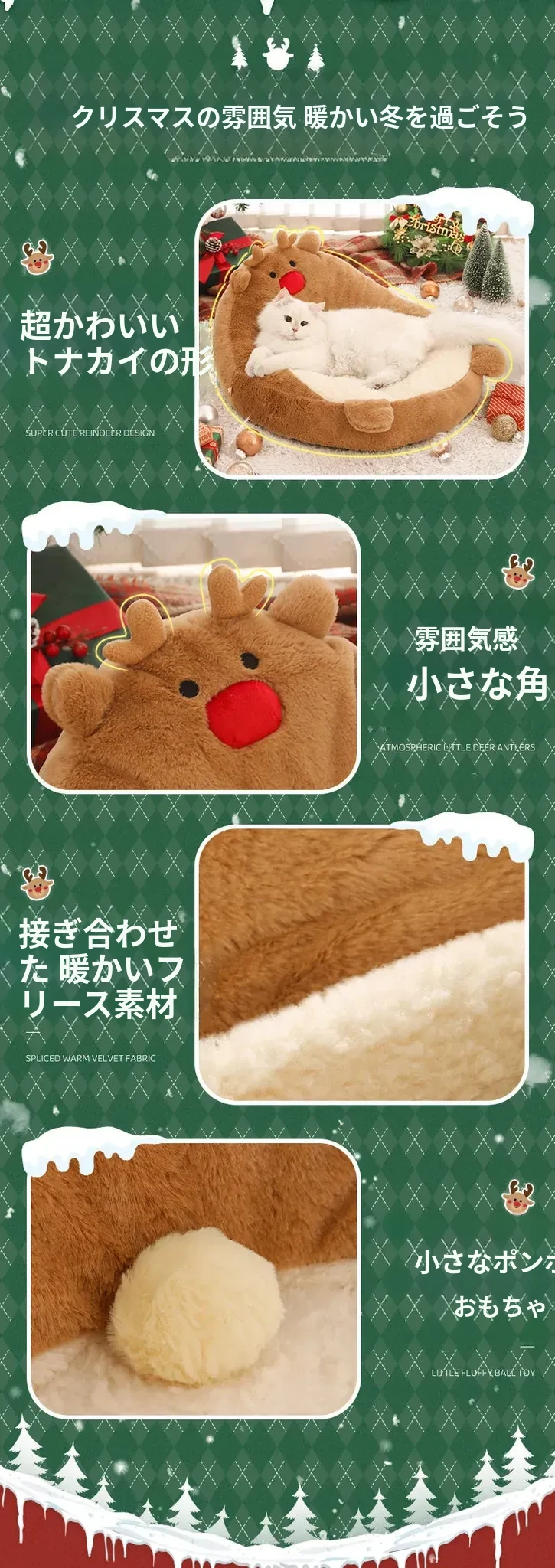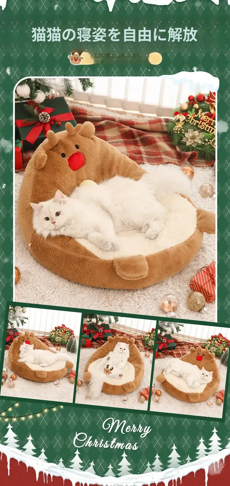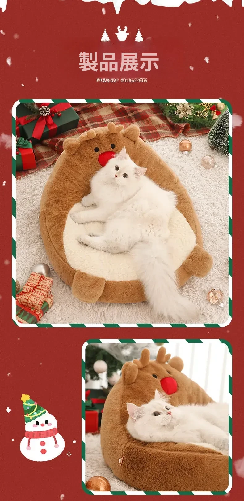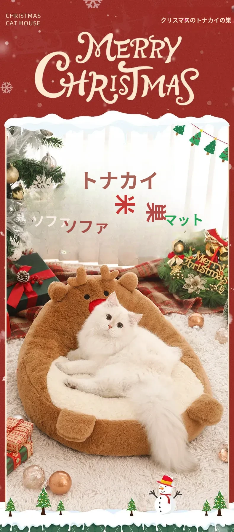 クリスマス猫ハウス - 冬の暖かさを提供する猫用ベッド!愛らしいデザインで、あなたの小さな友達を快適に守ります。寒い季節にぴったりのペット用ソファ、犬も使える冬用ベッド。