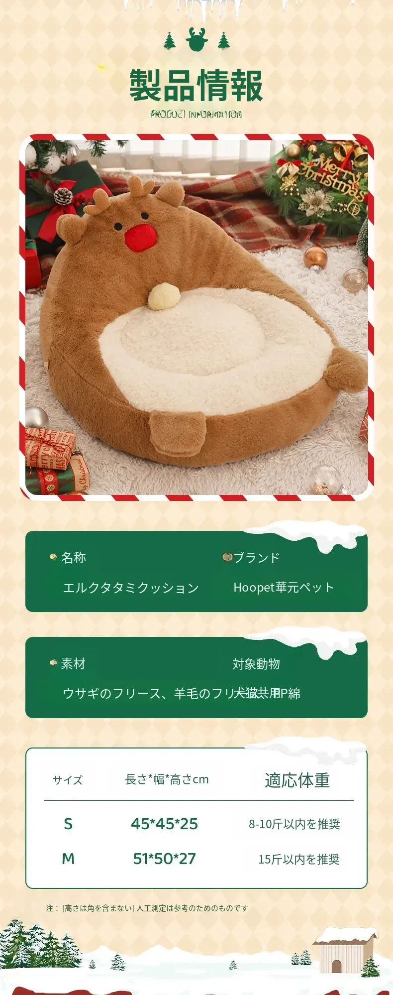 【クリスマス限定】トナカイのパパマットベッド(サイズは画像を参照)