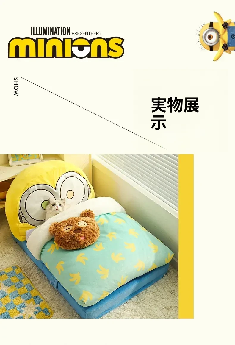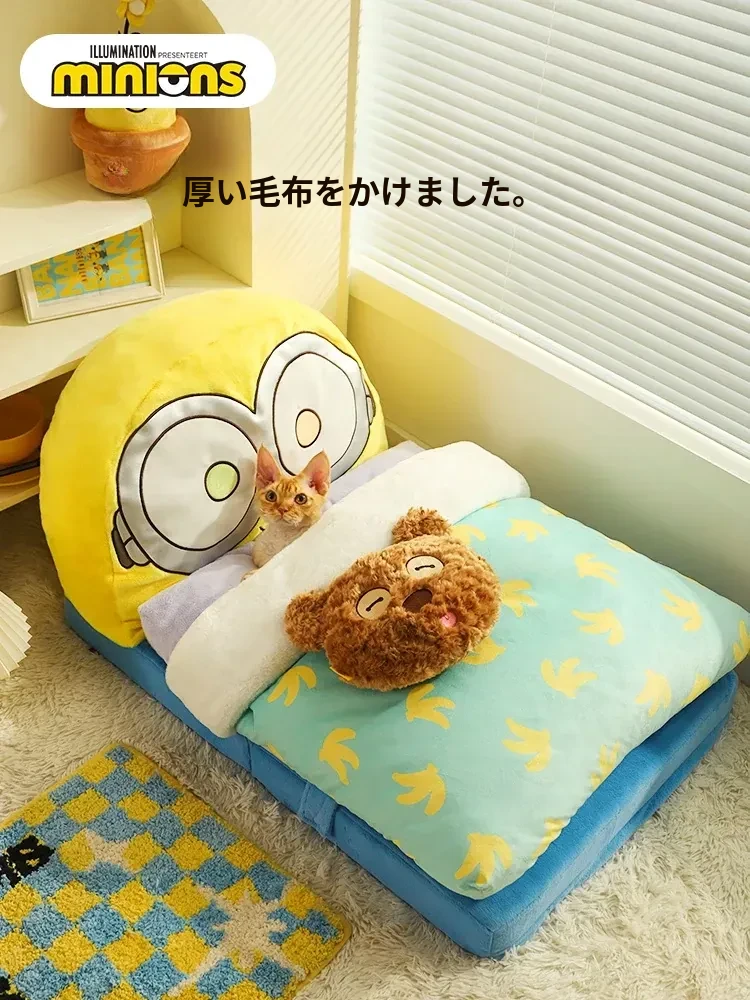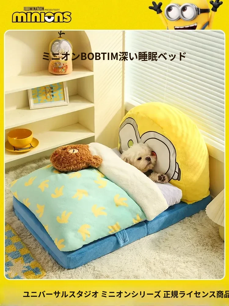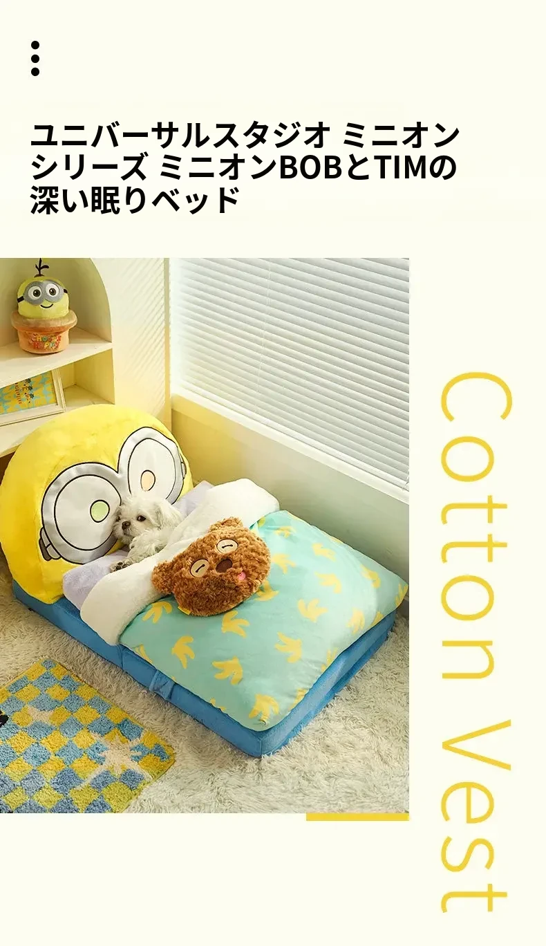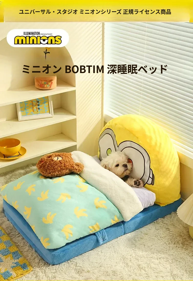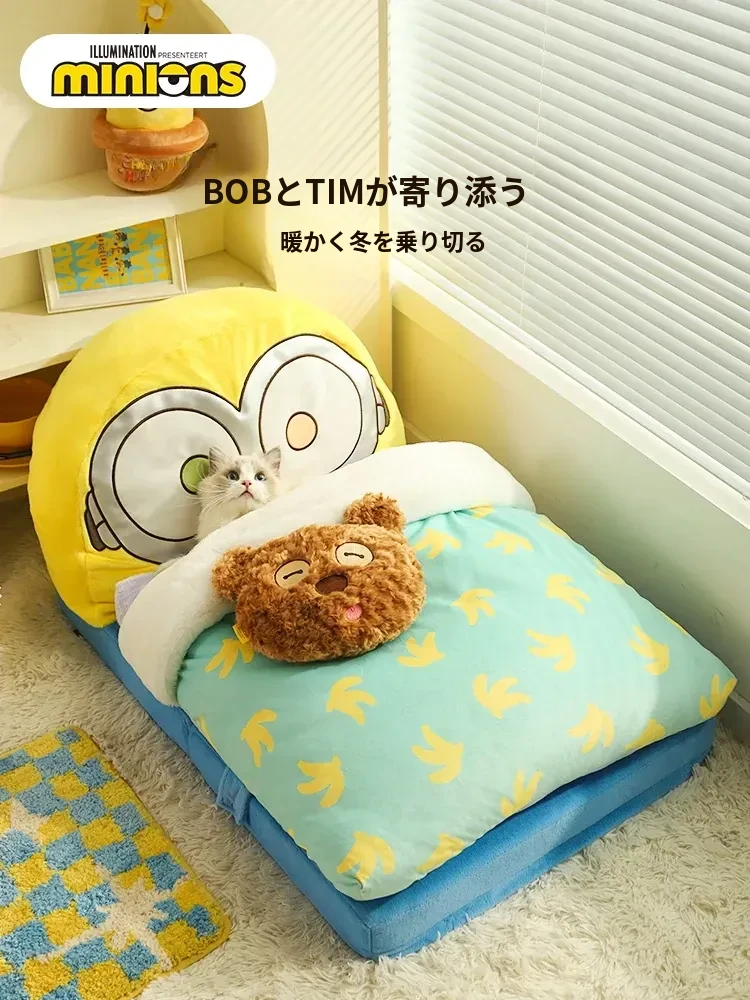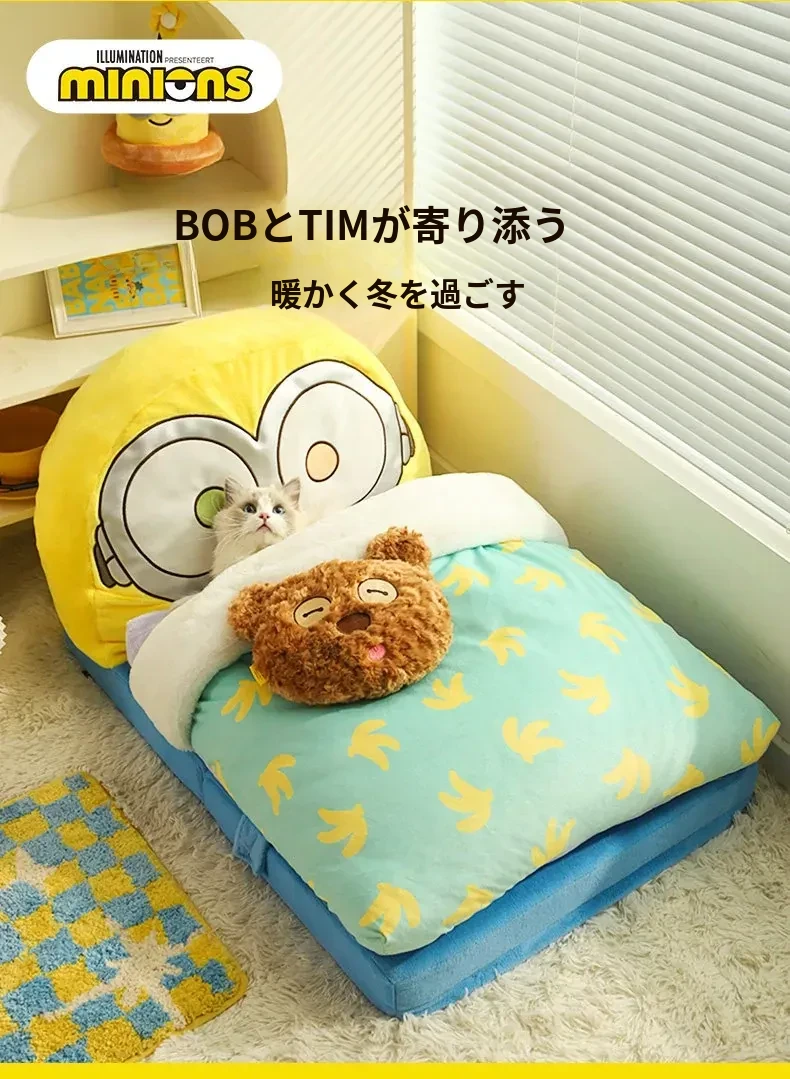 冬の寒さから愛犬・愛猫を守る!小黄人デザインの保温ペットベッド、全て洗える快適マット。小型犬や猫ちゃんにもぴったりな冬用寝具!
