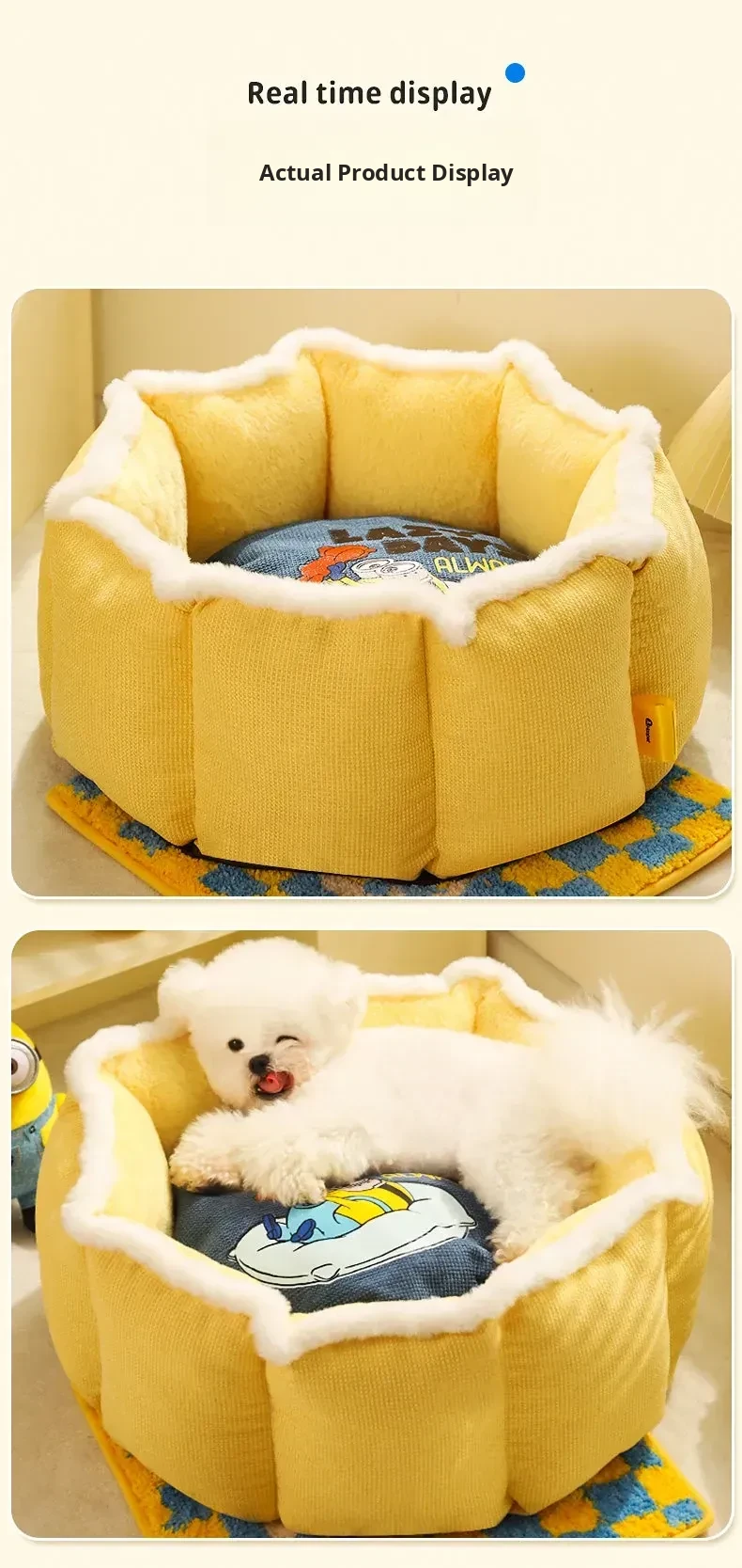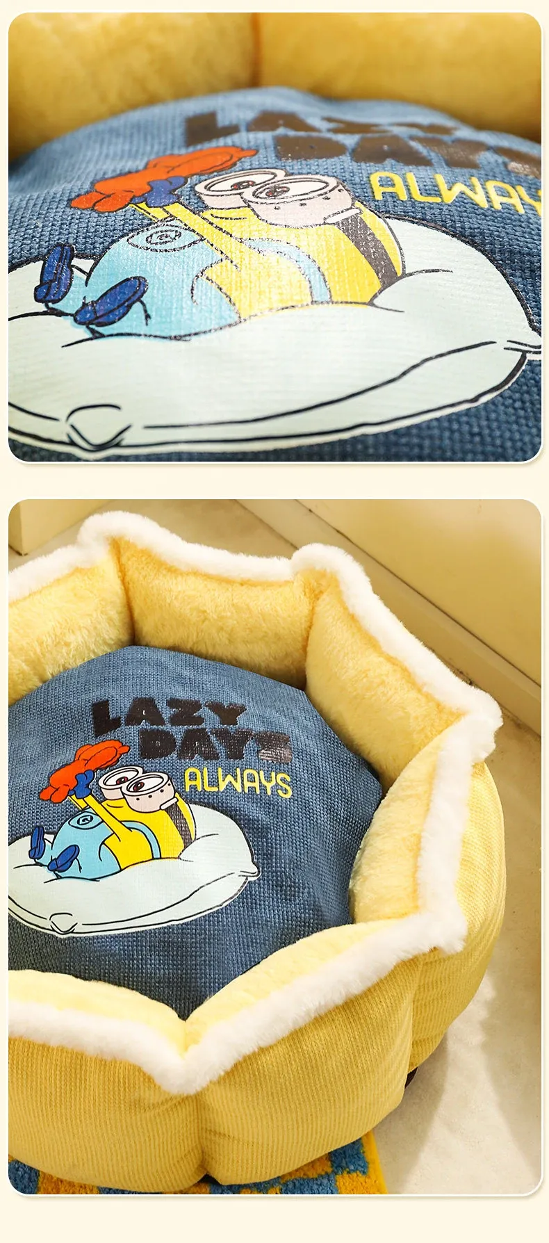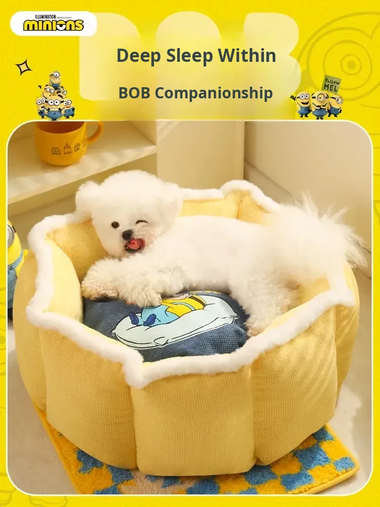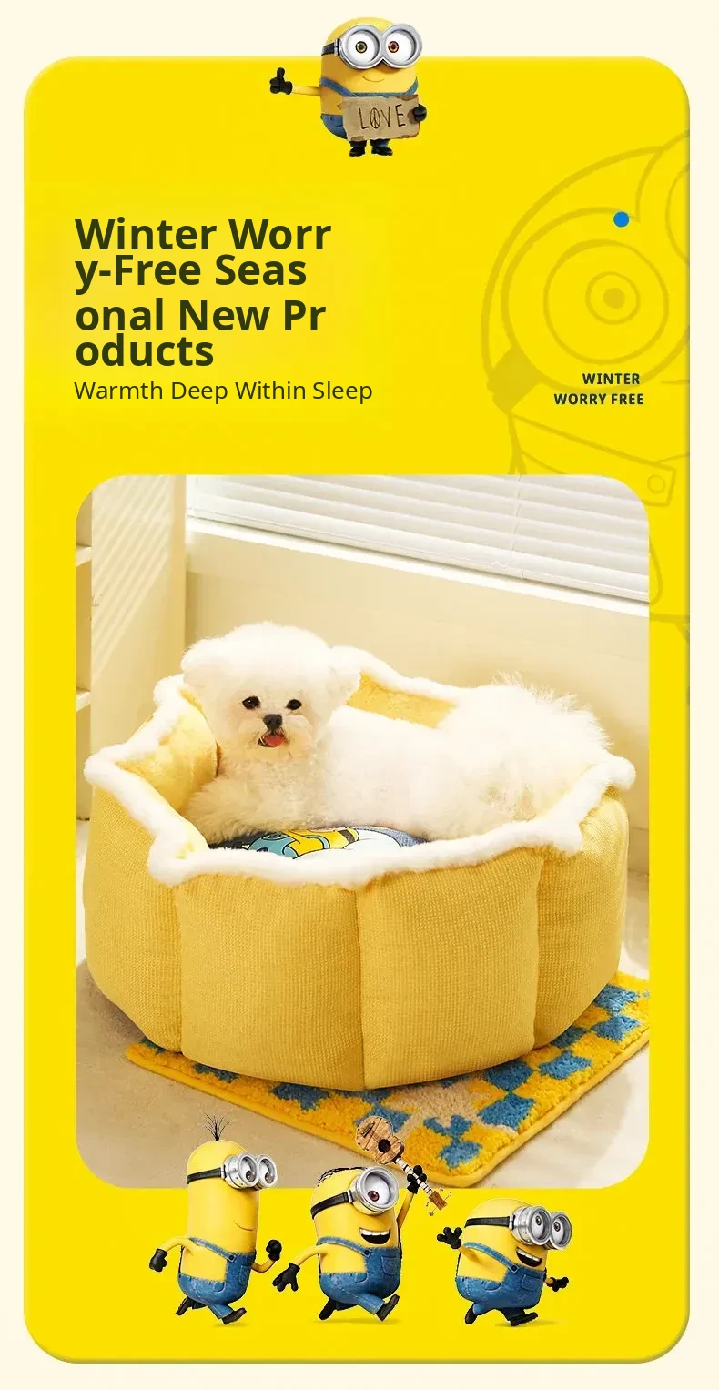 Cozy Winter Dog Bed for Small Pets - Minion-Inspired Heated Sleeping Mat for Dogs and Cats, Semi-Enclosed Design for Ultimate Comfort and Warmth