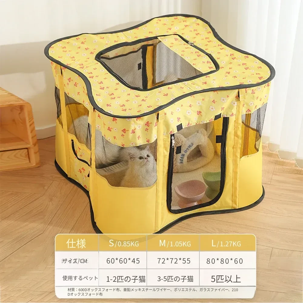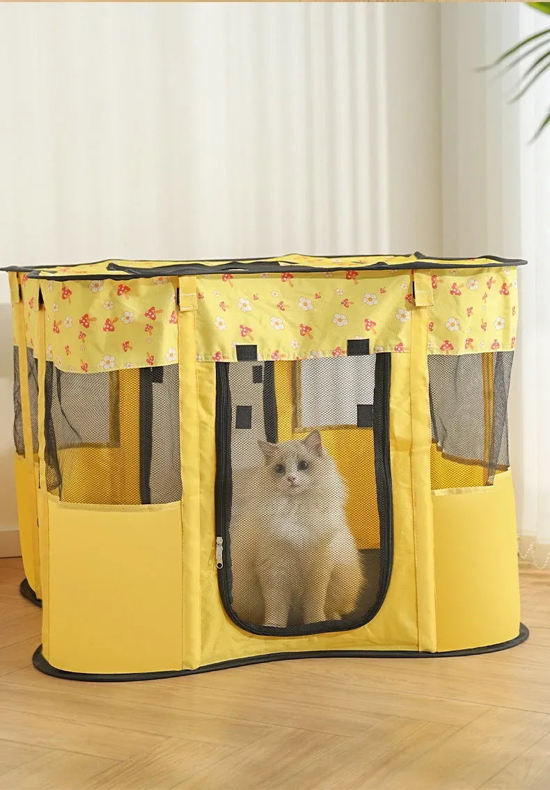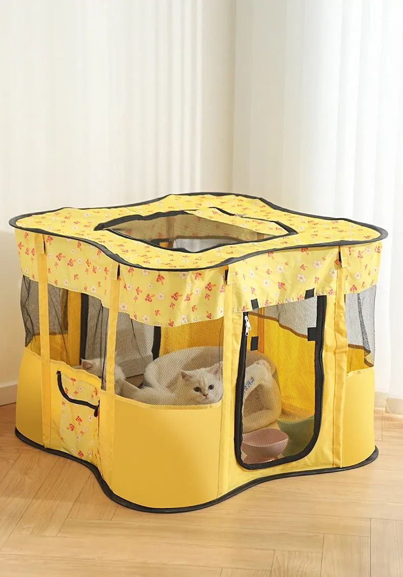 猫の出産室用猫ベッド四方囲いテント(レモンイエロー)