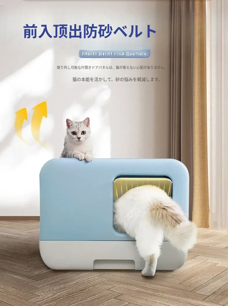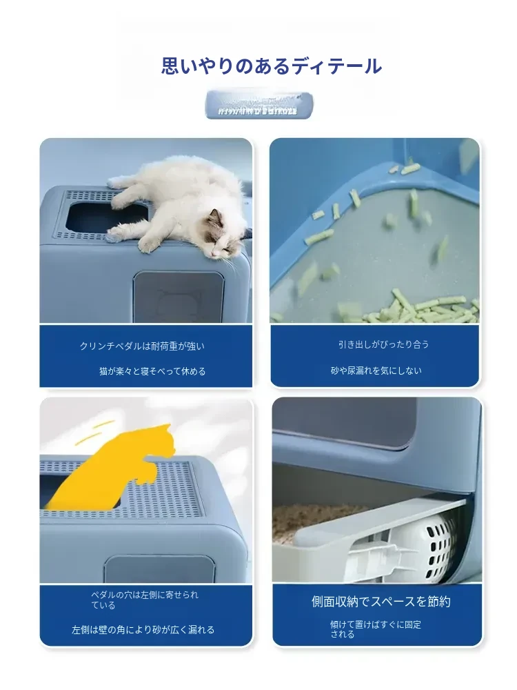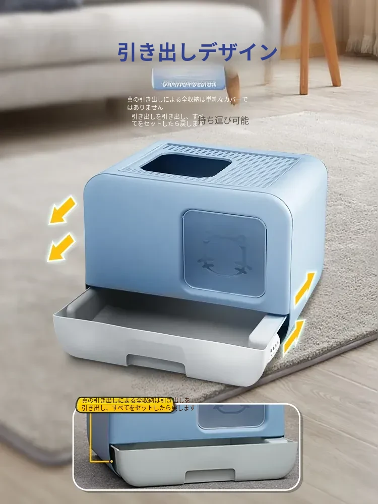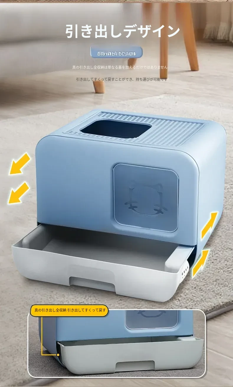 デリカート マルディブ ペット用消臭大容量トイレ - 幼い猫ちゃんに最適!引き出し付きの全半封閉式デザインで、清掃も簡単!快適なトイレ環境を提供します。