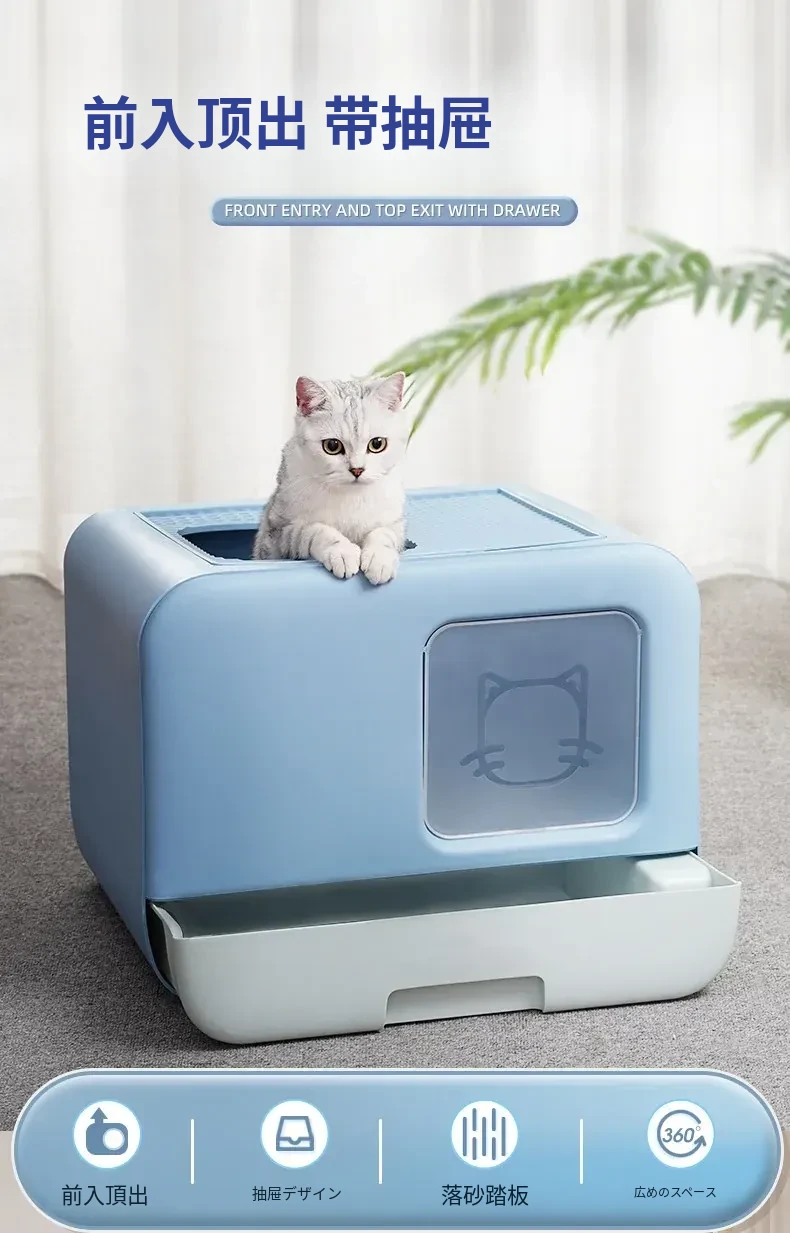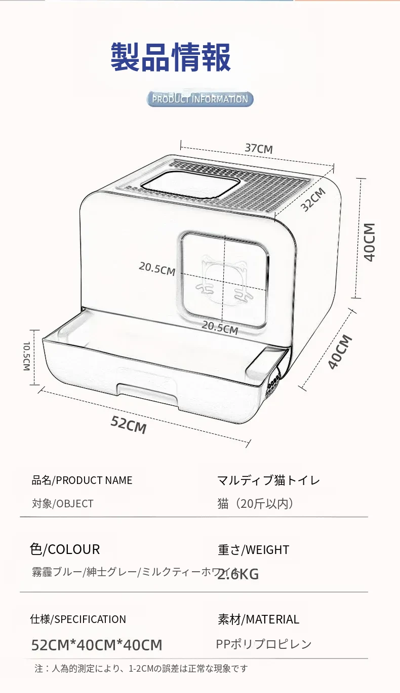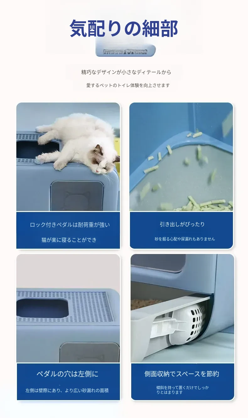 デリカート マルディブ ペット用消臭大容量トイレ - 幼い猫ちゃんに最適!引き出し付きの全半封閉式デザインで、清掃も簡単!快適なトイレ環境を提供します。