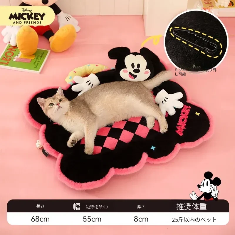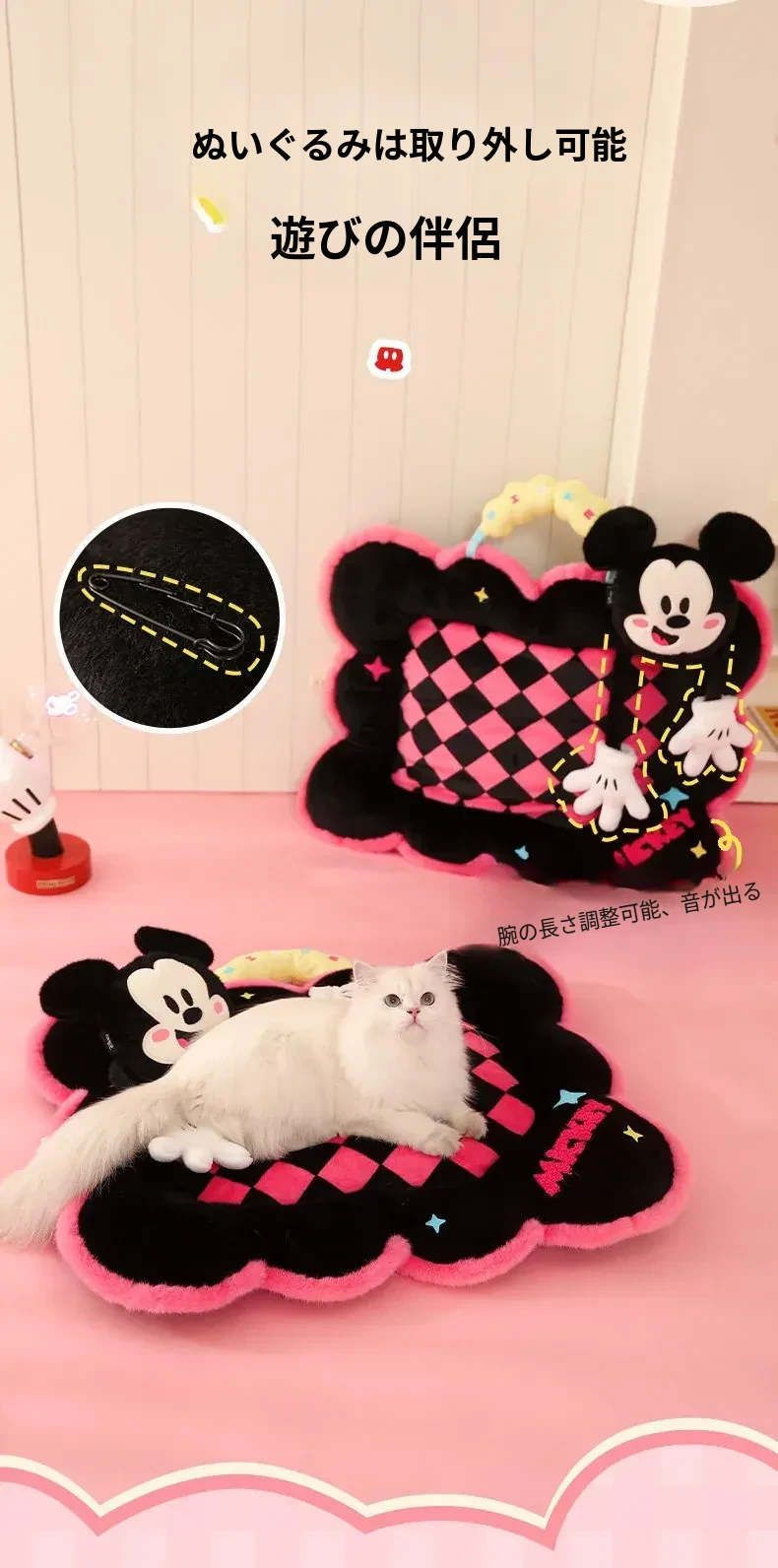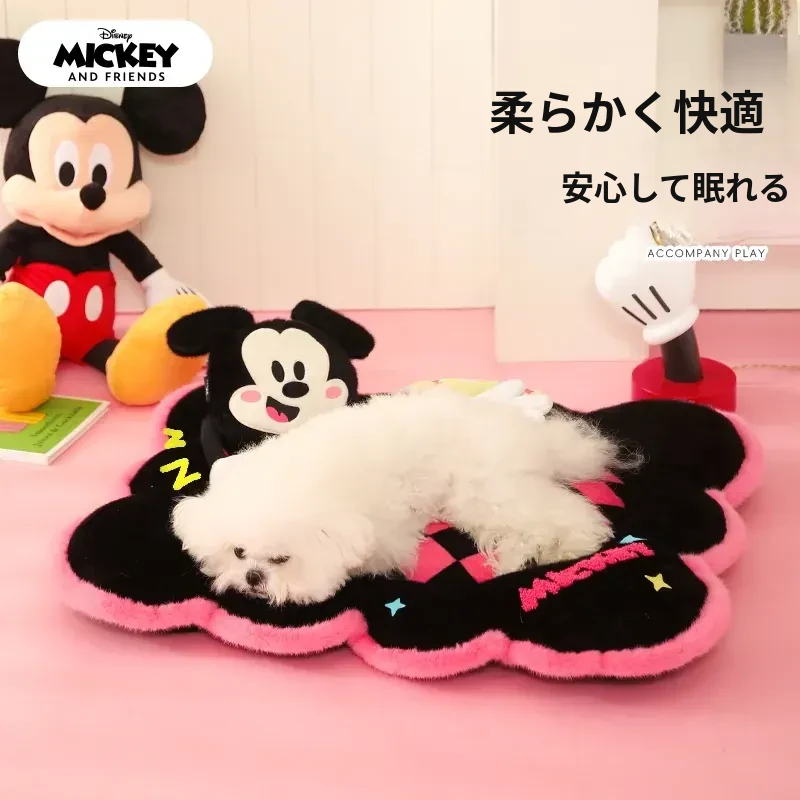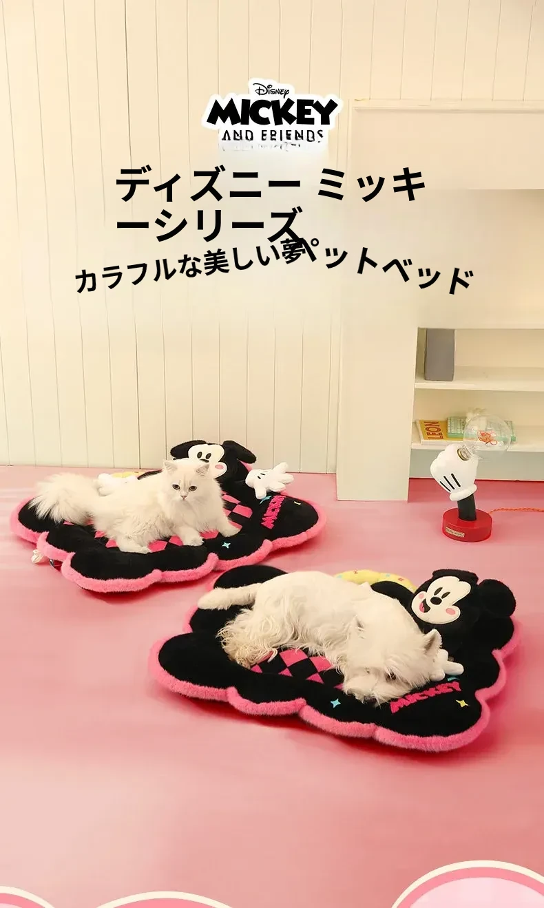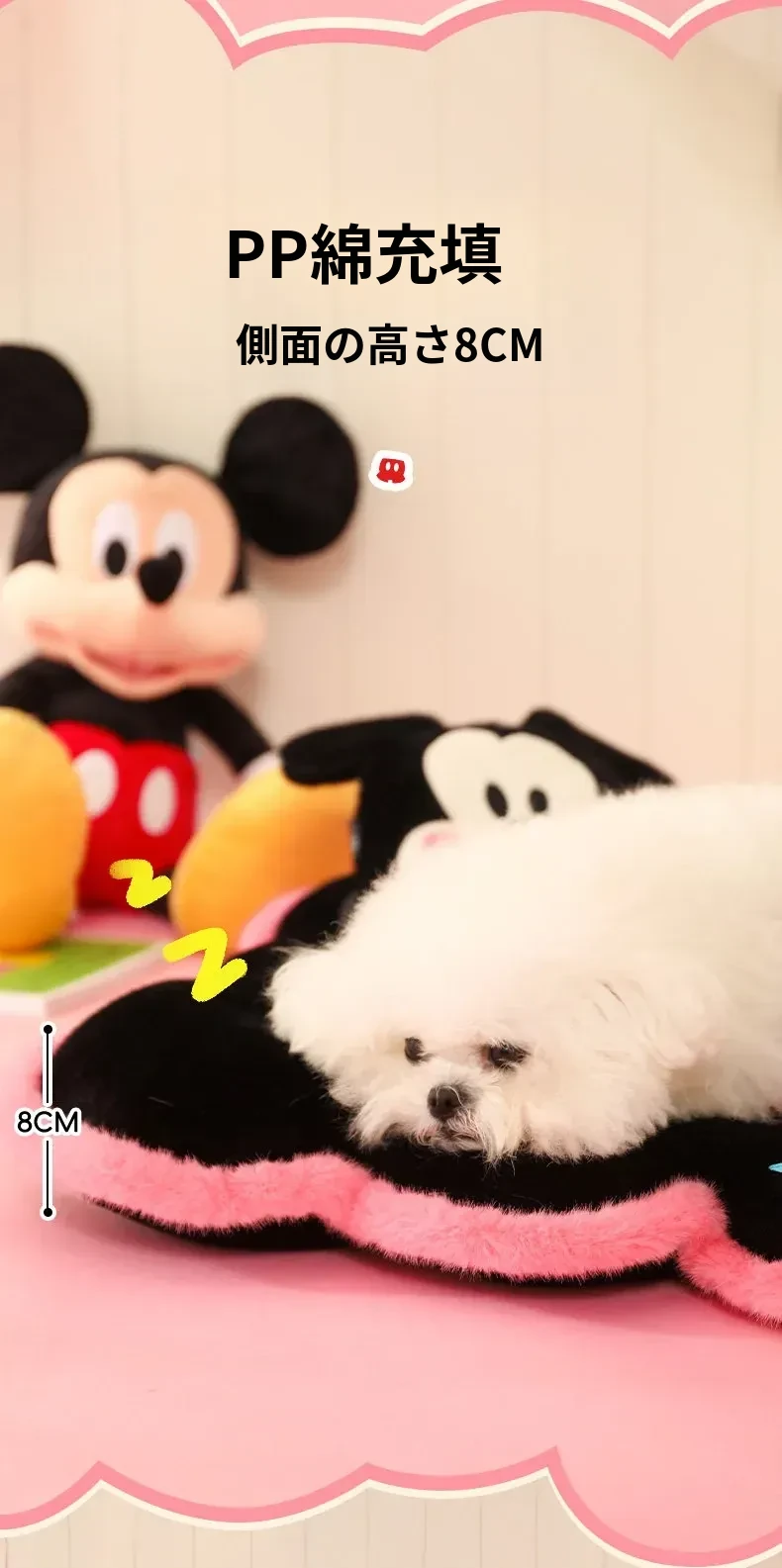ディズニーミッキーシリーズの犬猫用ペットベッド - 冬の暖かさを提供する快適な寝床、あなたのペットに特別なひとときを!