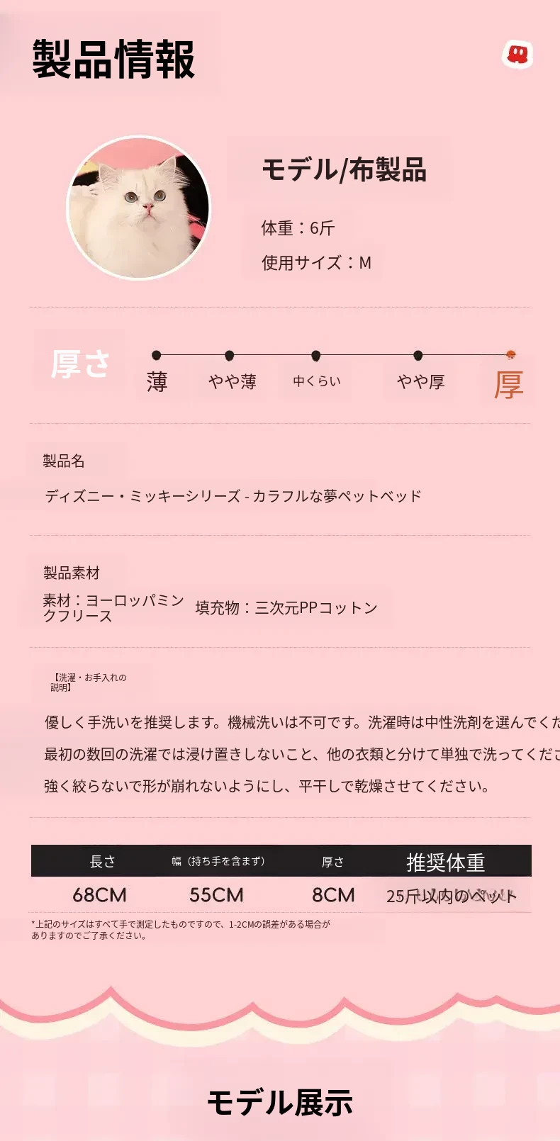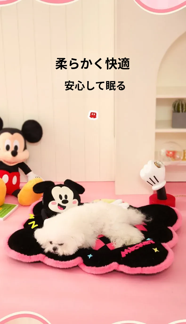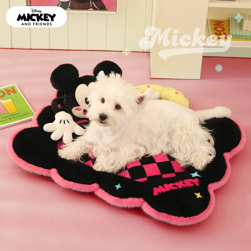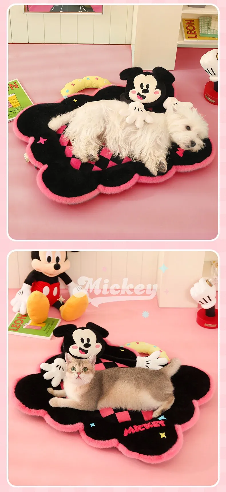 ディズニーミッキーシリーズの犬猫用ペットベッド - 冬の暖かさを提供する快適な寝床、あなたのペットに特別なひとときを!