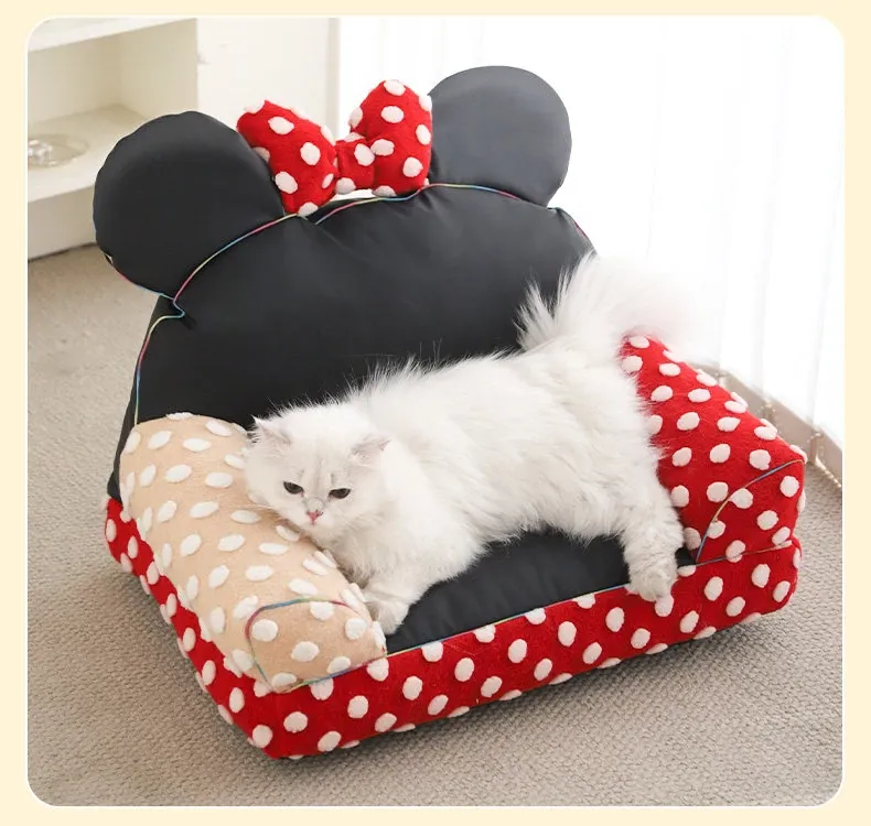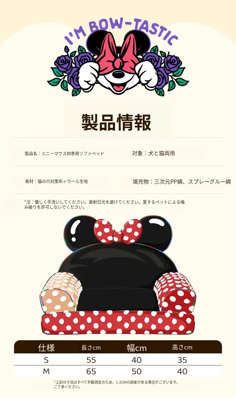 ディズニーミッキーシリーズ ミニーソファー 犬用・洗える夏用クッション 小型犬・猫用ベッド 四季通用!可愛いデザインで愛犬・愛猫も大満足!