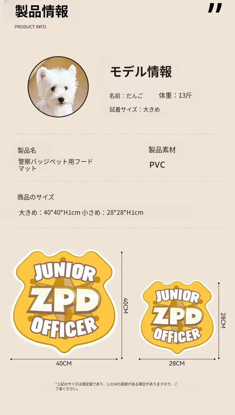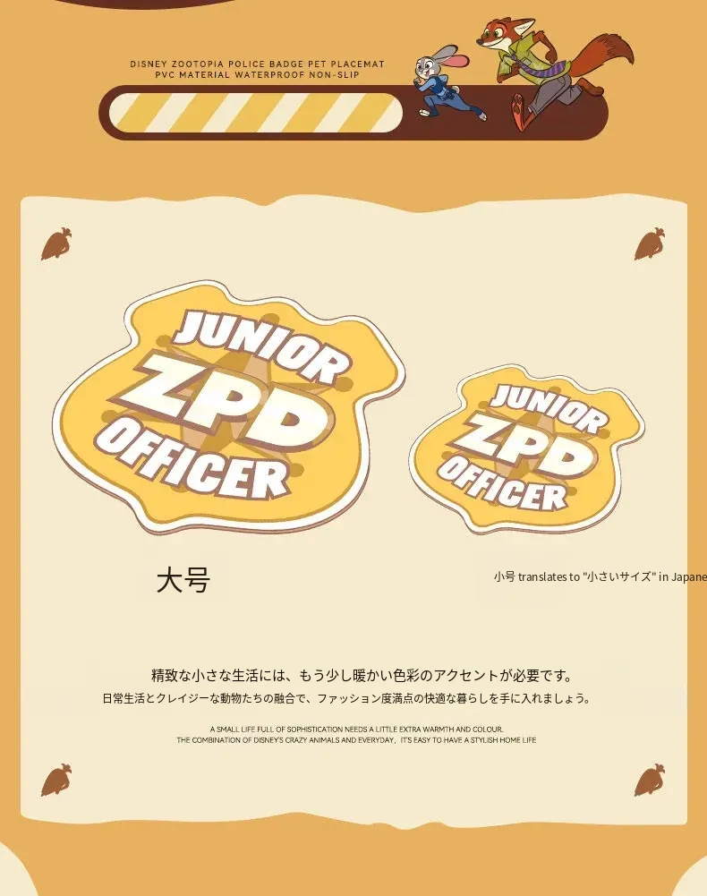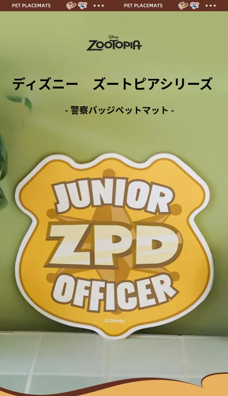 ディズニー・ズートピア警察バッジデザインのペット用食事マット - 滑り止め&こぼれ防止!犬や猫の食事を快適にする防水マットで、可愛さと実用性を兼ね備えています。
