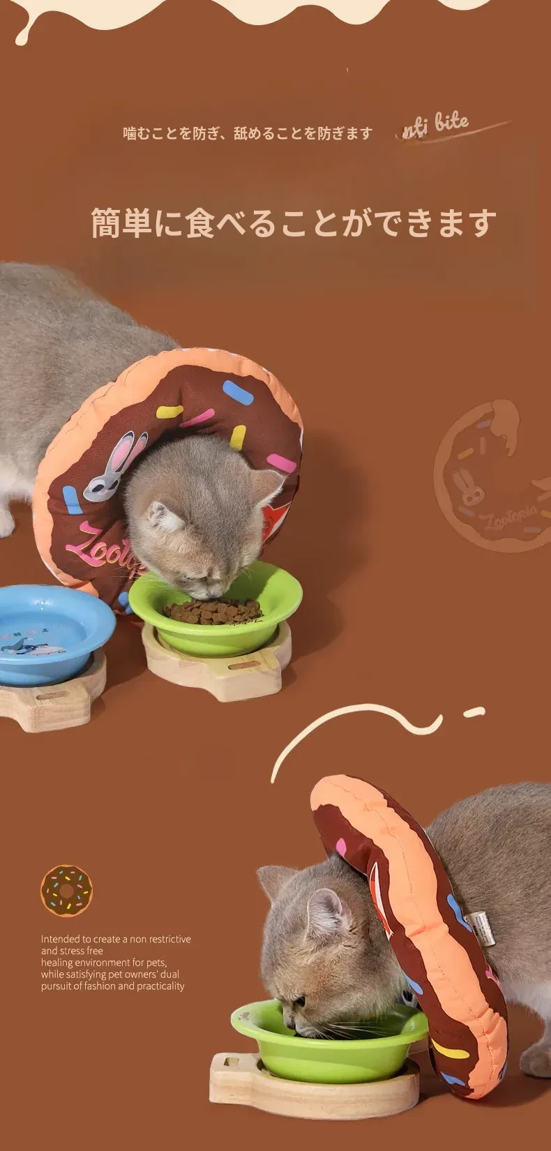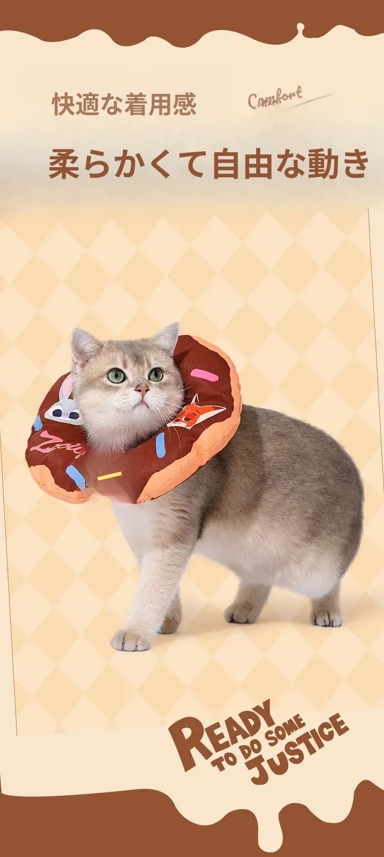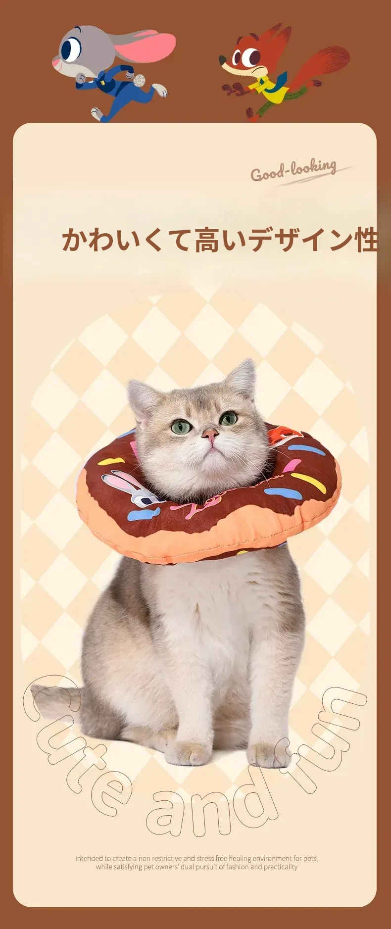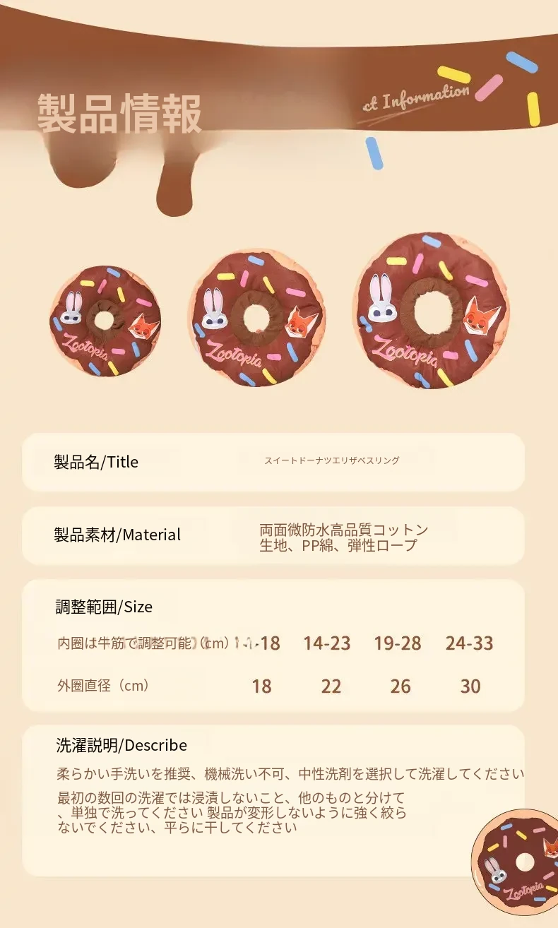 ディズニー・ズートピア キャットエリザベスカラー 抗噛み・舐め防止 猫用ドーナツ型首輪で愛猫を守る!快適なデザインで安心のお手入れを実現!