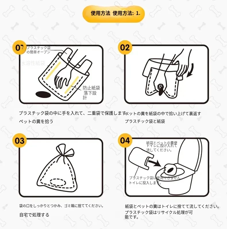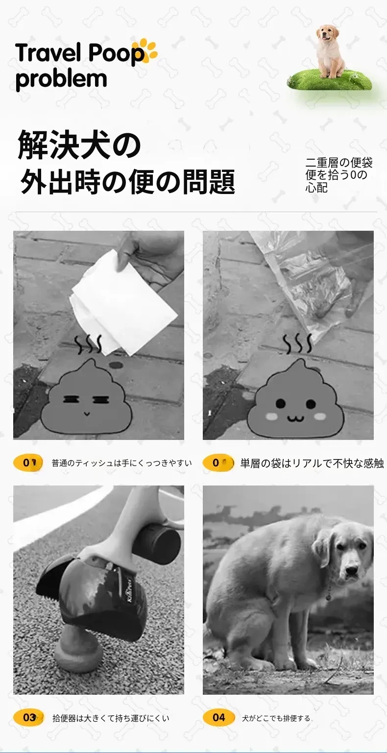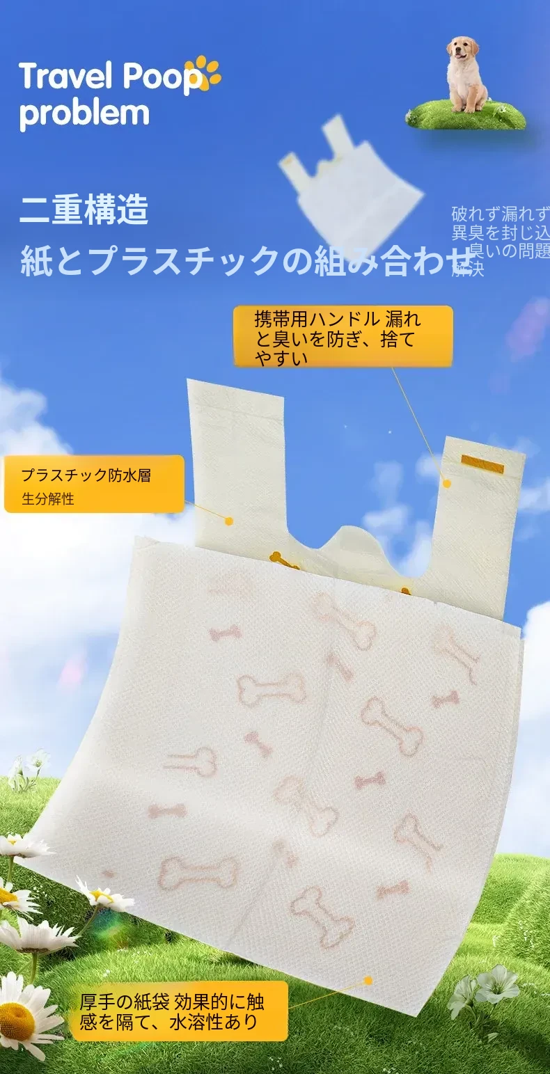 愛犬のお散歩に最適!使い捨てのペット用ゴミ袋 - 便利な犬のうんち拾い袋で、清潔にお散歩を楽しもう!臭いを防ぎ、手間いらずの簡単清掃。大切な家族のために、これがあれば安心!