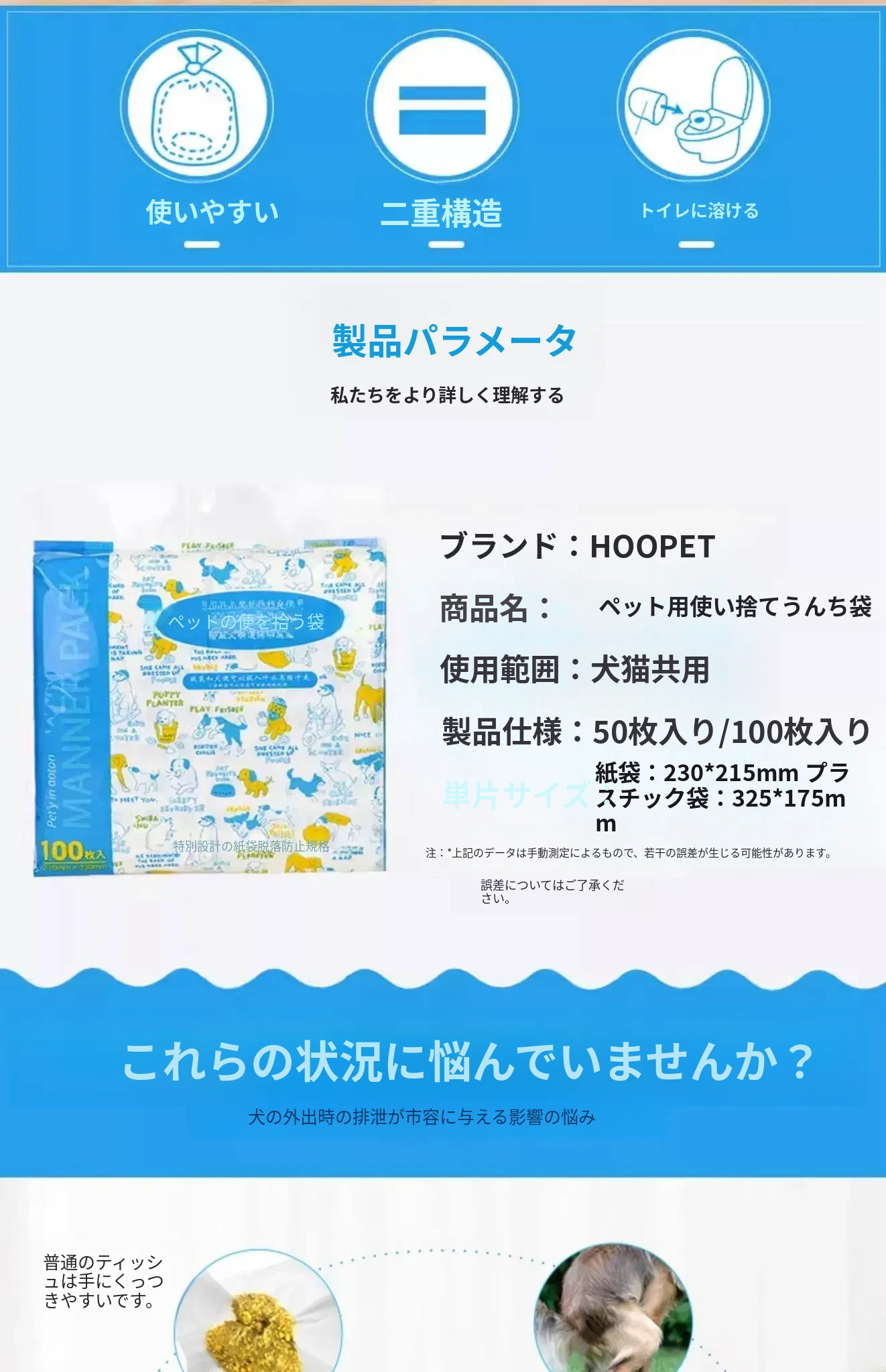 犬用ペット用うんち袋・便利な排泄物キャッチャー!散歩中の愛犬のお世話を簡単に!清潔で手間いらず、愛犬との楽しい時間を邪魔しません。おしゃれで機能的な必需品!