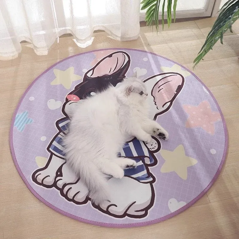 ペットマット猫砂マット - パープルブルドッグデザイン(80*80cm)
