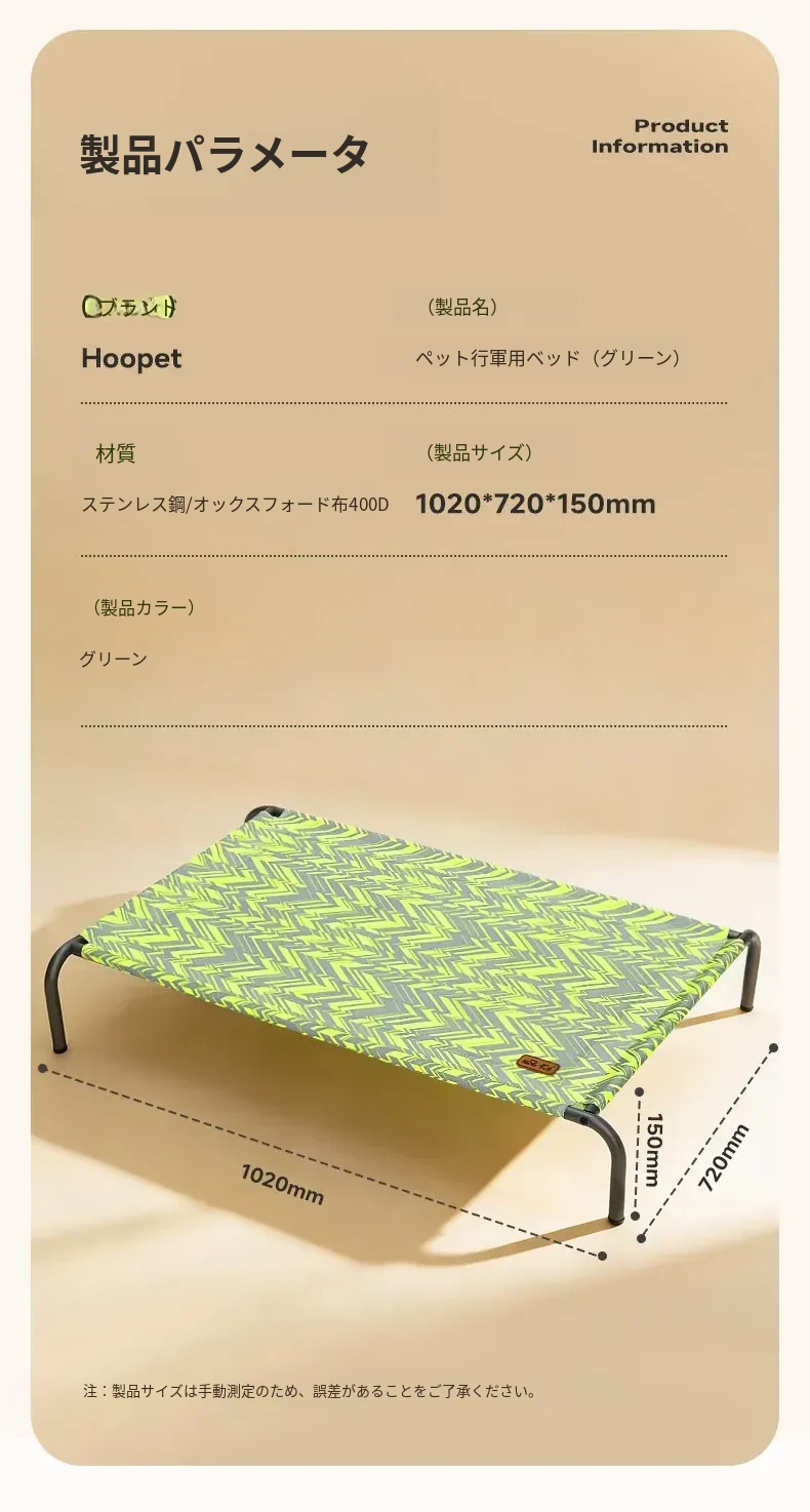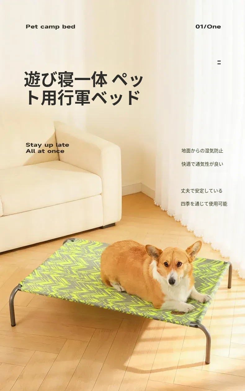 犬用行軍ベッド|四季対応・大型犬向け・ゴールデンレトリバーにも最適|夏の湿気対策・地面から離れた快適な寝床|ペット用品の新定番!