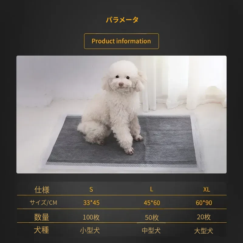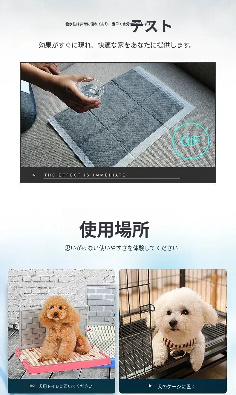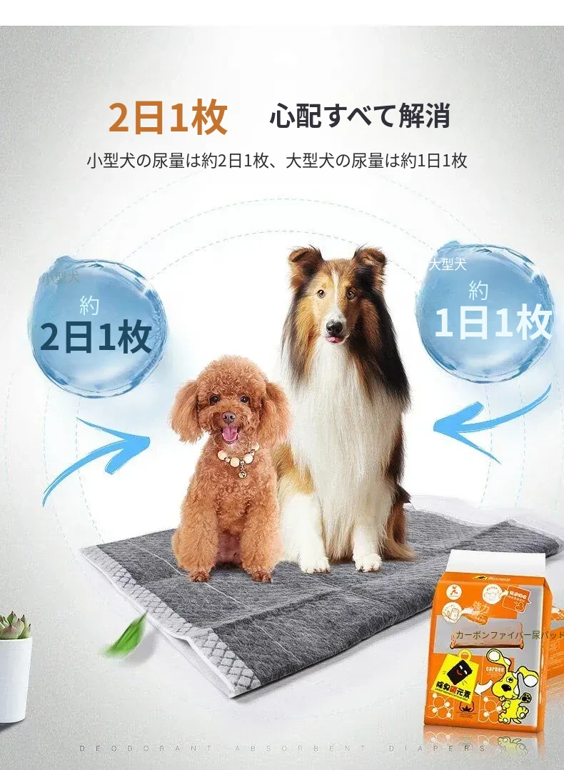 ペット用犬猫吸水性使い捨て炭入りおしっこマット・尿パッド・厚手消臭パッドで快適な排泄タイムを実現!安心の吸水力で清潔をキープ!