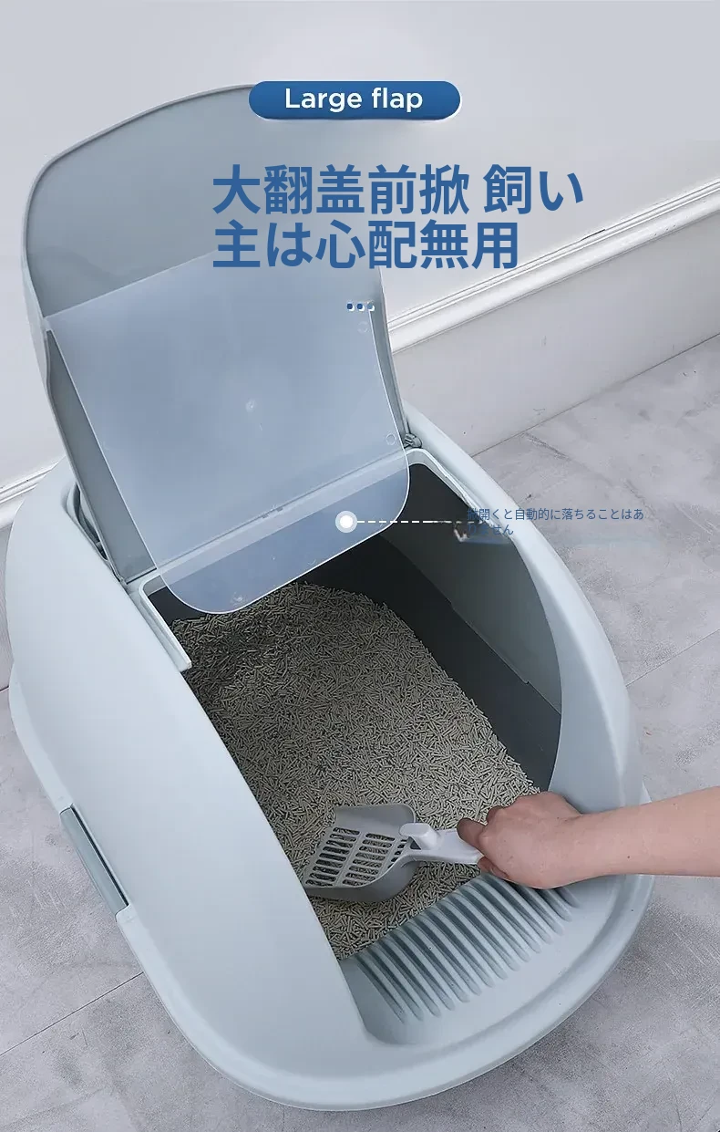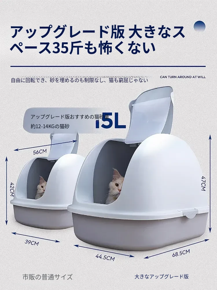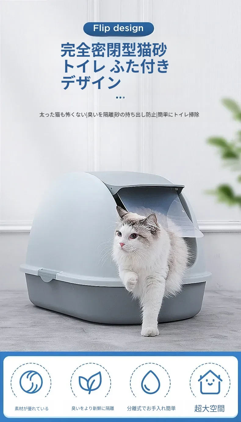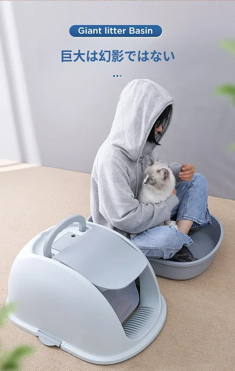 超大型完全密閉型猫トイレ|メインクーンに最適な防水設計・消臭機能付き!猫砂が飛び散らず、お部屋を清潔に保つための必需品です。