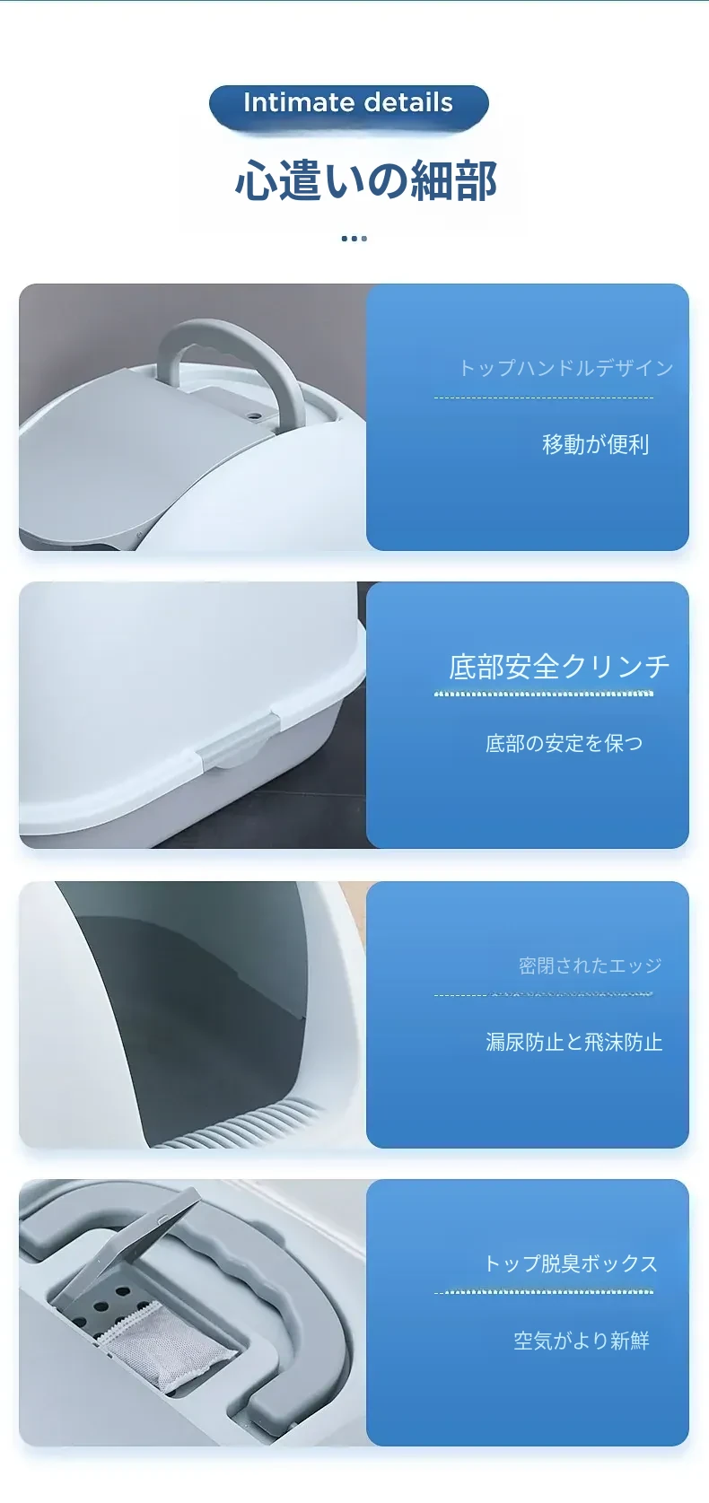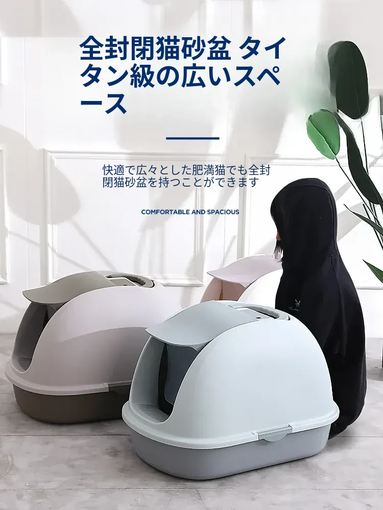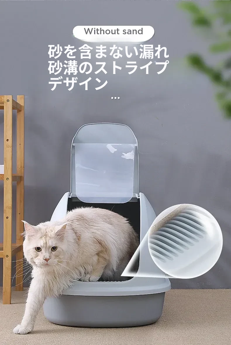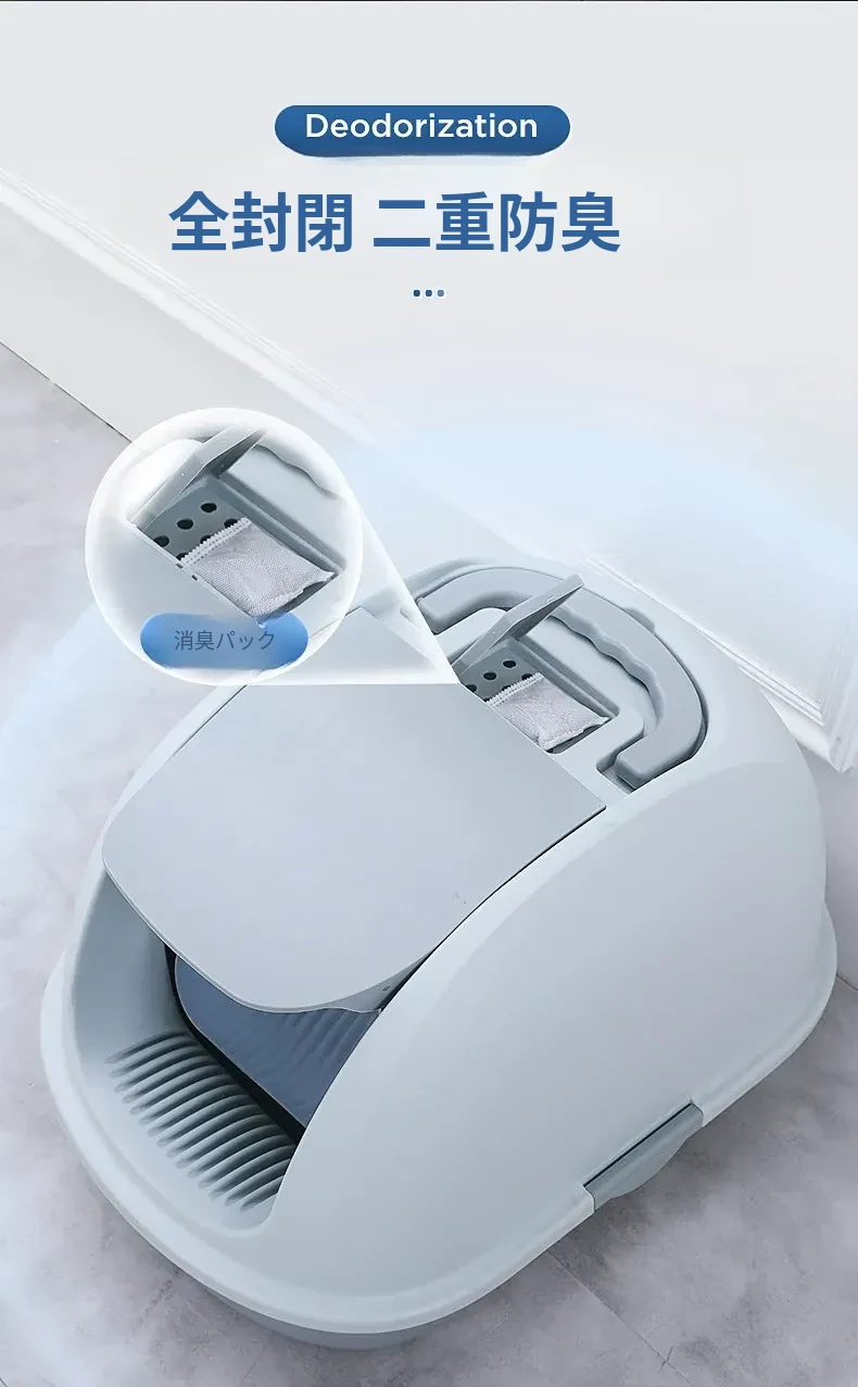 超大型完全密閉型猫トイレ|メインクーンに最適な防水設計・消臭機能付き!猫砂が飛び散らず、お部屋を清潔に保つための必需品です。