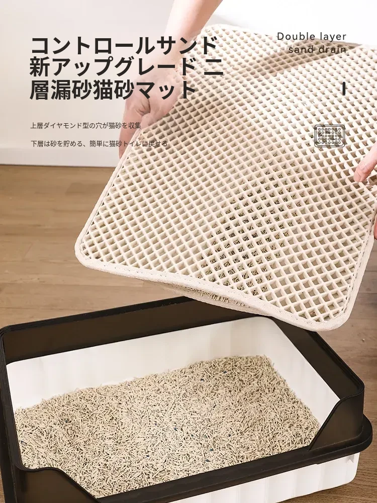 超大型ペット用2層キャットトイレマット|防水・防止飛び散り|フィルター付きで砂の飛び出しを防ぐ|洗える便利なキャットアイテム!