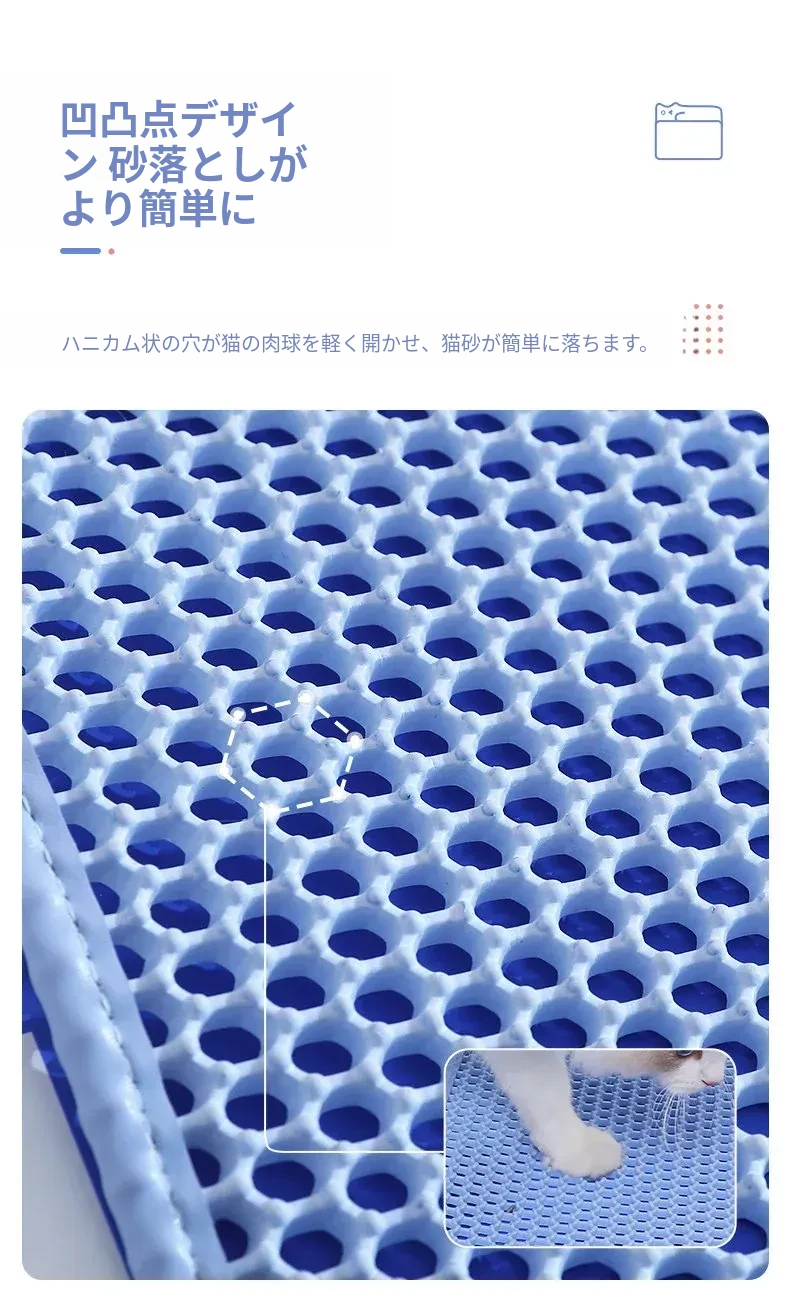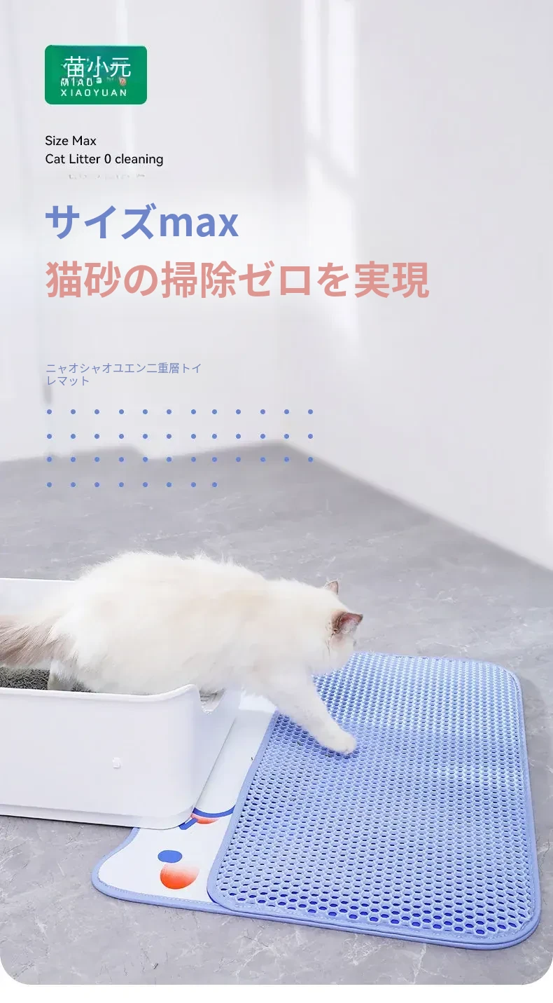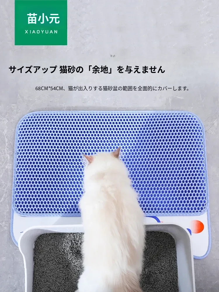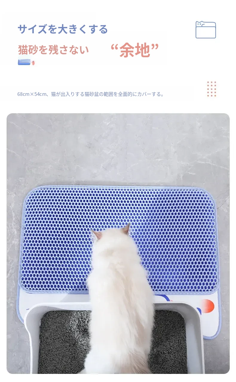 超大サイズのペット用キャットトイレマット|2層構造で砂が飛び散らず、持ち出し防止機能付き|フィルター&漏れ防止設計|洗える便利なアイテムで、愛猫の快適な生活をサポート!
