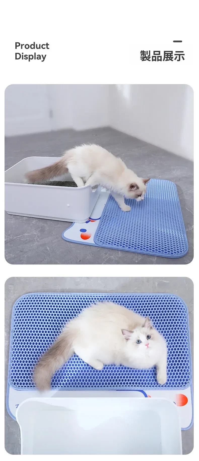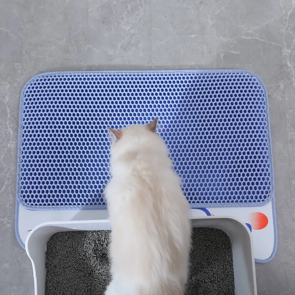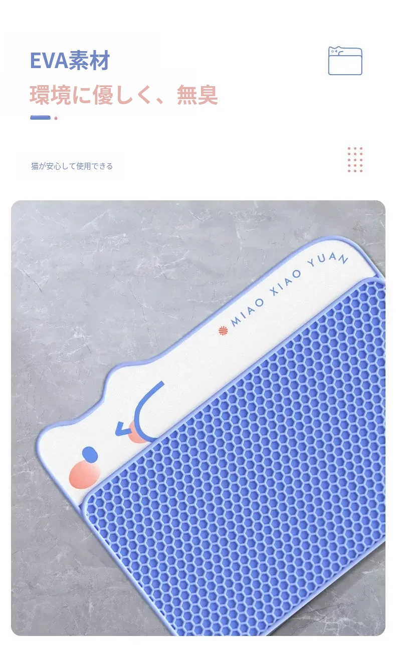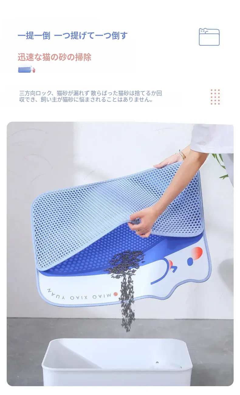 超大サイズのペット用キャットトイレマット|2層構造で砂が飛び散らず、持ち出し防止機能付き|フィルター&漏れ防止設計|洗える便利なアイテムで、愛猫の快適な生活をサポート!