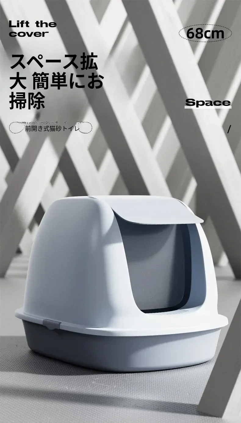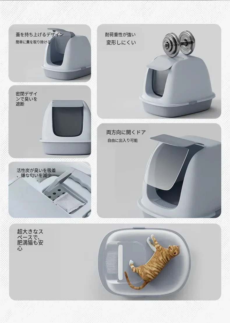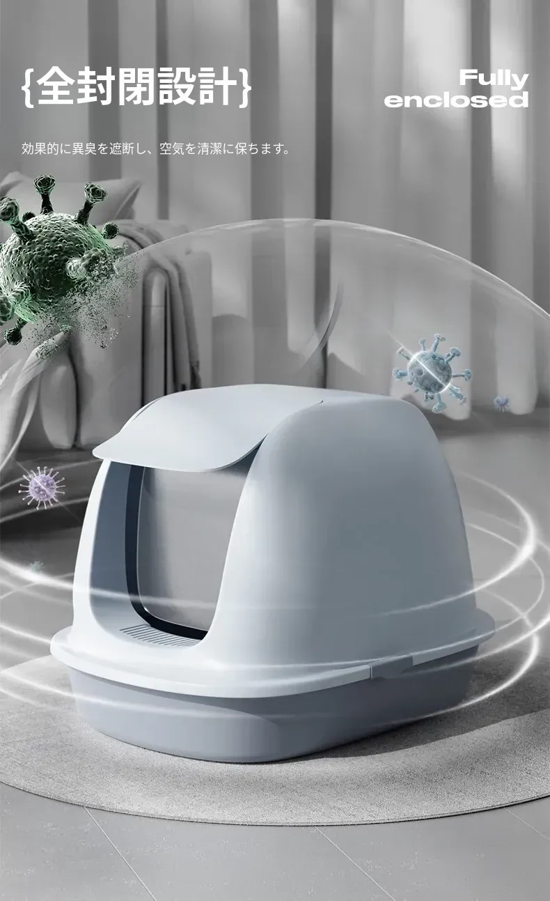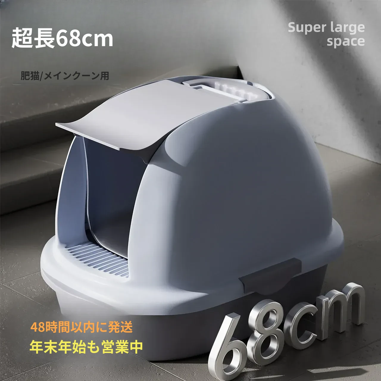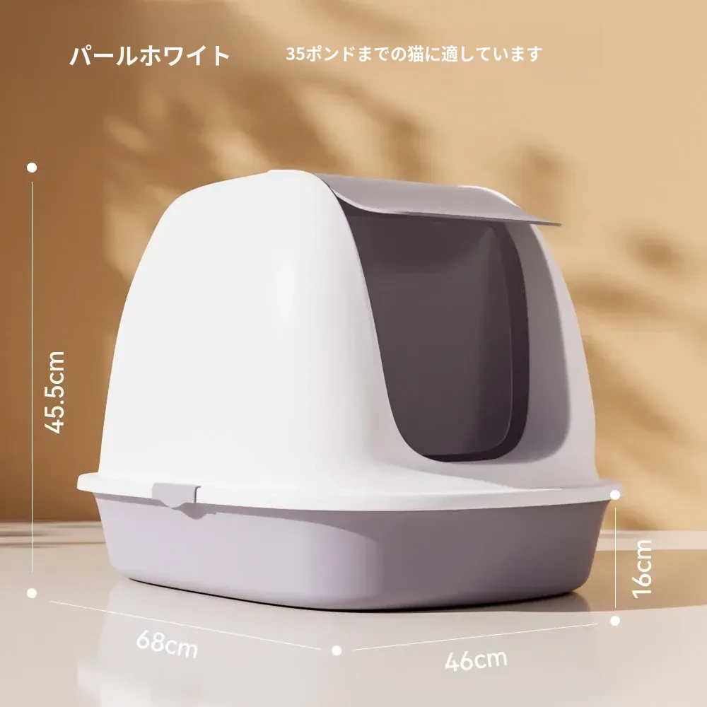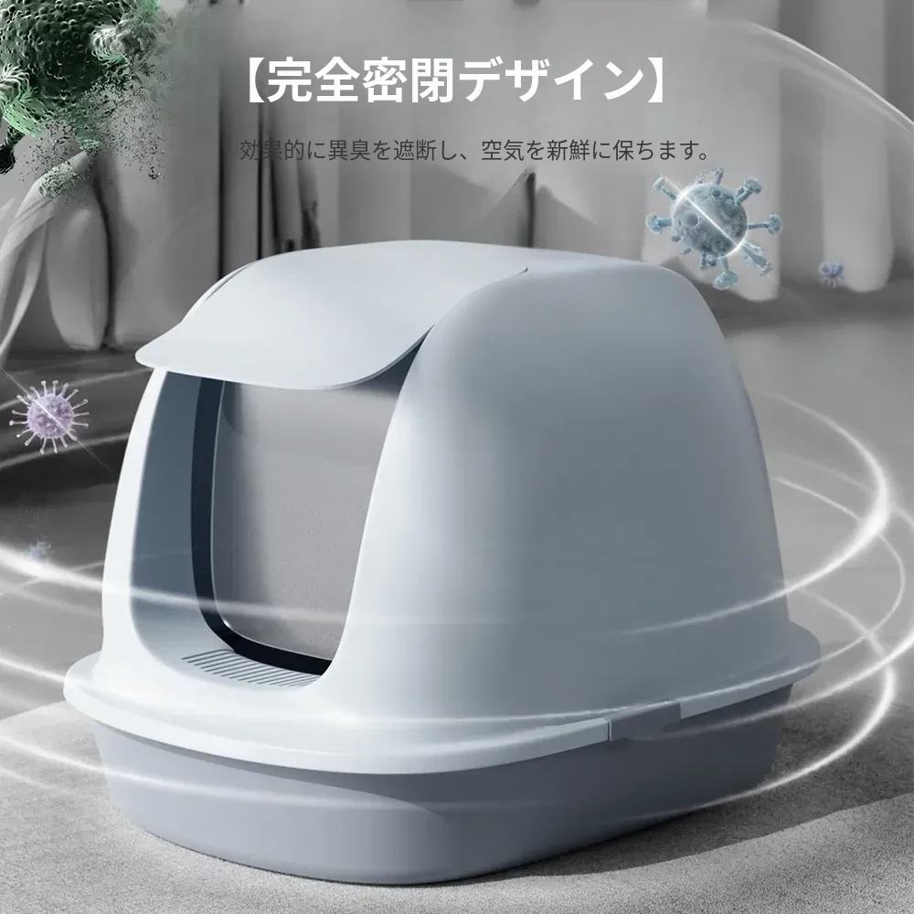 超大型ネコトイレ - 漏れ防止&臭い対策!全封閉式デザインで安心。前半開きでお手入れ簡単、ペットの快適空間を実現。特大サイズで大満足のネコちゃんにぴったり!