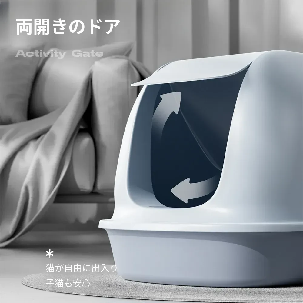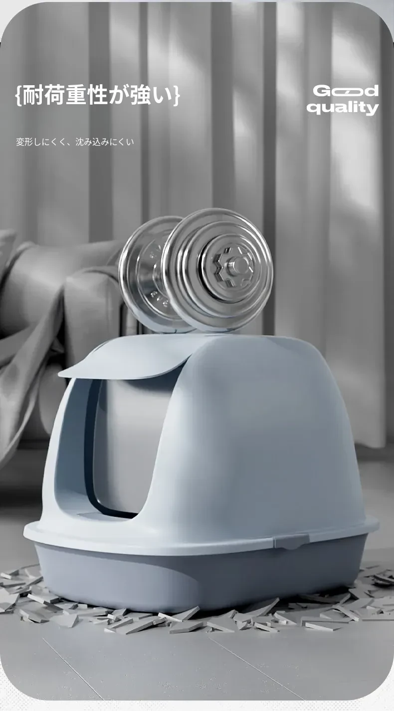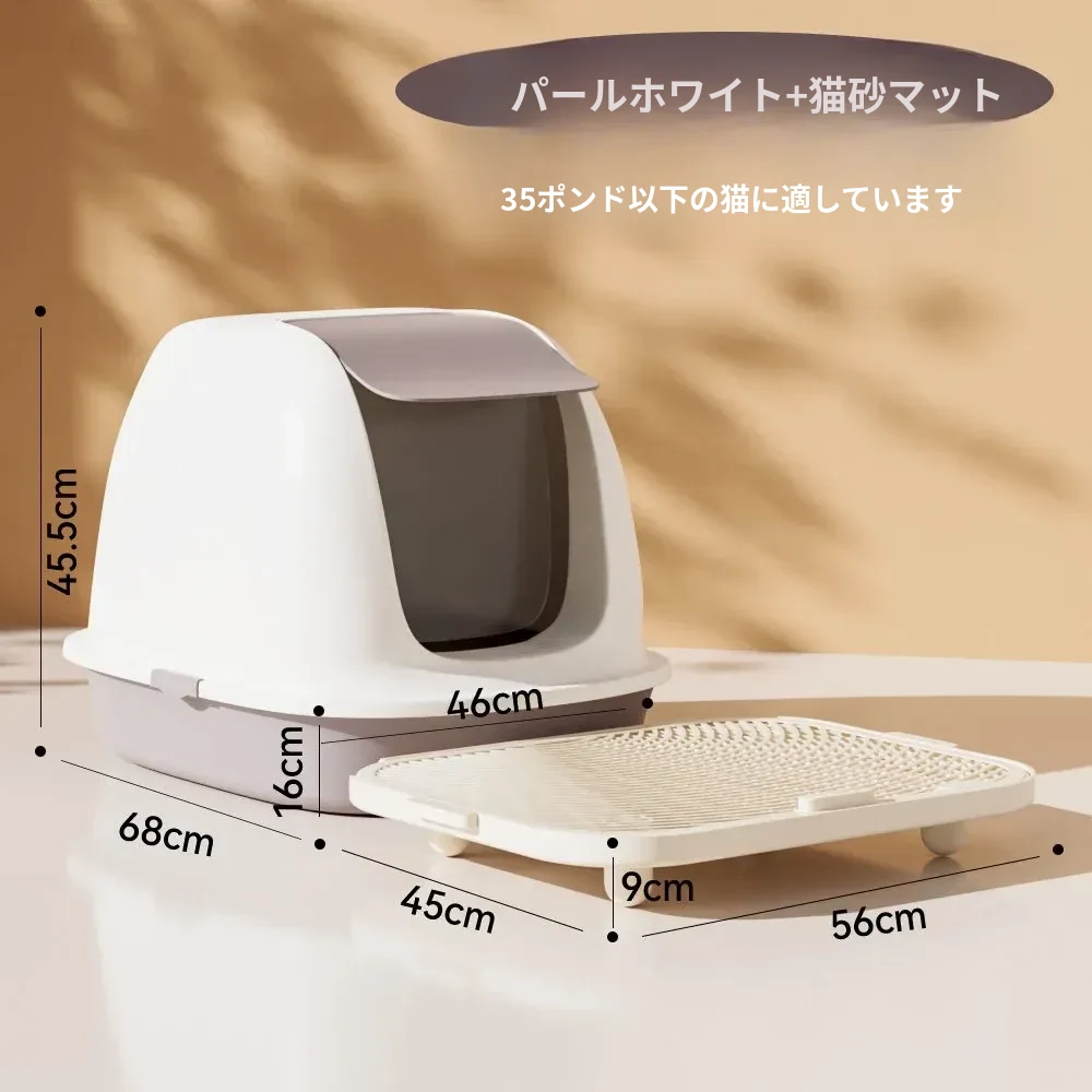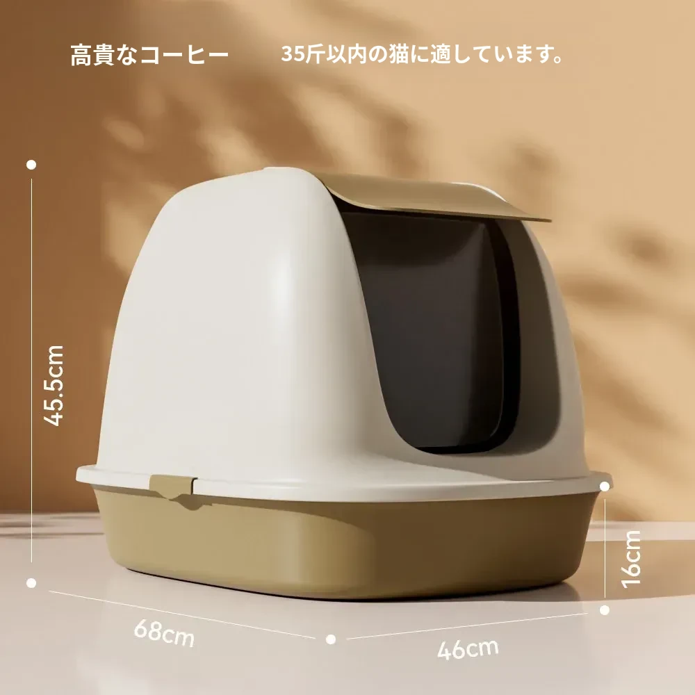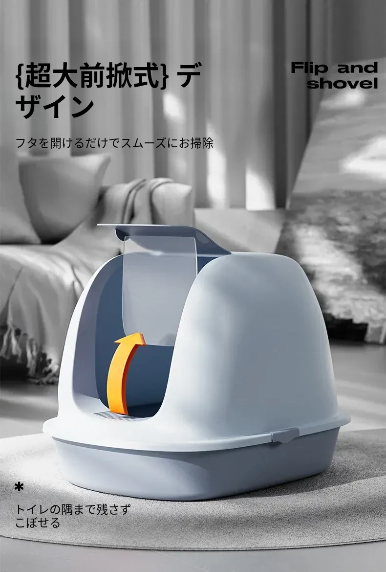 超大型ネコトイレ - 漏れ防止&臭い対策!全封閉式デザインで安心。前半開きでお手入れ簡単、ペットの快適空間を実現。特大サイズで大満足のネコちゃんにぴったり!