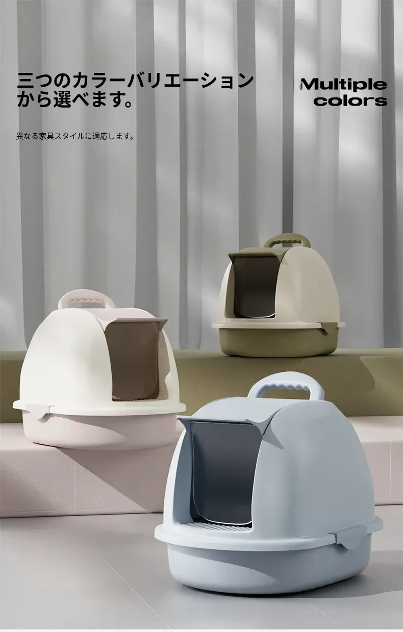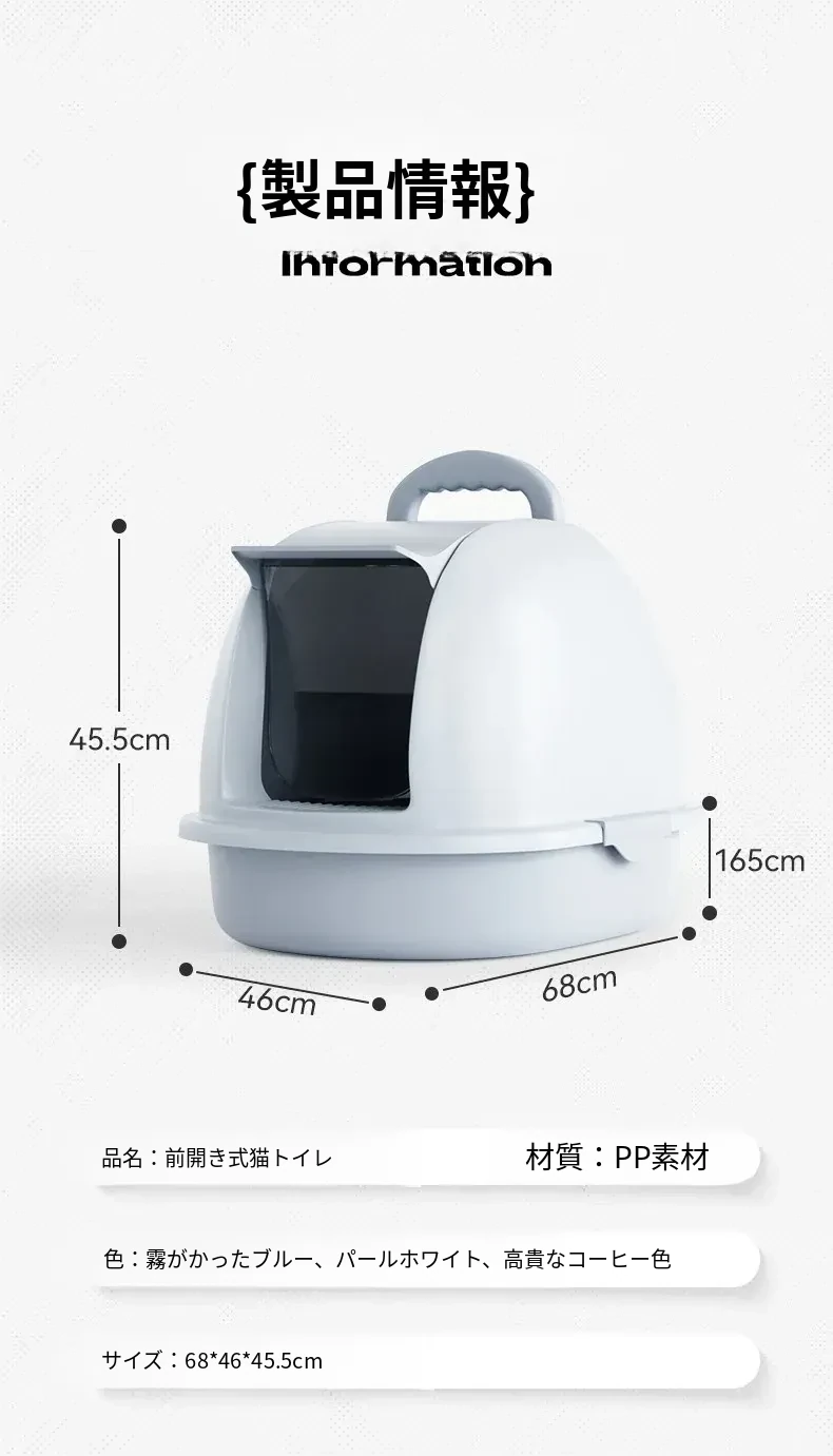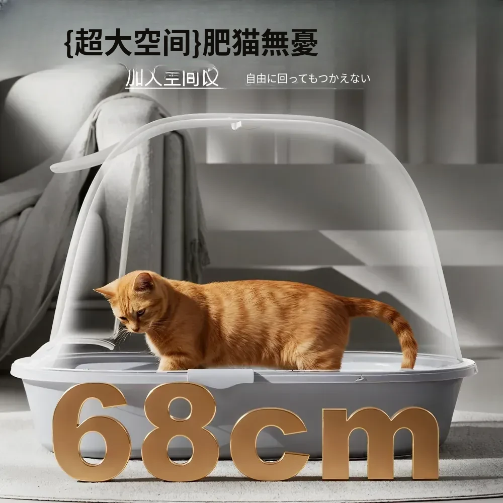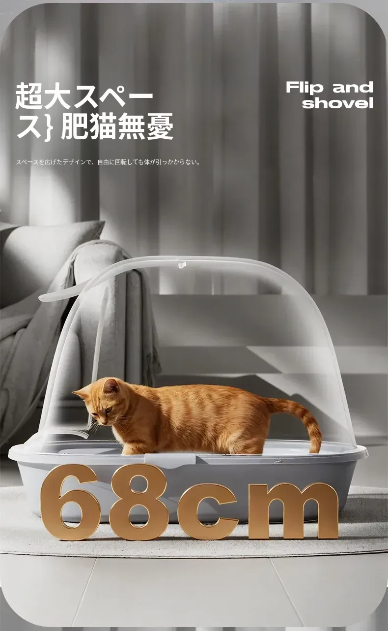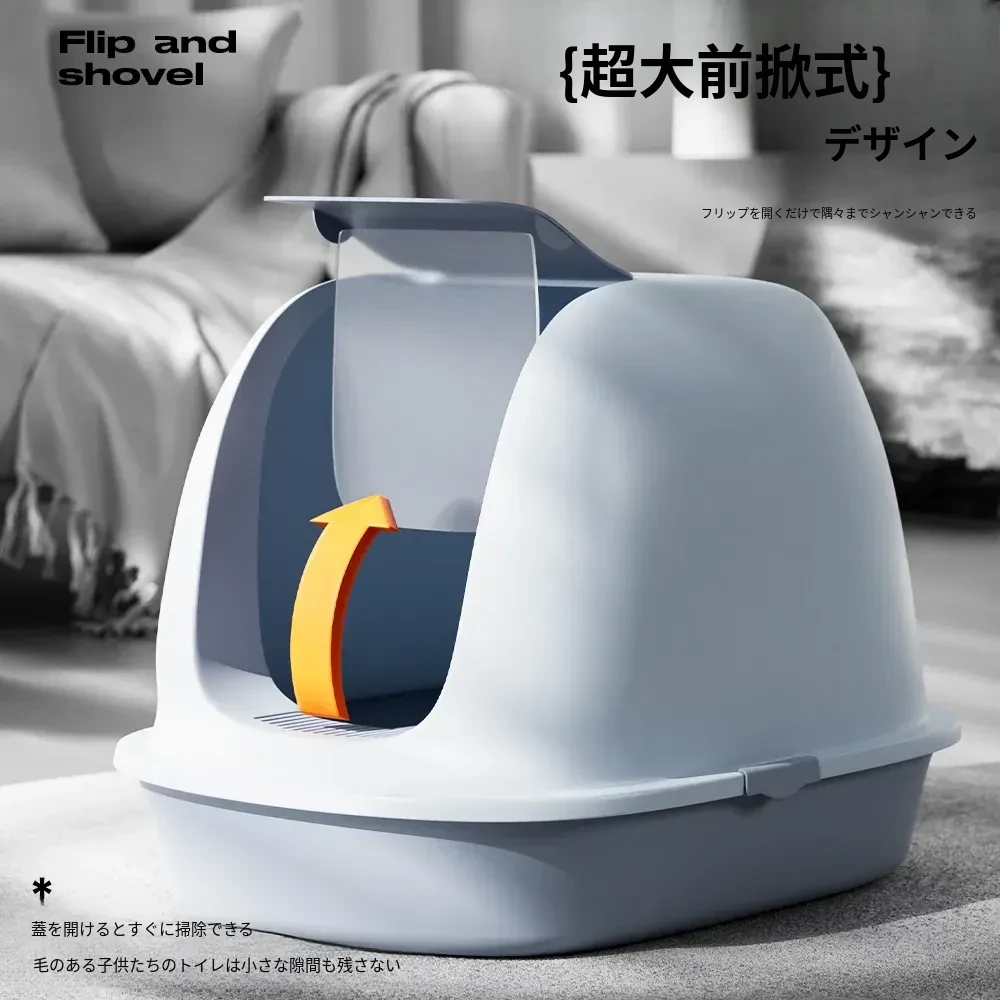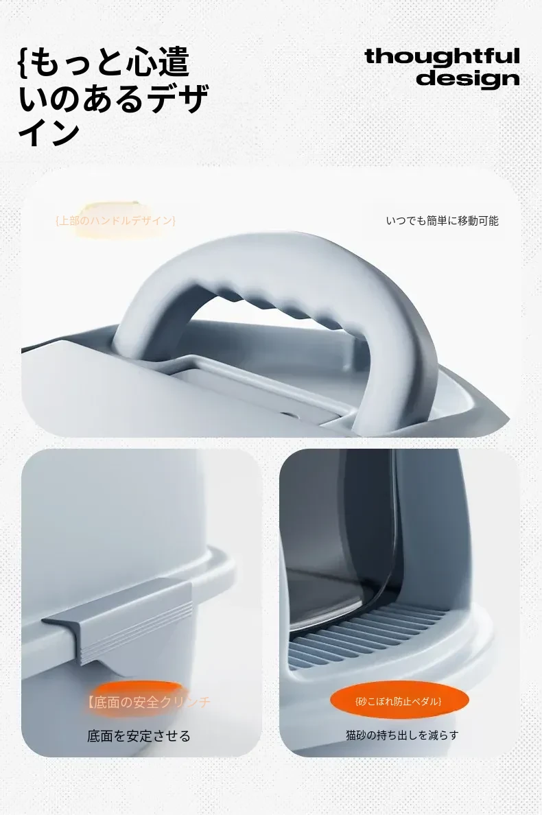 超大型ネコトイレ - 漏れ防止&臭い対策!全封閉式デザインで安心。前半開きでお手入れ簡単、ペットの快適空間を実現。特大サイズで大満足のネコちゃんにぴったり!