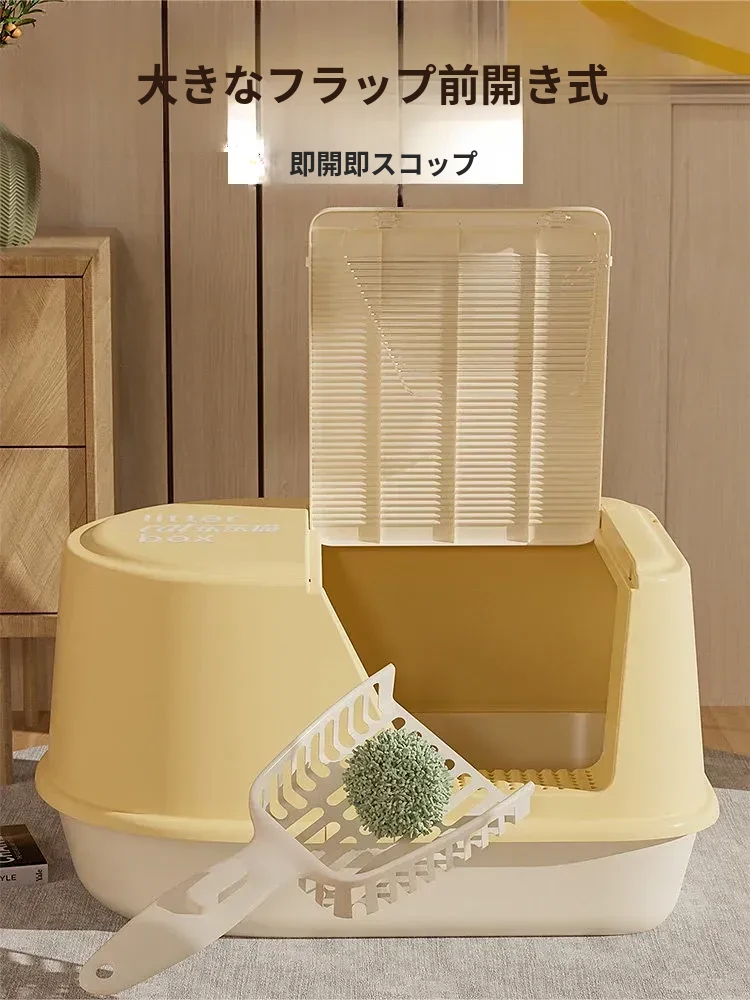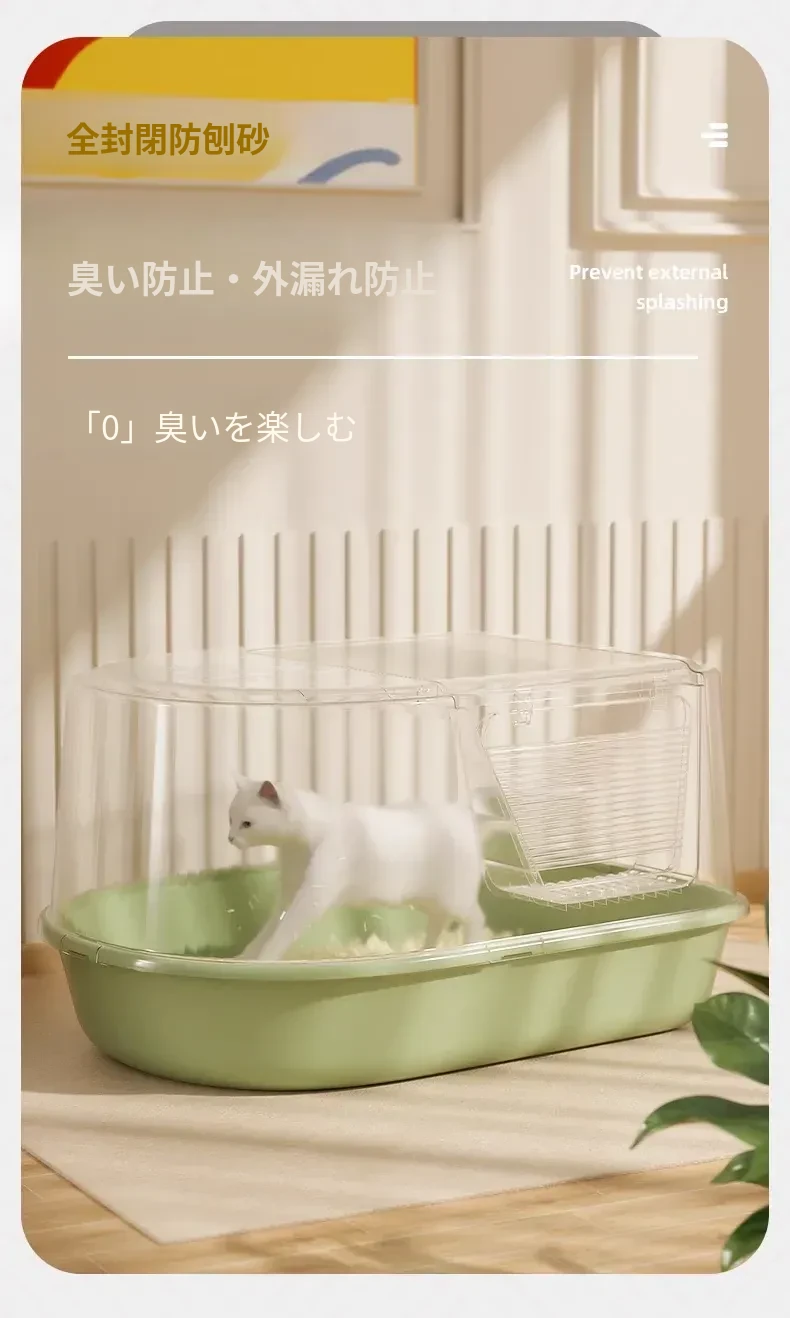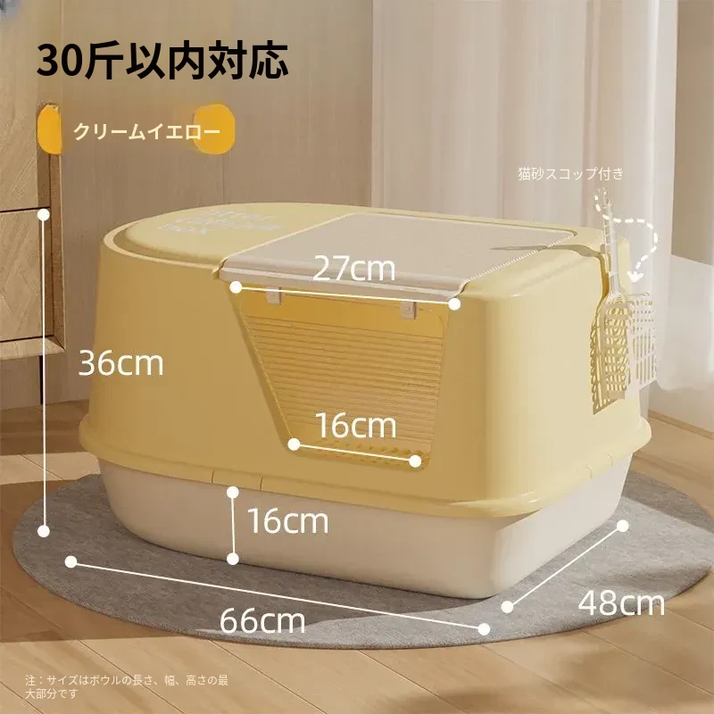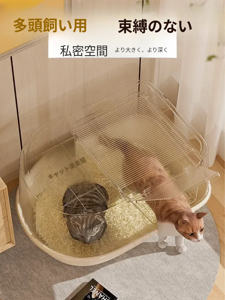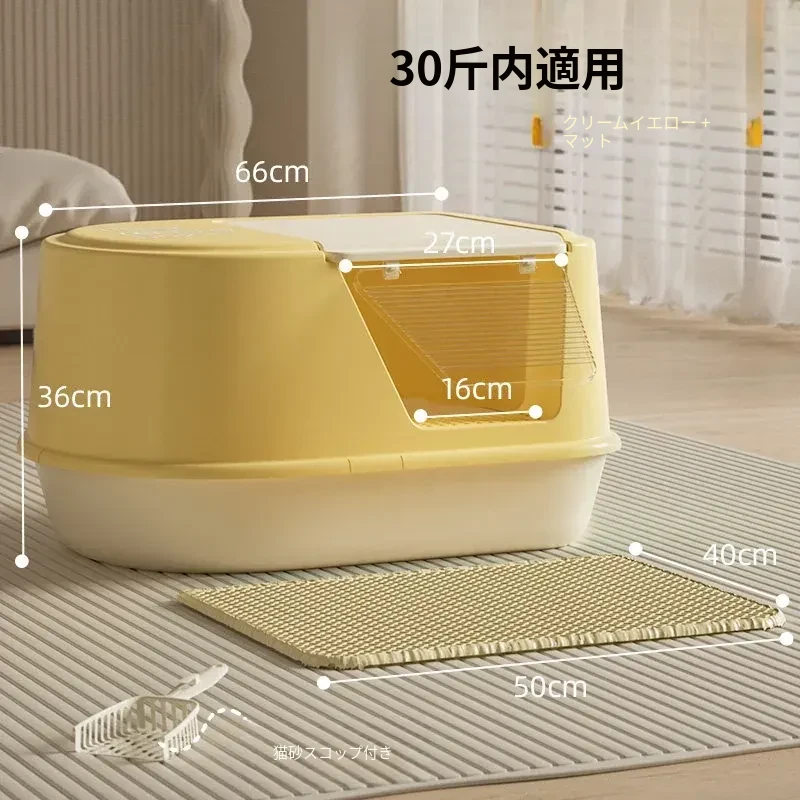 超大型ハーフクローズドキャットトイレ - ラグドール猫にも最適!防水マット付きで飛び散り防止、臭いをシャットアウト!子猫にも安心なトイレ用品。
