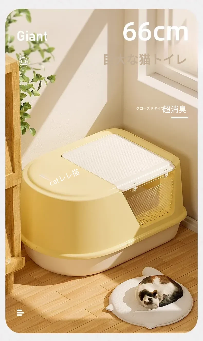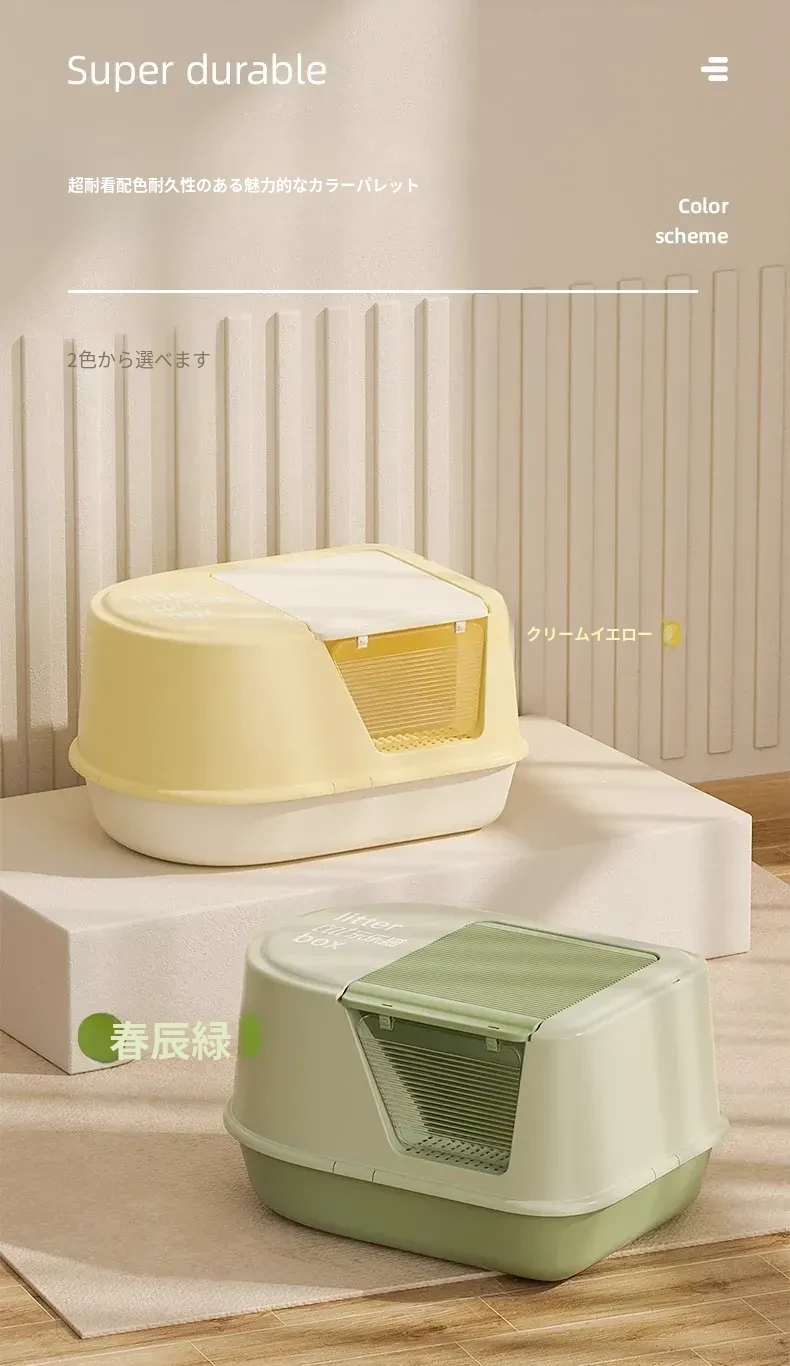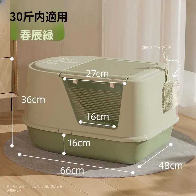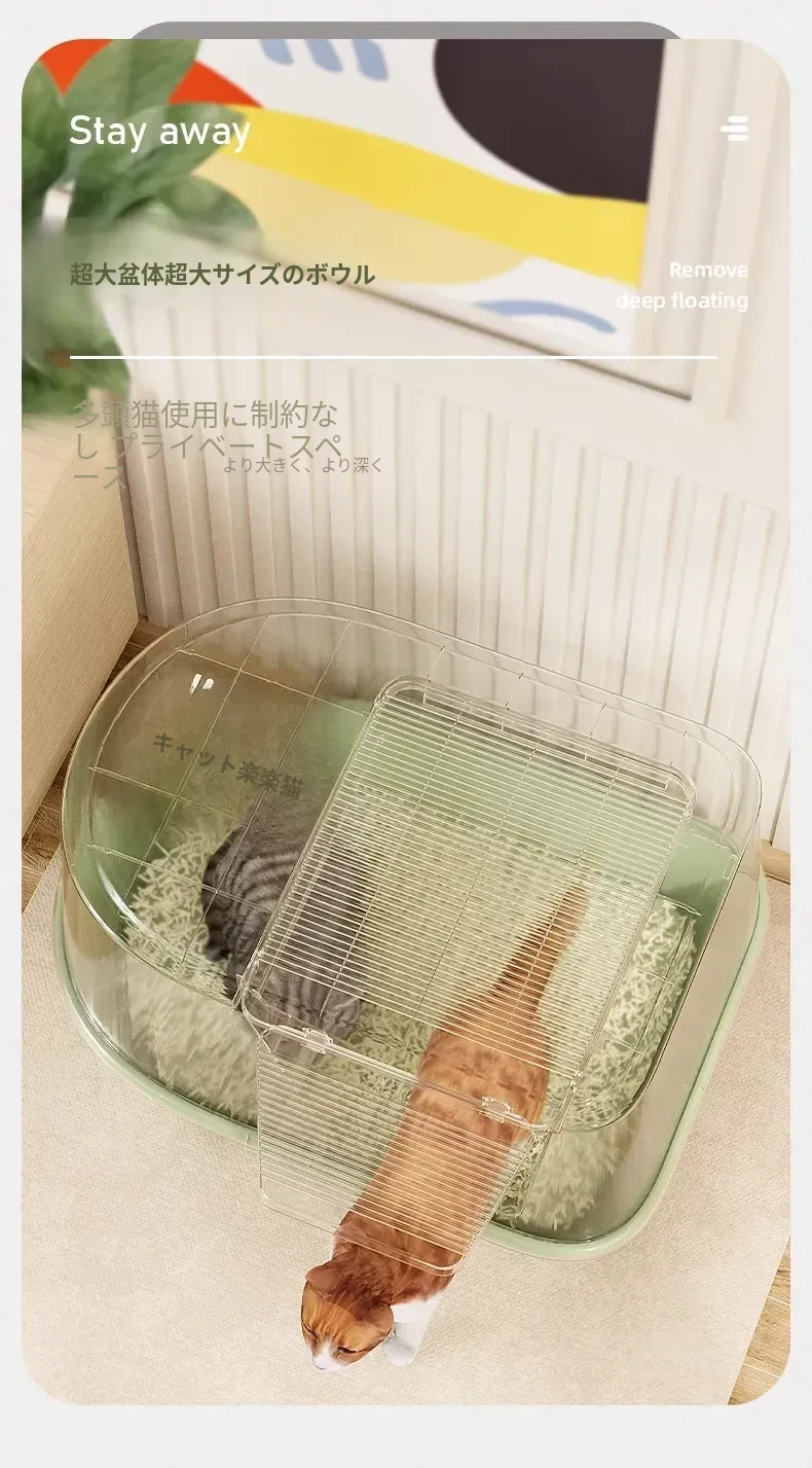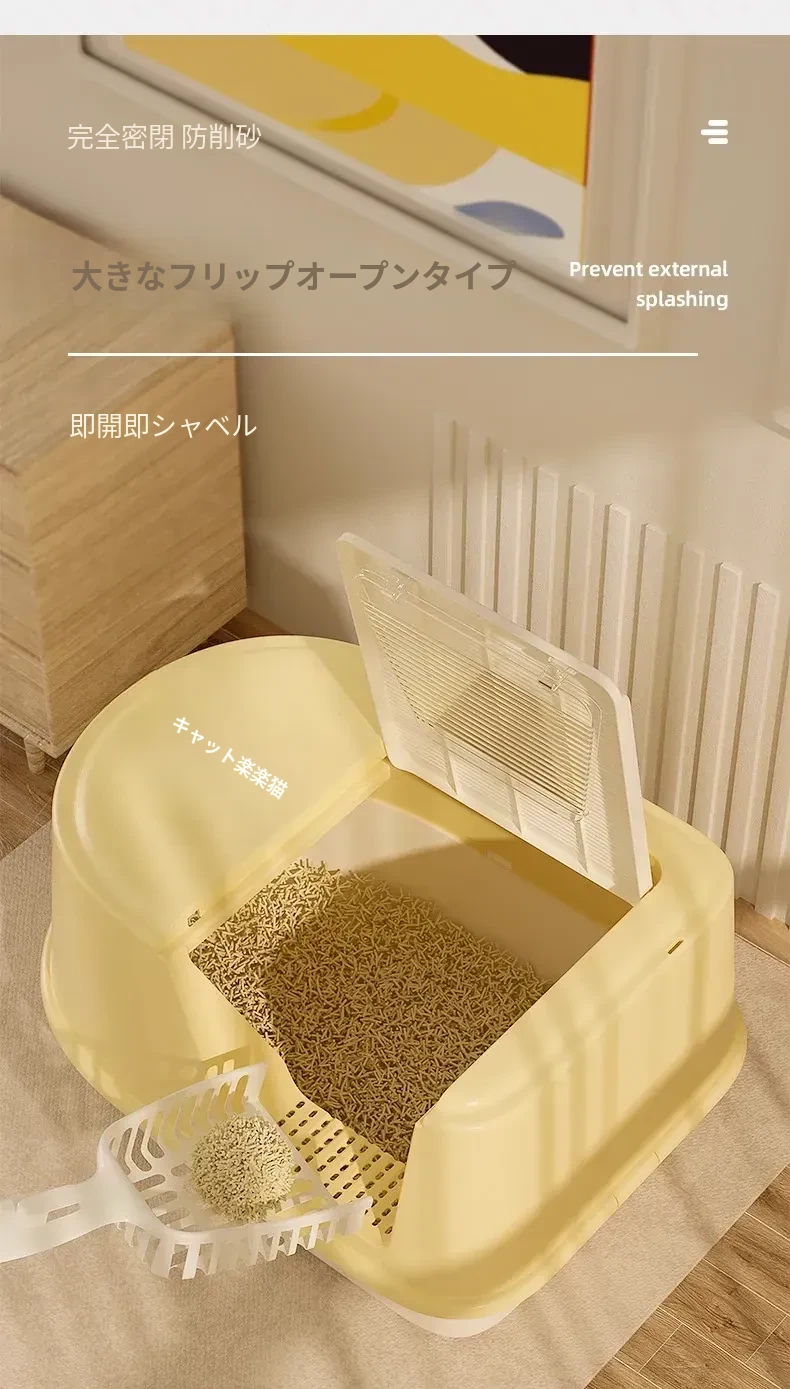 超大型ハーフクローズドキャットトイレ - ラグドール猫にも最適!防水マット付きで飛び散り防止、臭いをシャットアウト!子猫にも安心なトイレ用品。